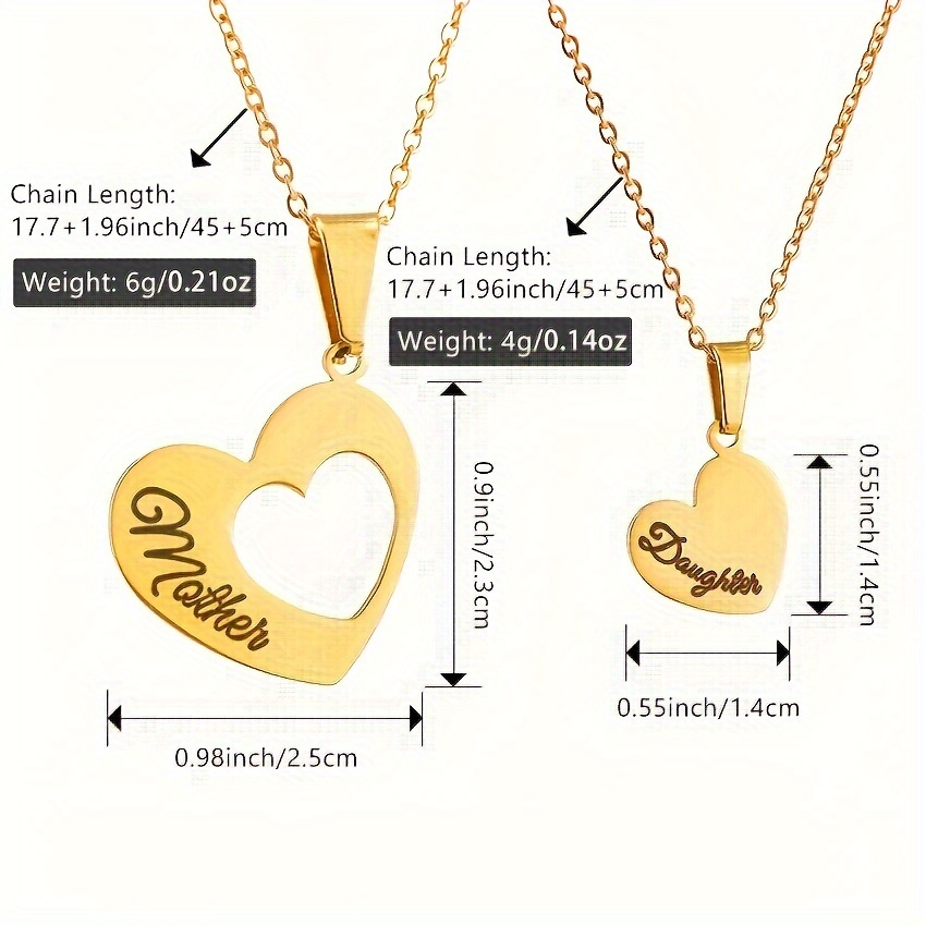 4 avis pour Ensemble de colliers pendentif cœur creux mère-fille, 2 pièces en acier inoxydable – cadeau d’anniversaire et de fête des mères pour maman et fille