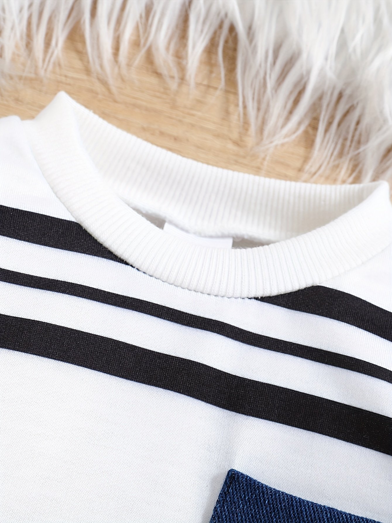 ensemble de pièces pour bébé garçon, haut à manches longues à rayures + pantalon en denim, pour lextérieur Détails du produit 6