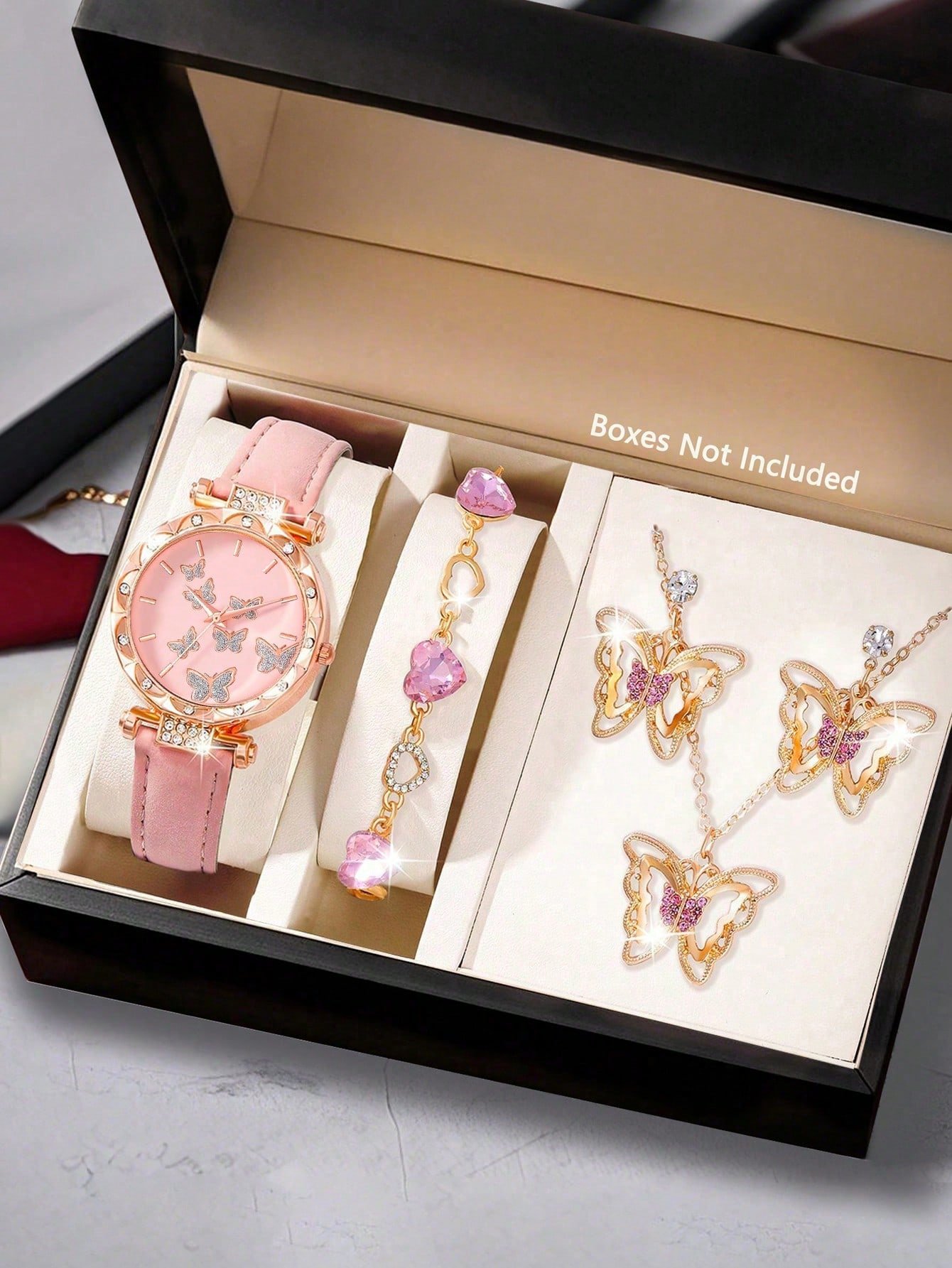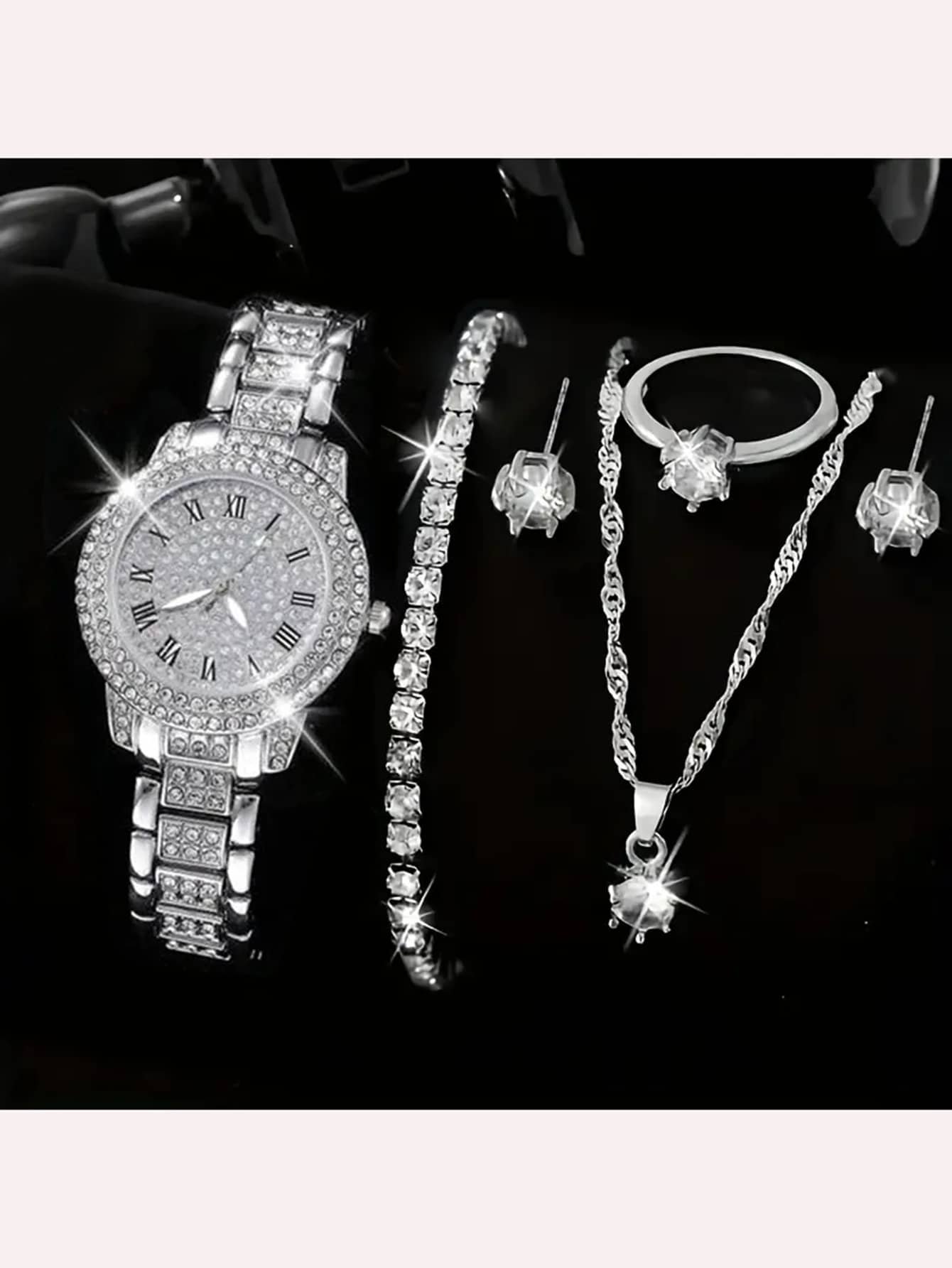 Ensemble de montre pour femme, montre à quartz élégante et ensemble de bijoux, montre à cadran rond , collier, boucles d'oreilles, bague, bracelet, convient pour un port quotidien, cadeau d'anniversaire, fête, rassemblement festif, également un cadeau idé