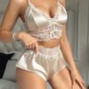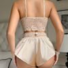 + Livraison de 12 à 17 joursShorts à col en V et soutien-gorge sexy avec bordure en dentelle et détail de nœud, vêtements de nuit légers