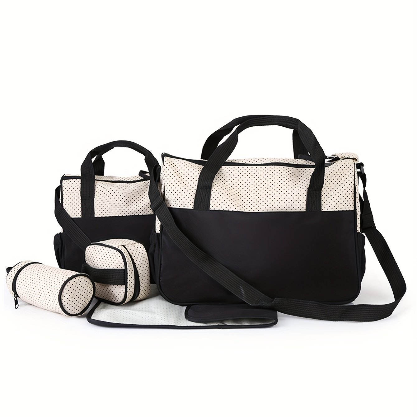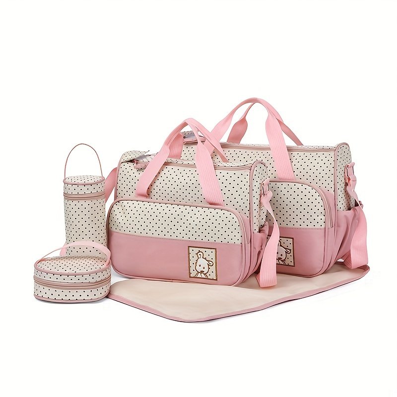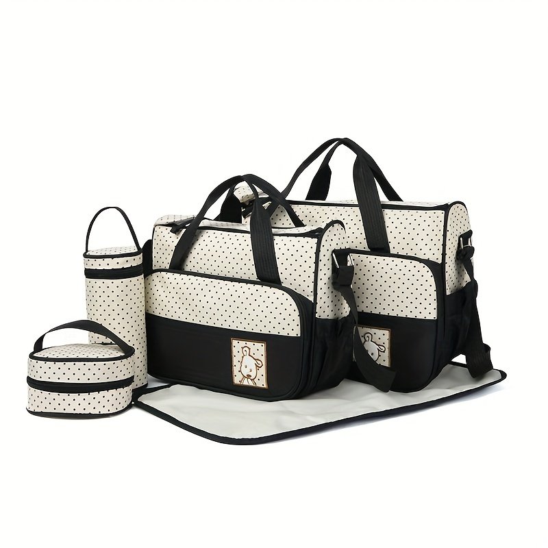 Ensemble de Sac à Parents à la Mode le Plus Vendu – Cinq Pièces ; Sac à Langer Multifonction Grand Format à Bandoulière ; Sac à Épaule pour Voyage en Plein Air avec Pochette à Langes