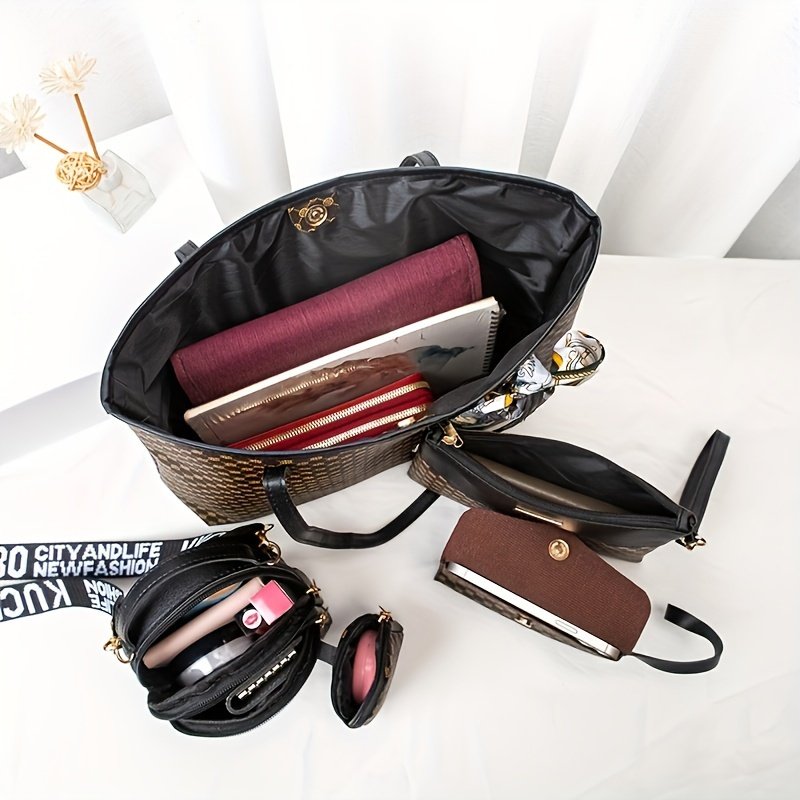 Ensemble de sacs en similicuir à pois pour femmes – Ensemble 5 pièces