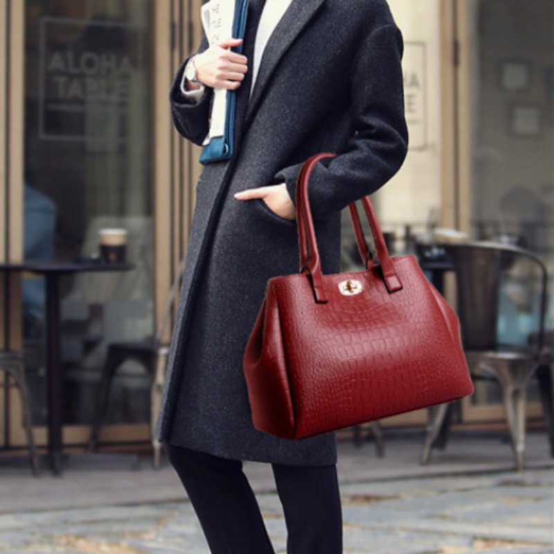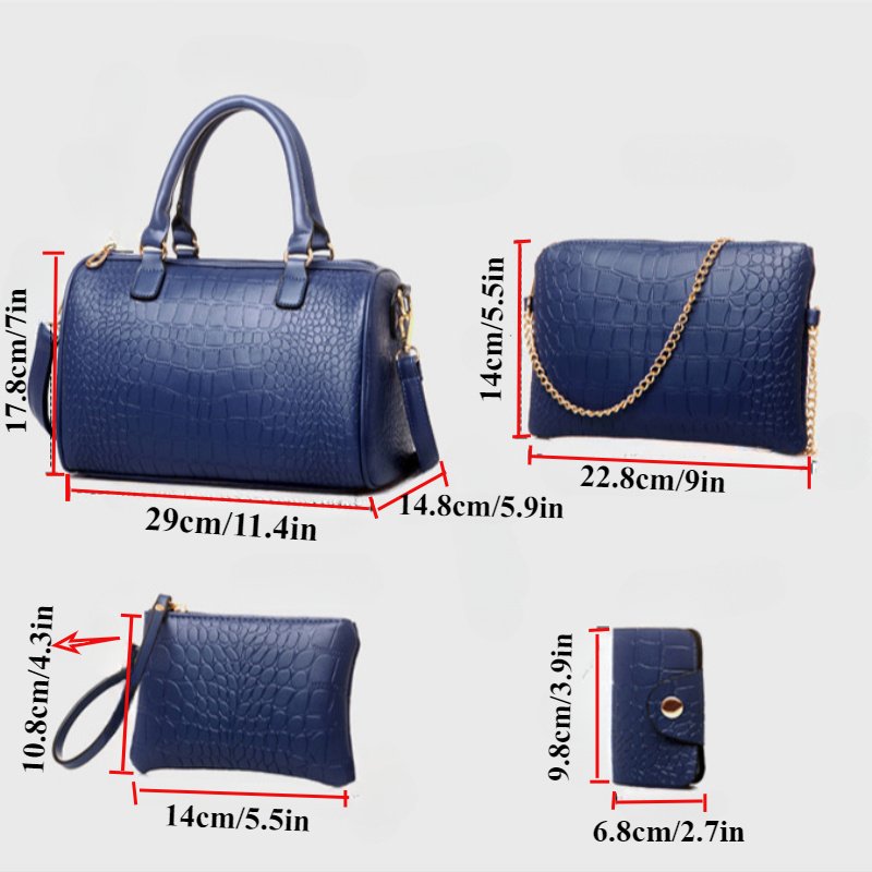 Ensemble de Sacs pour Femmes à Motif Crocodile, Lot de Cinq Pièces : Sac Mère-fille, Sac à Bandoulière, Sac en Bandoulière, Sac à Main, Portefeuille et Porte-cartes, Idéal pour les Déplacements