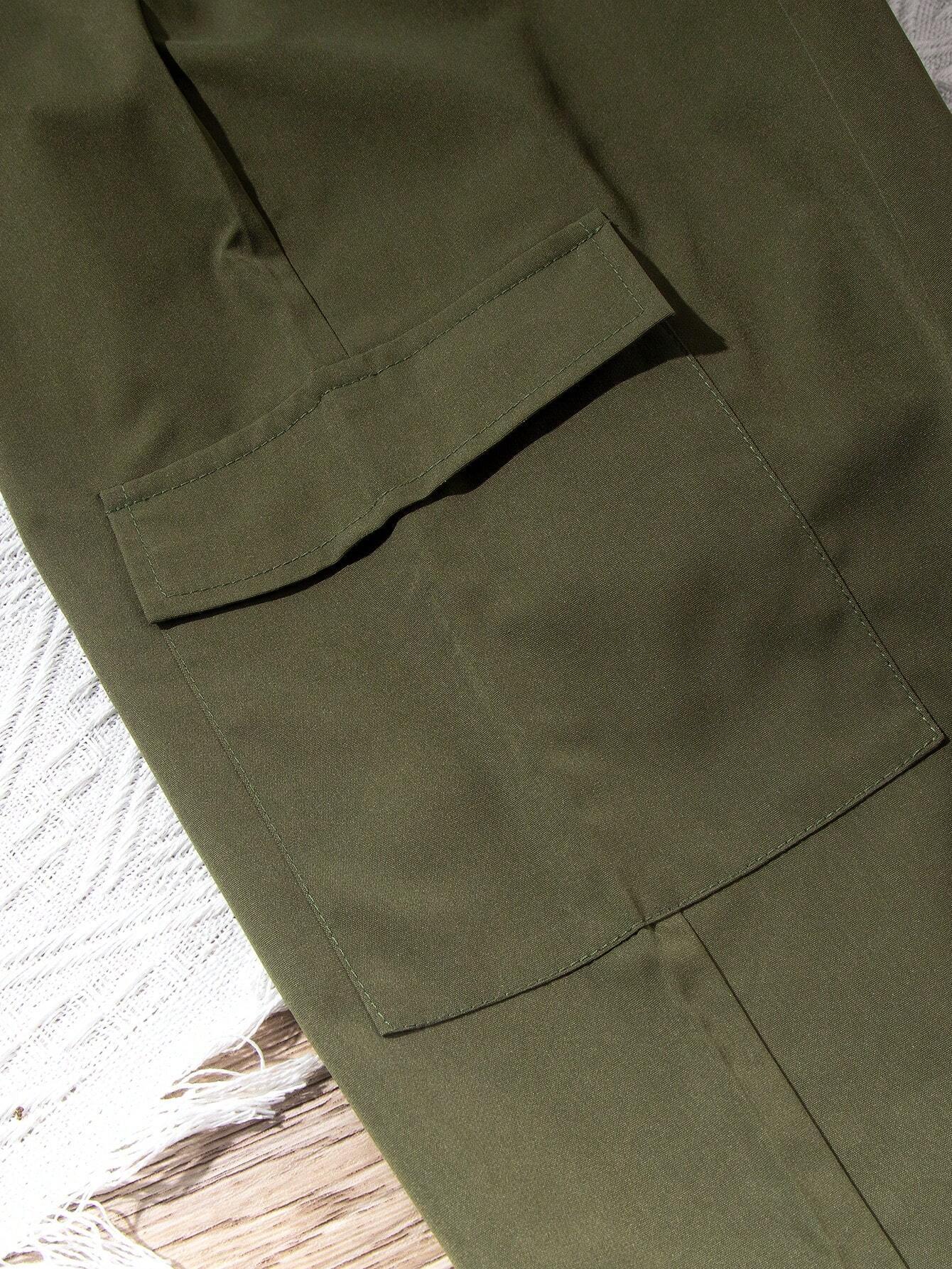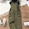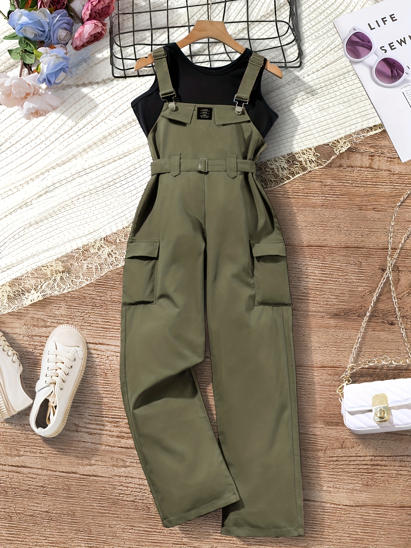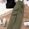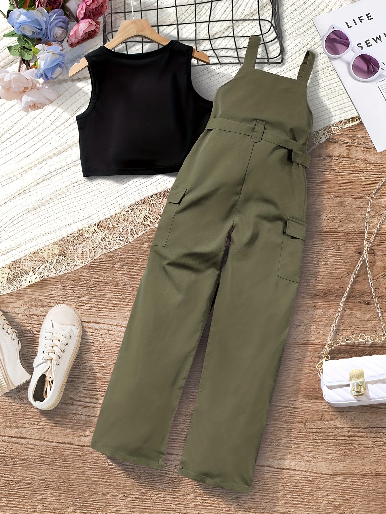 Ensemble de t-shirt sans manches associé à un jumpsuit de couleur vert armée