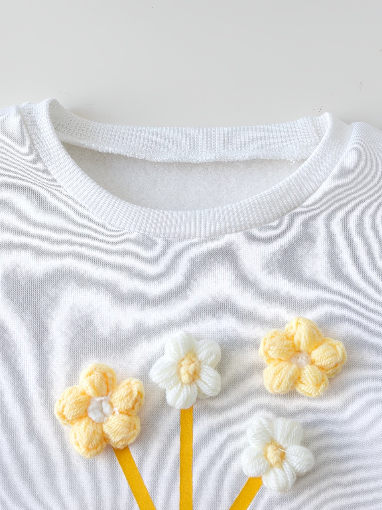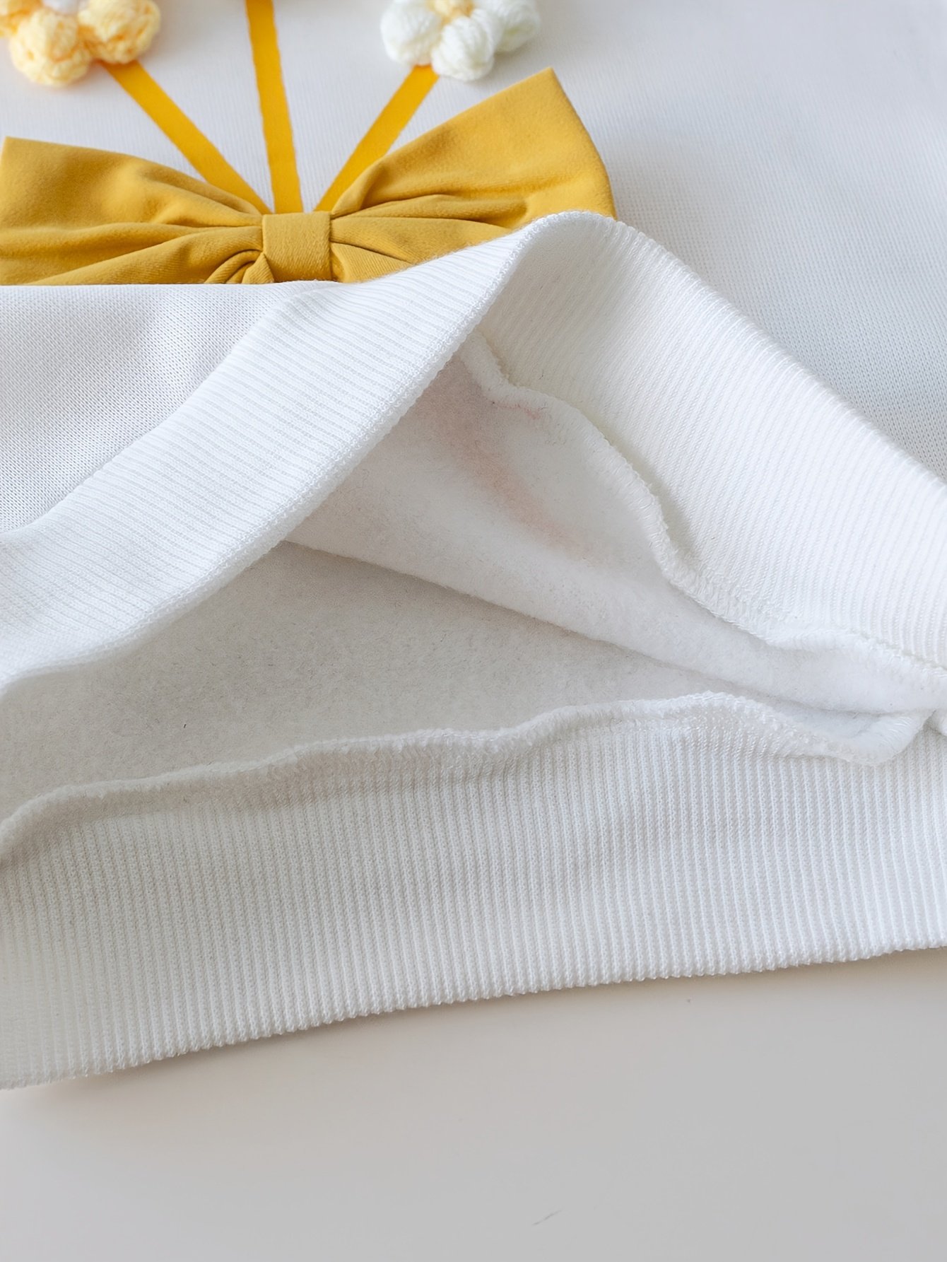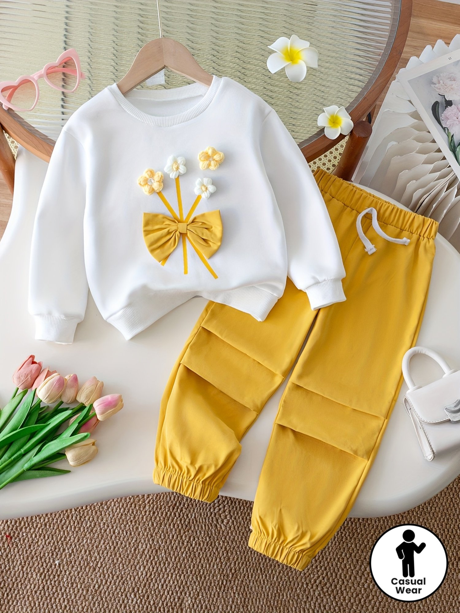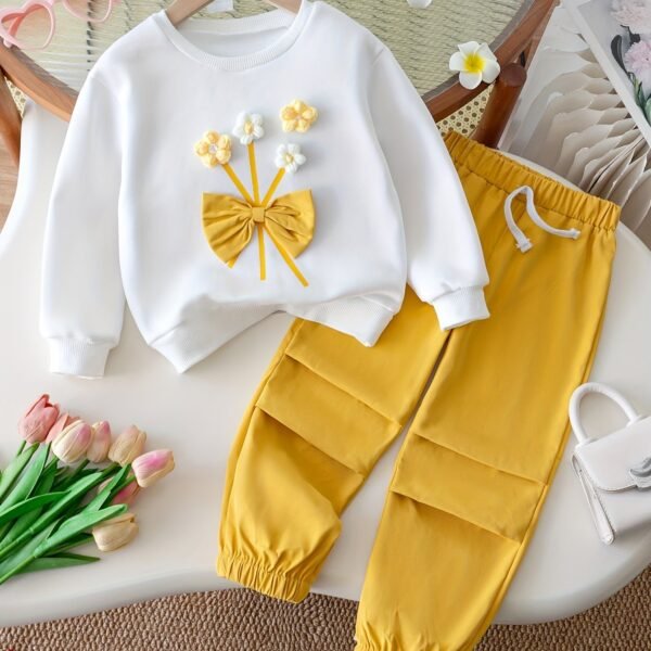 Ensemble de vêtements de sport décontractés automne/hiver pour fille avec sweat-shirt à nœud fleur en 3D + pantalon long, ensemble tendance 2 pièces, recommandé comme cadeau d'anniversaire/de fêtes, décoration à nœud, tenue d'automne pour toute-petite fil