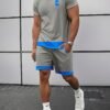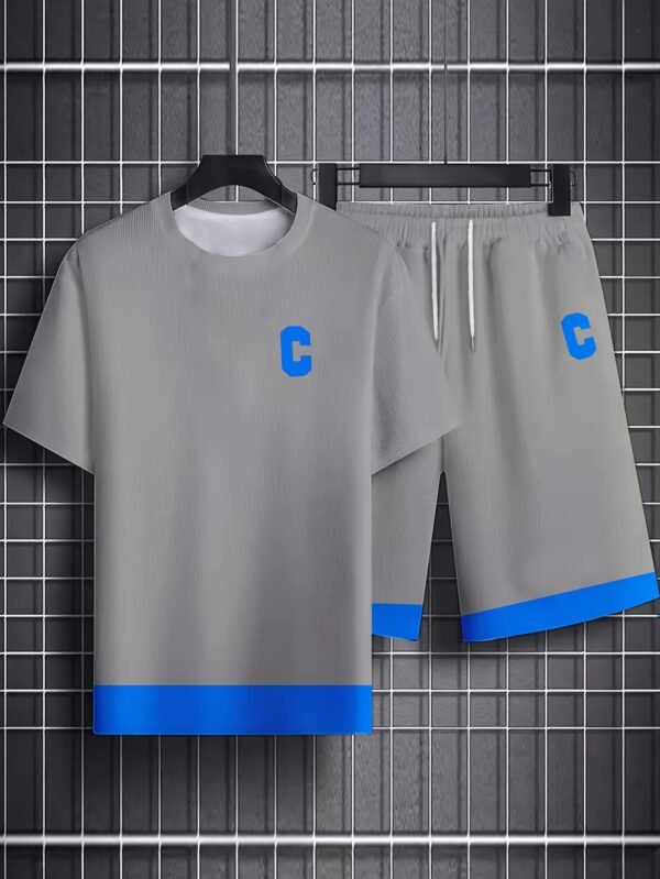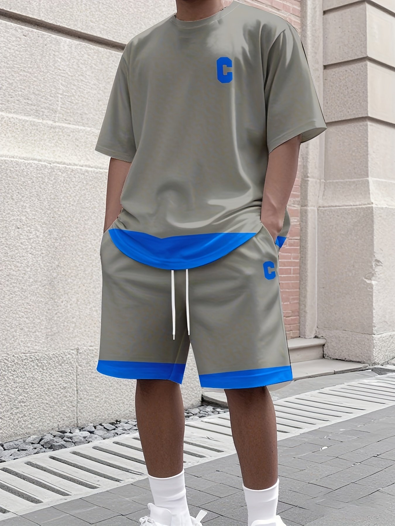 Ensemble décontracté pour homme 2 pièces avec T-shirt imprimé 3D et short à cordon de serrage – Polyester respirant, Vêtement d’été d’extérieur, Coupe régulière, Col rond, Manches courtes, Couleur unie