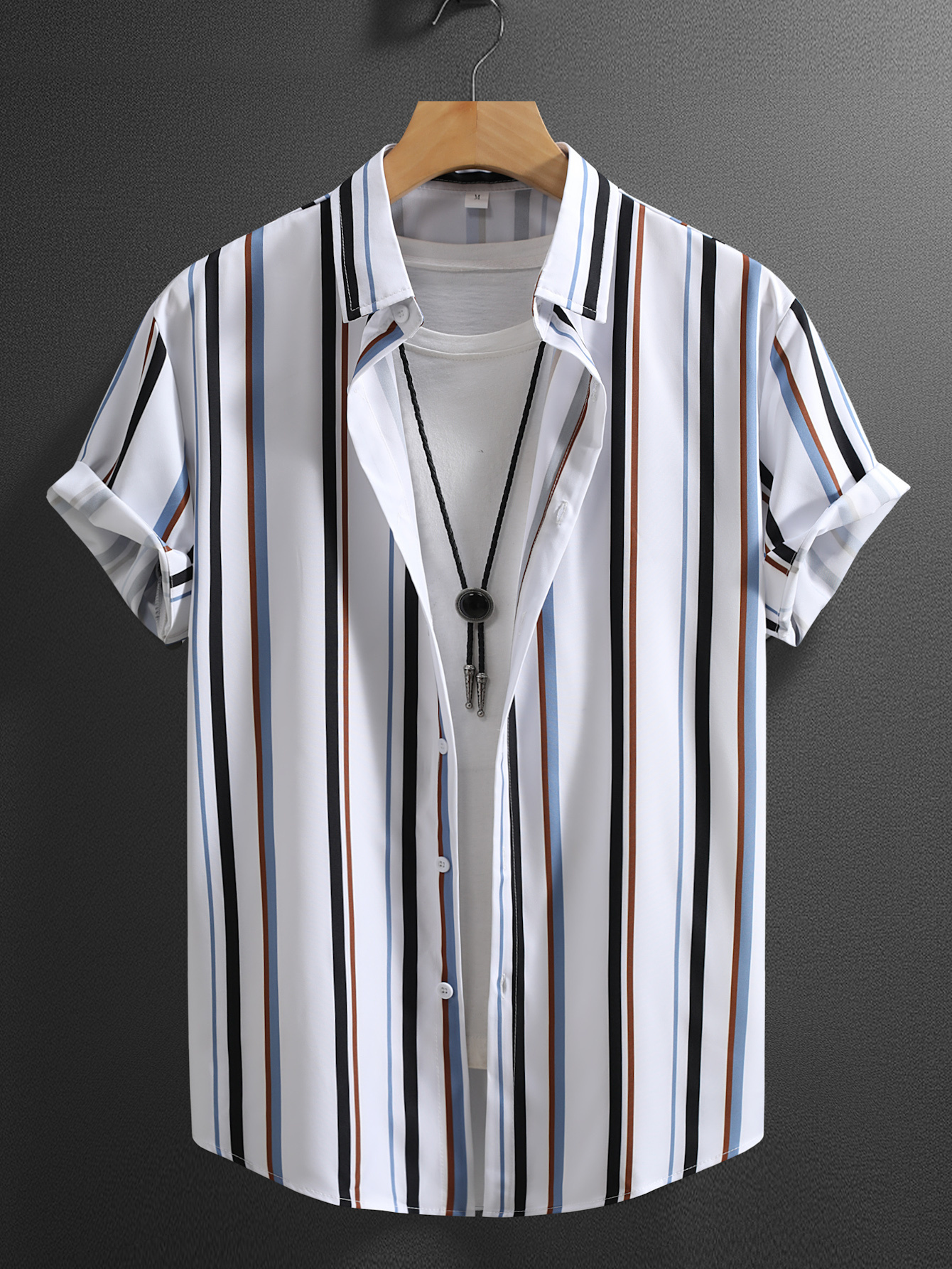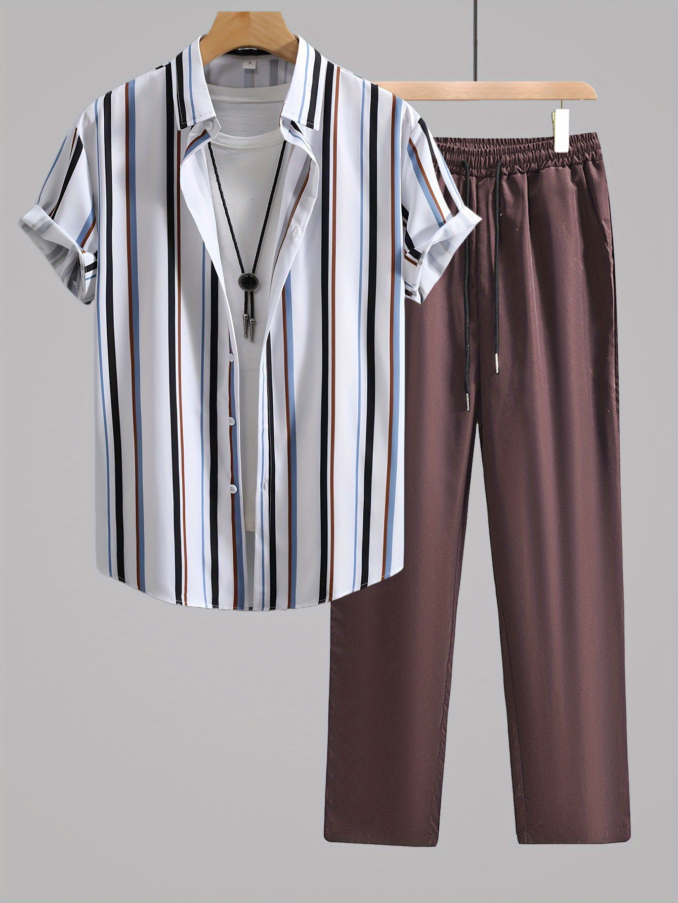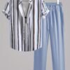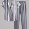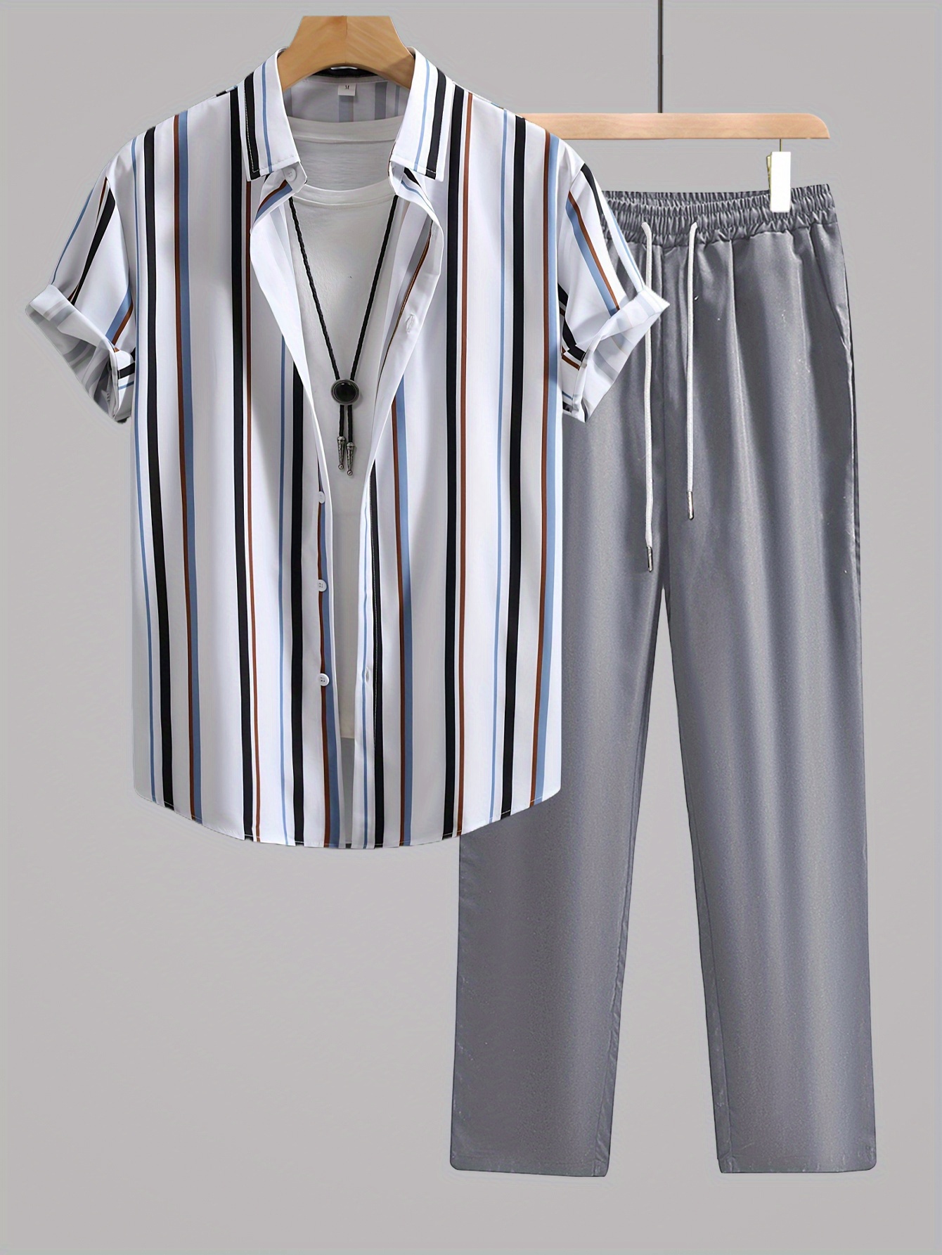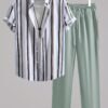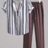 Ensemble Décontracté pour Homme – Chemise à Manches Courtes Rayée