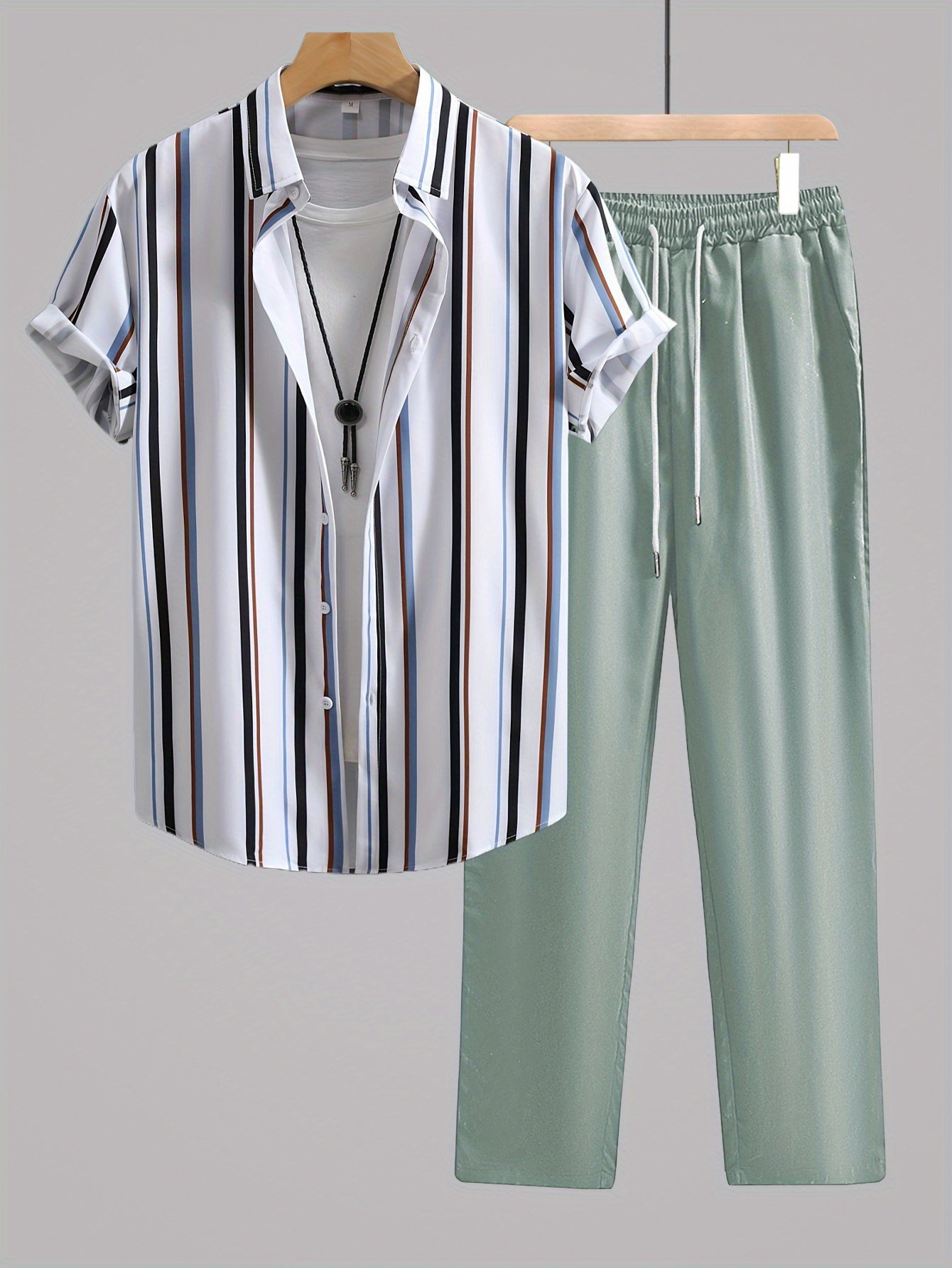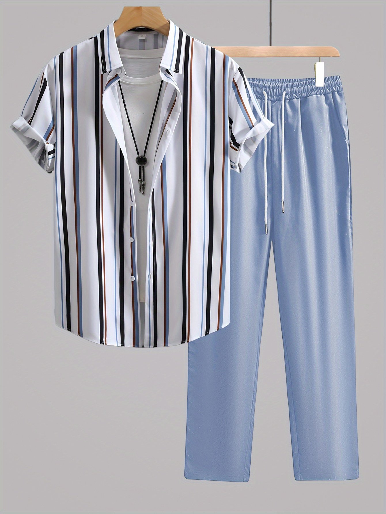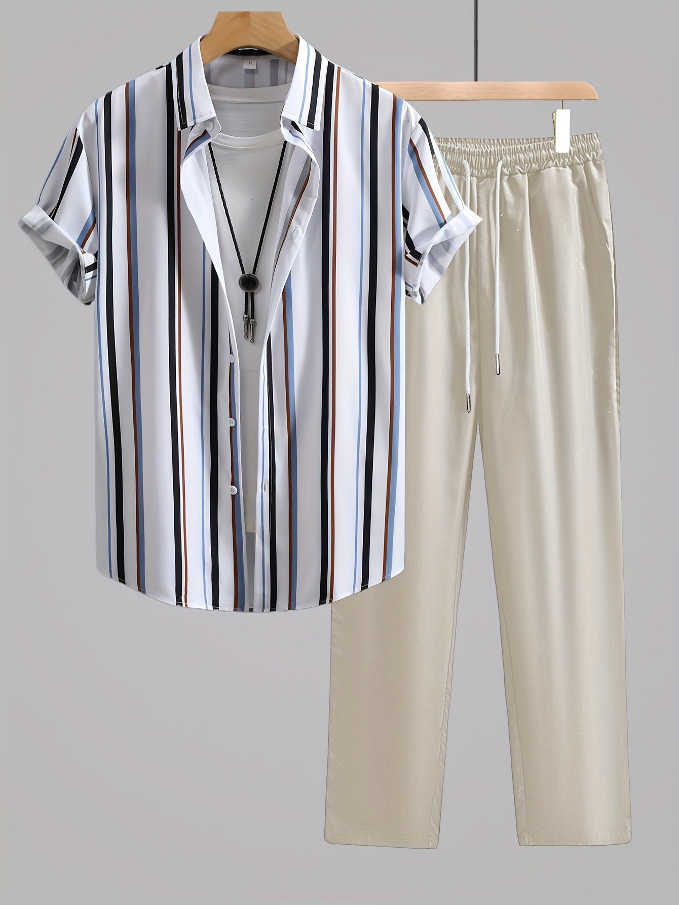 Ensemble Décontracté pour Homme – Chemise à Manches Courtes Rayée