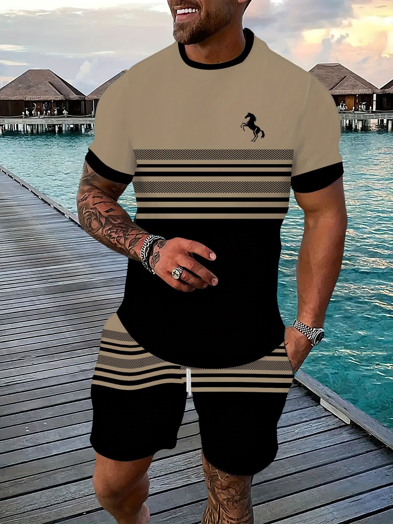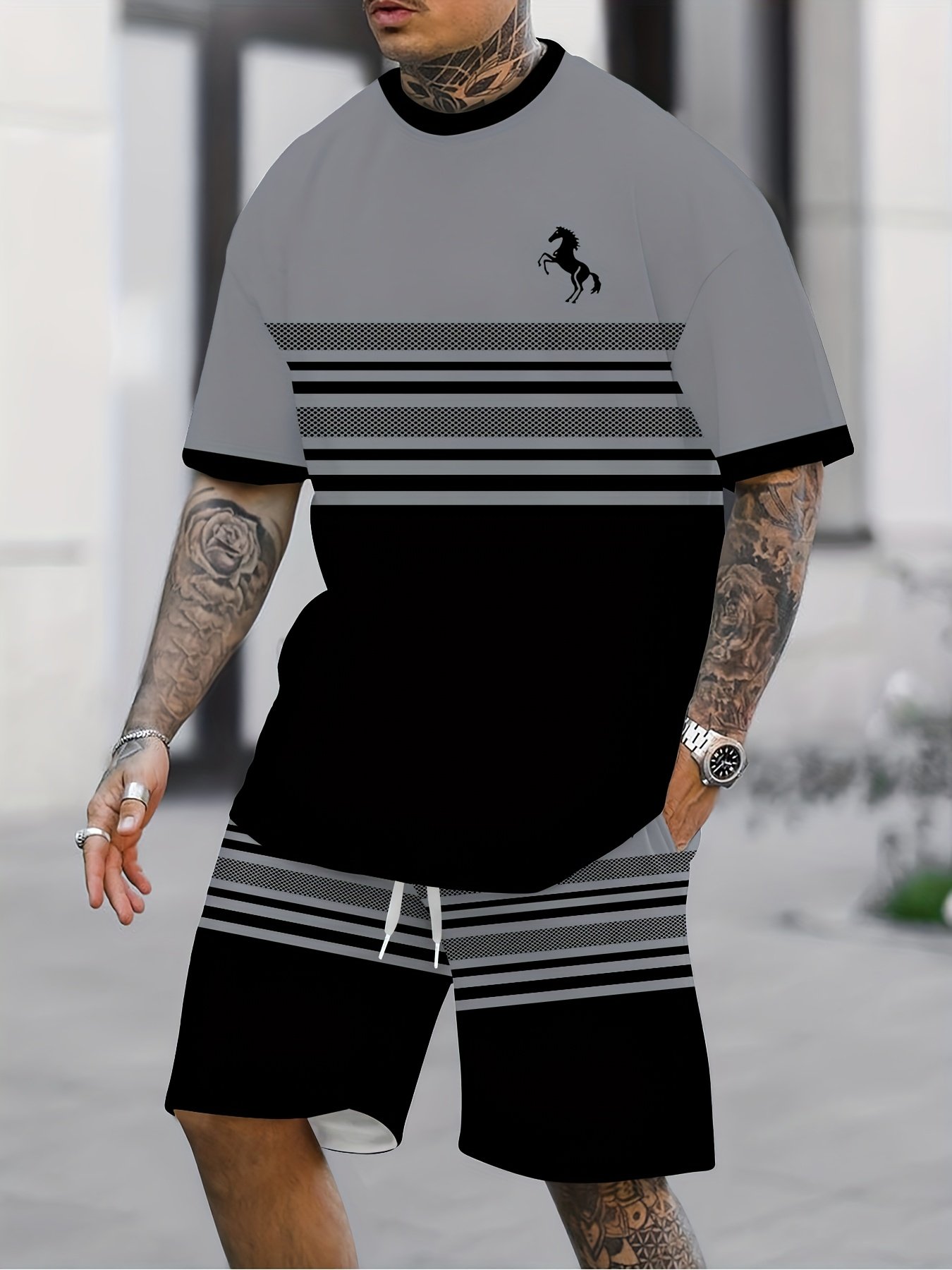 Ensemble décontracté pour hommes à rayures imprimées numériques d’été