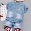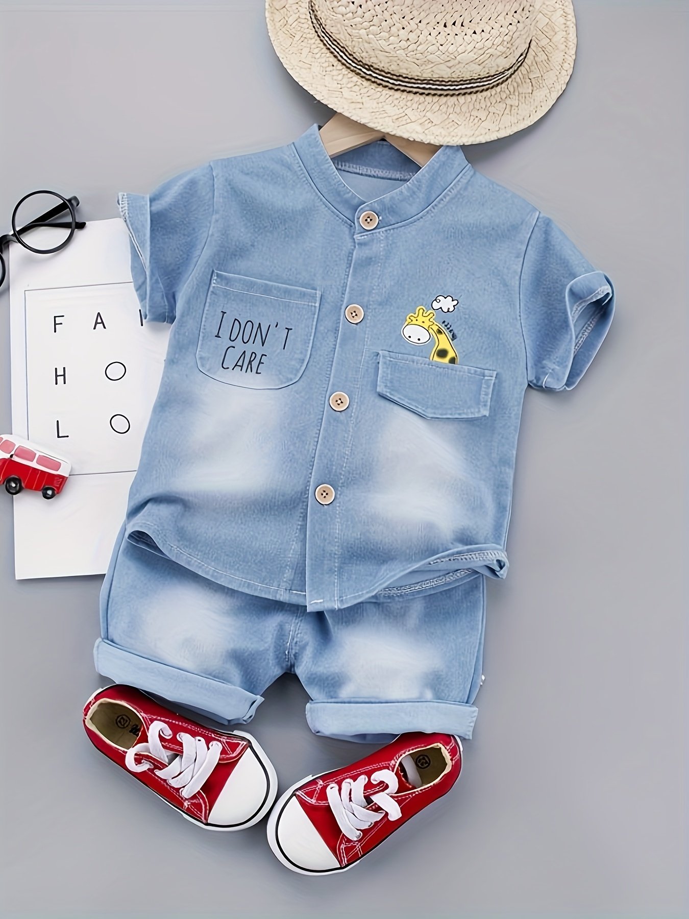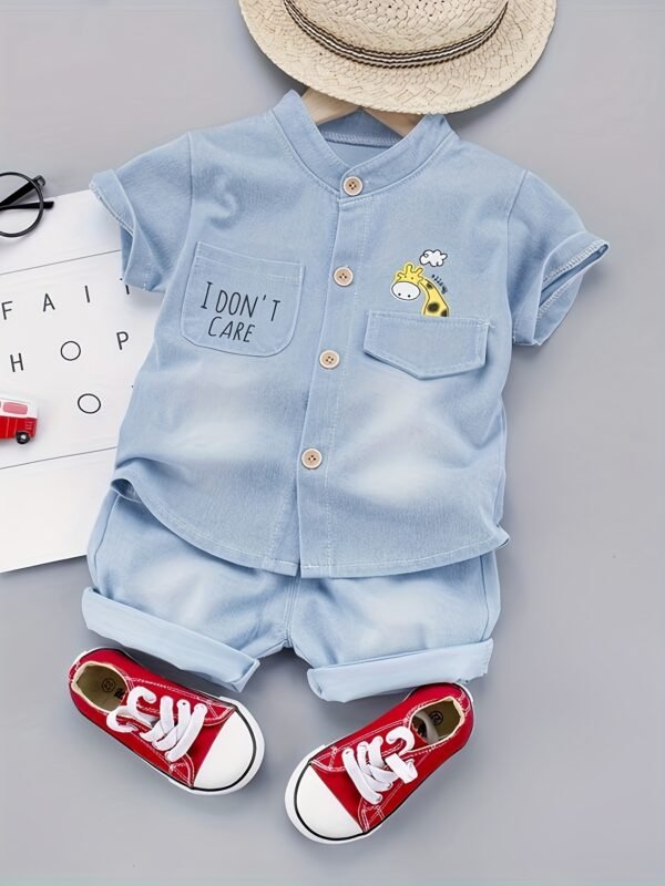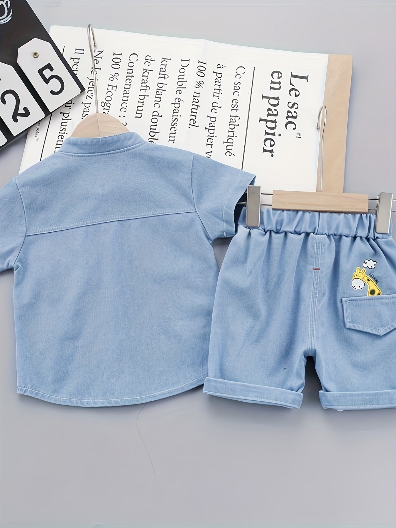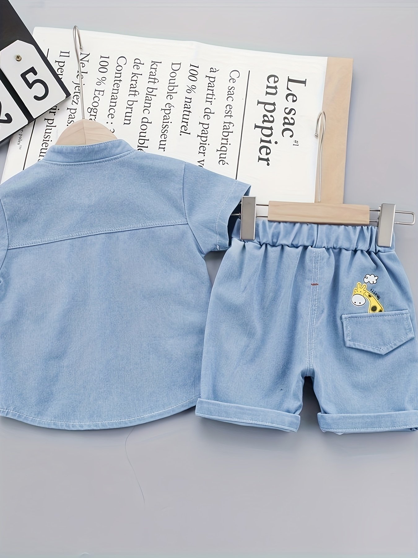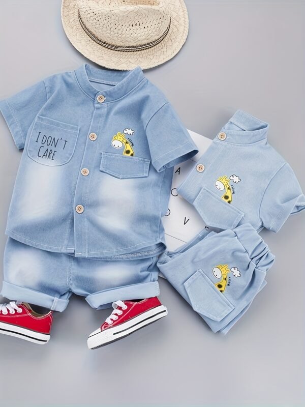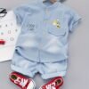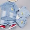 Ensemble d’été pour garçon en jean à manches courtes – Imprimé faon cartoon