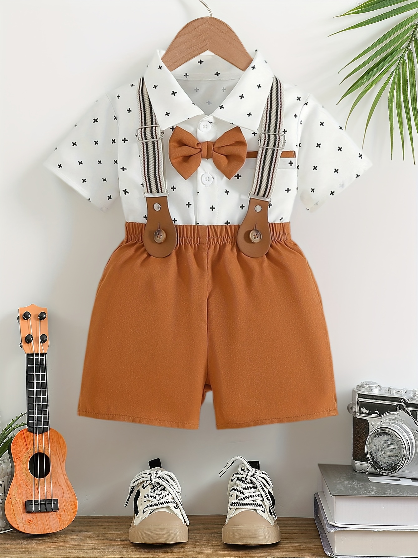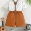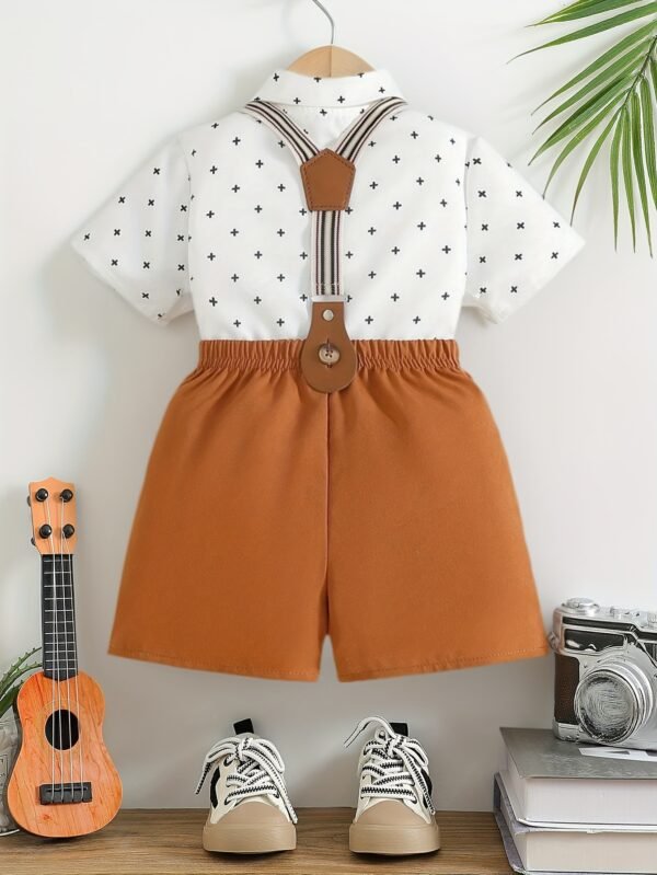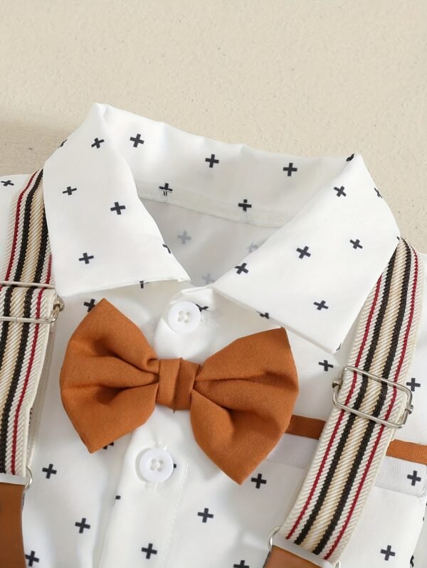 Ensemble d’été pour garçons : chemise à pois et salopette avec nœud papillon