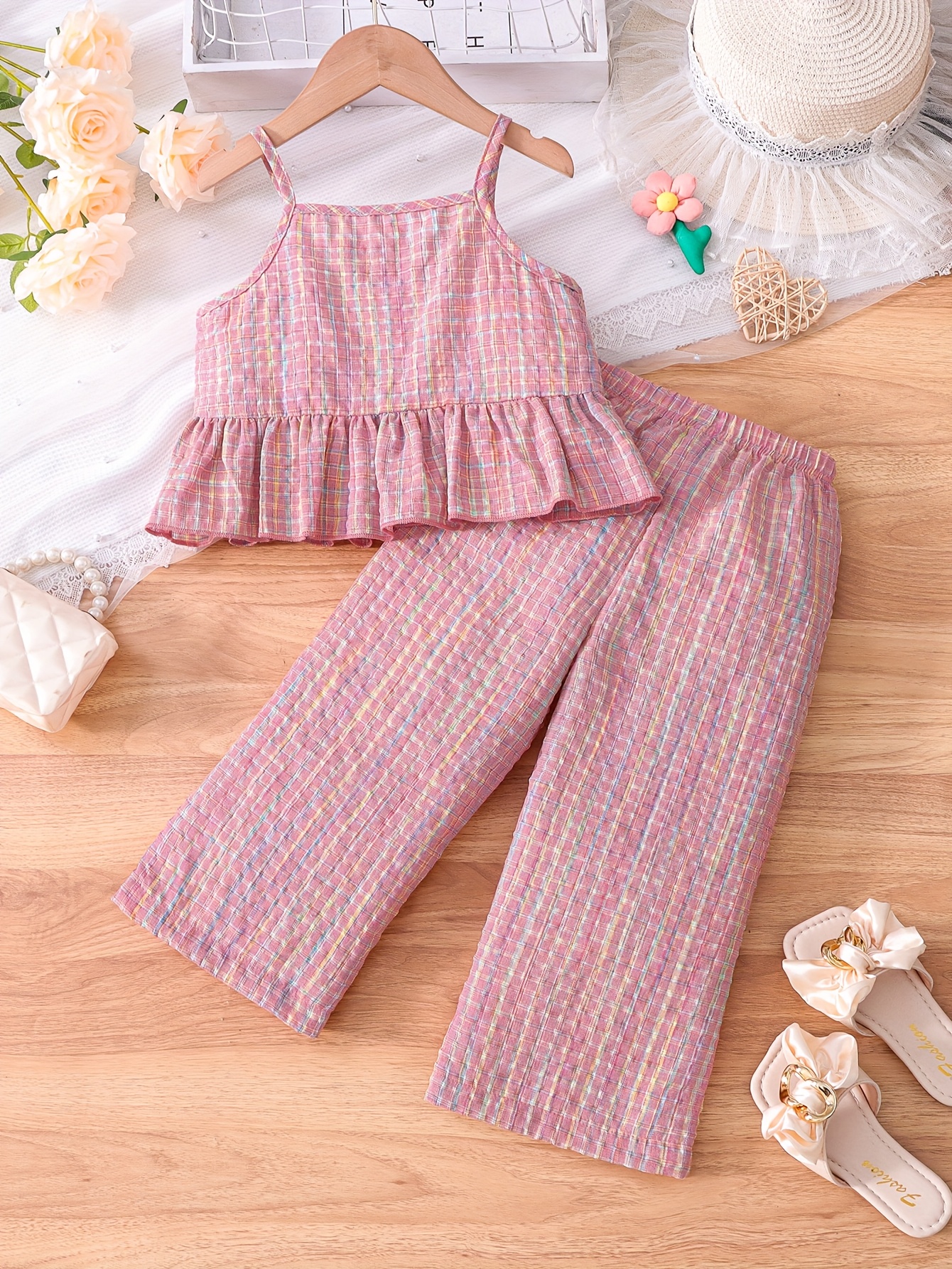 Ensemble tendance pour filles : 2 pièces comprenant un débardeur à ourlet volanté
