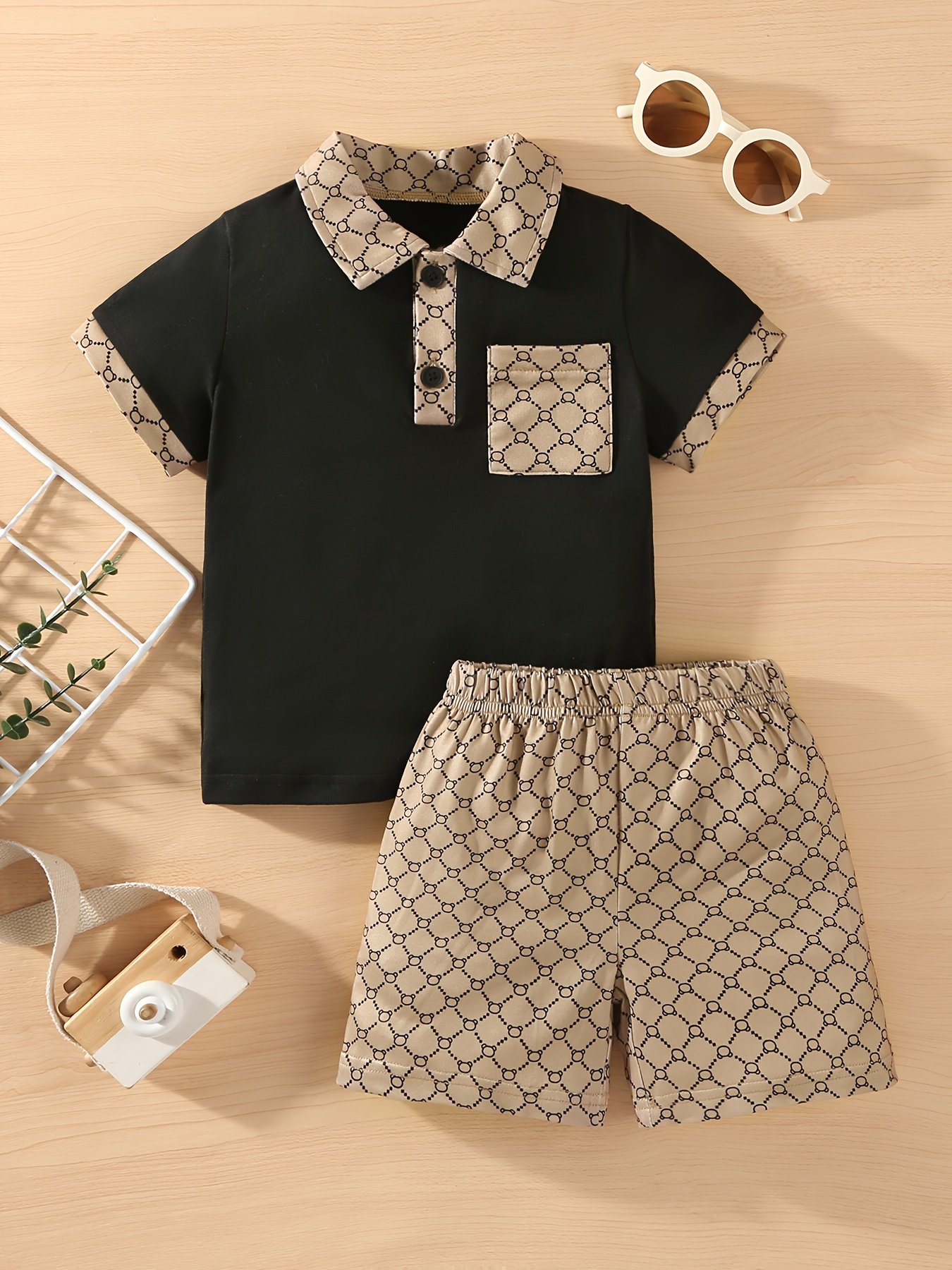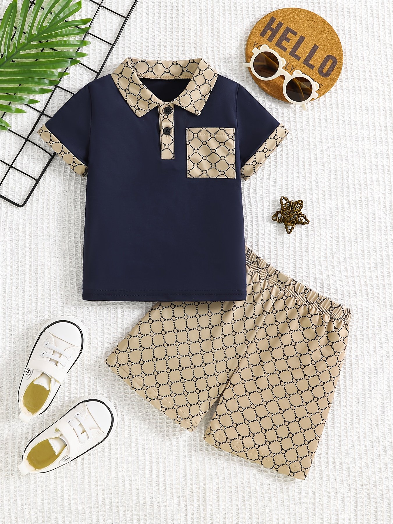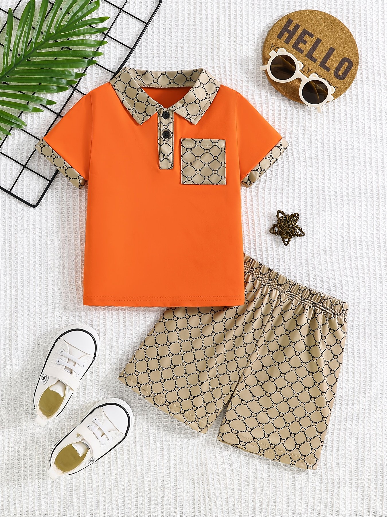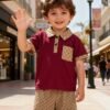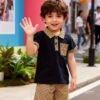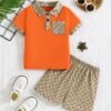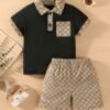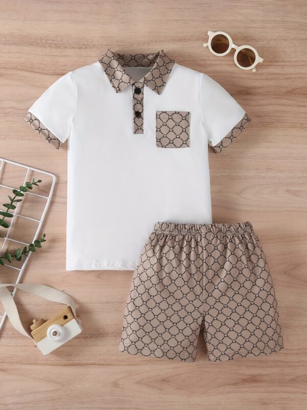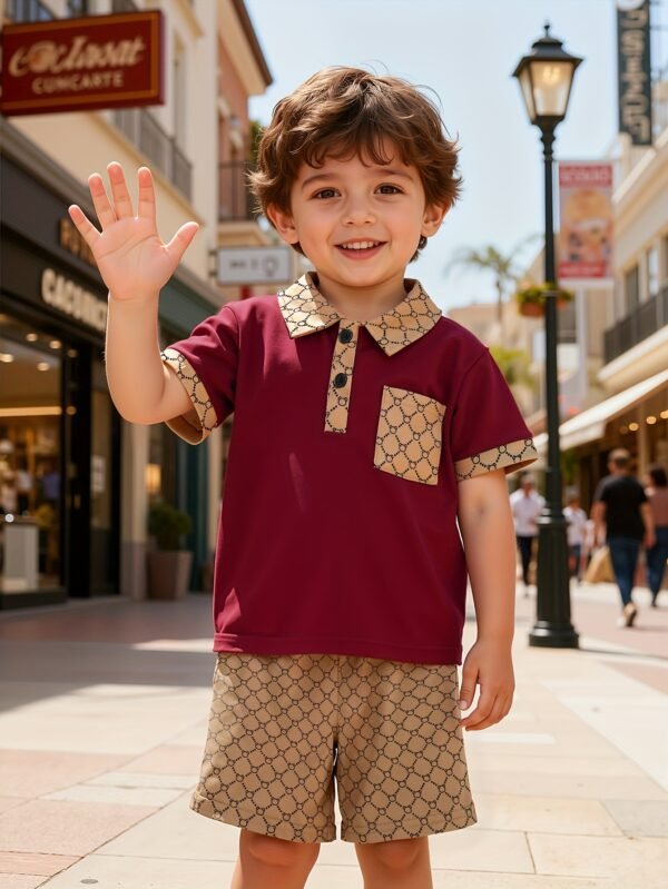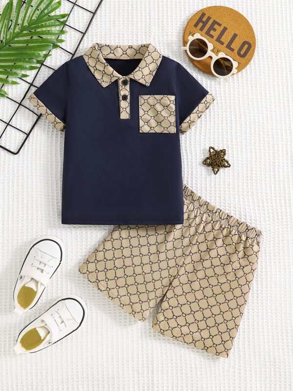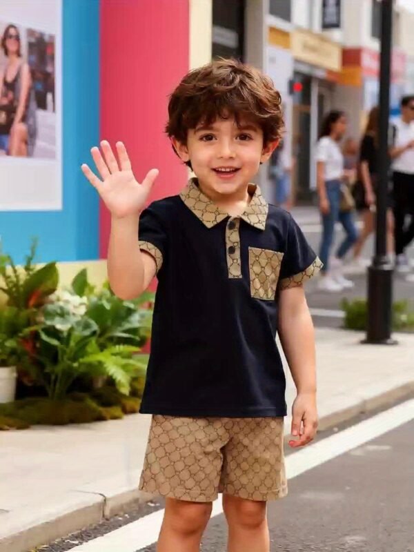 Ensemble deux pièces d’été tendance pour garçons, comprenant un polo et un short, parfait pour les fêtes en plein air