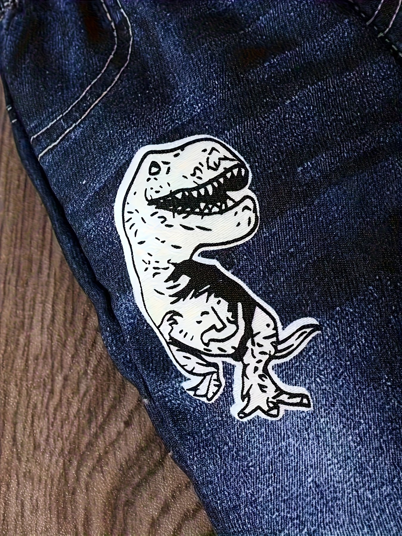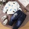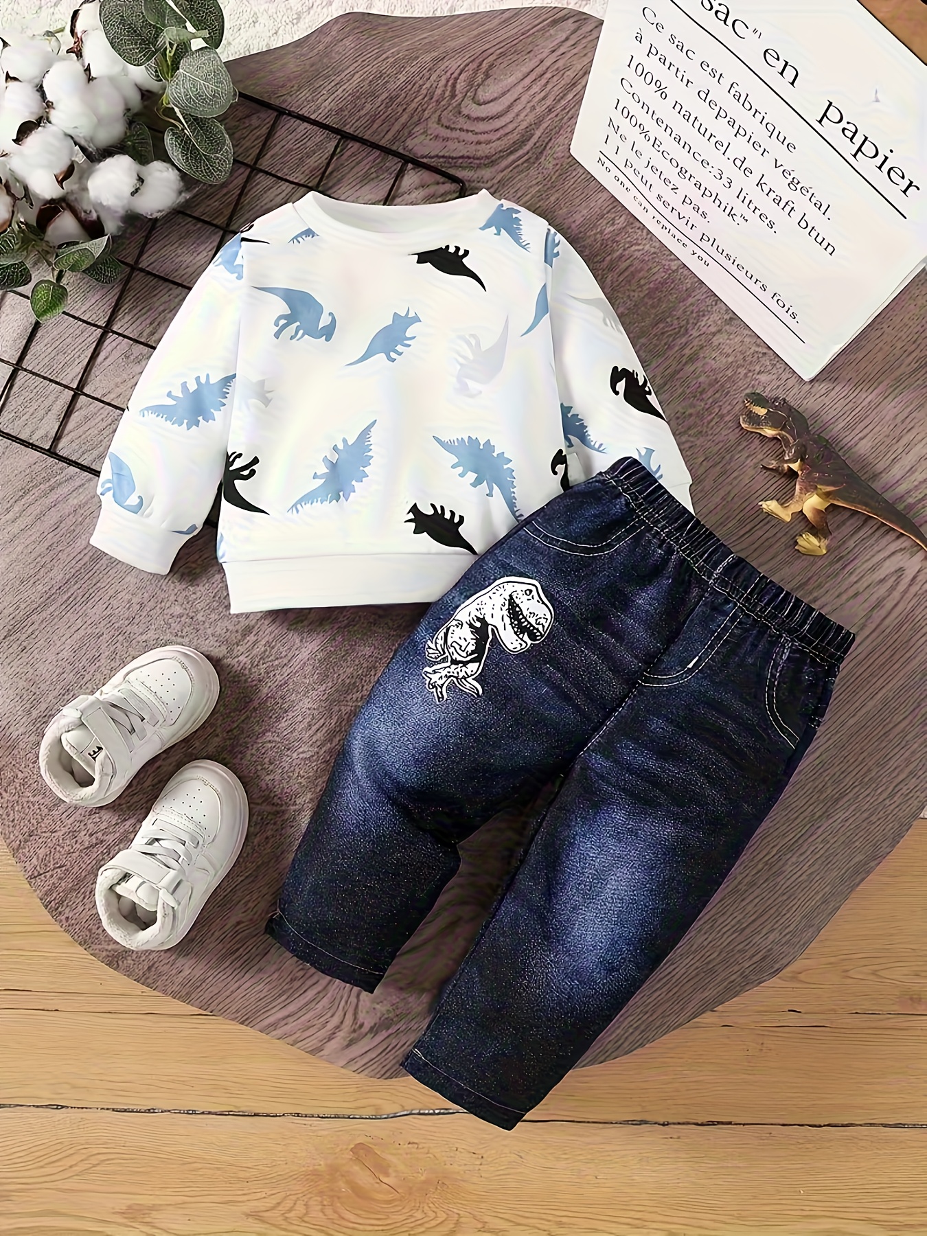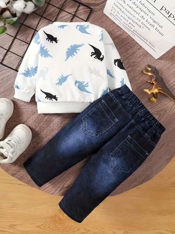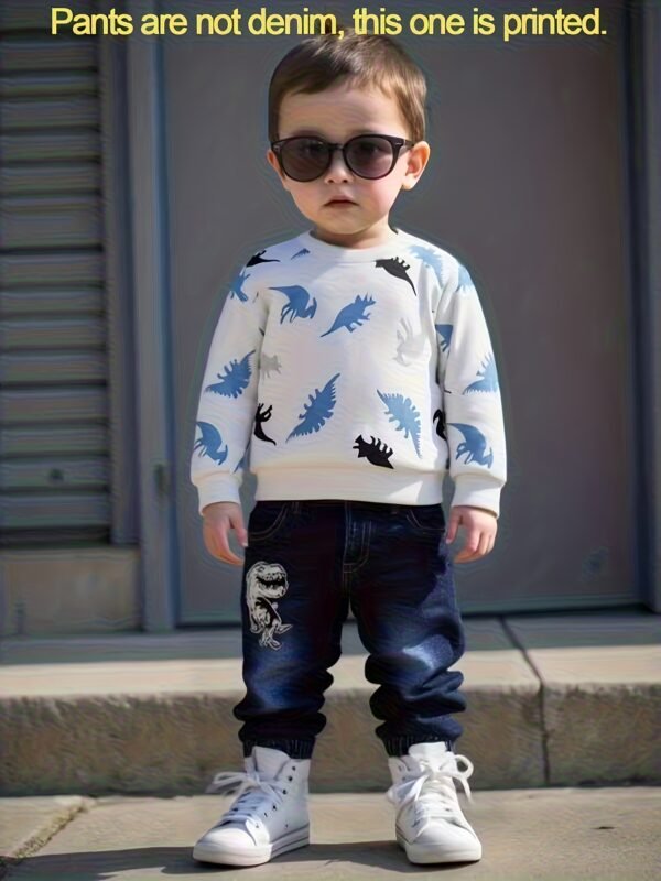 Ensemble Deux Pièces Sweat-shirt Fin à Imprimé Dinosaure, pantalon faux jean