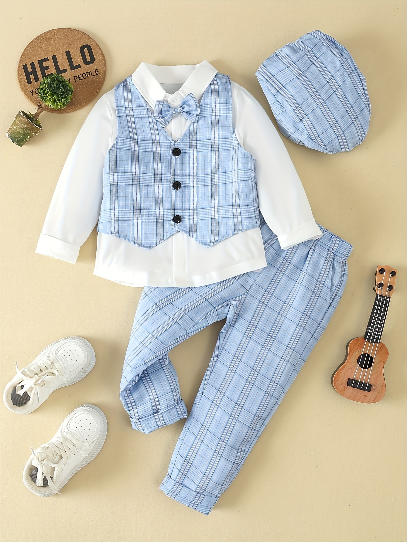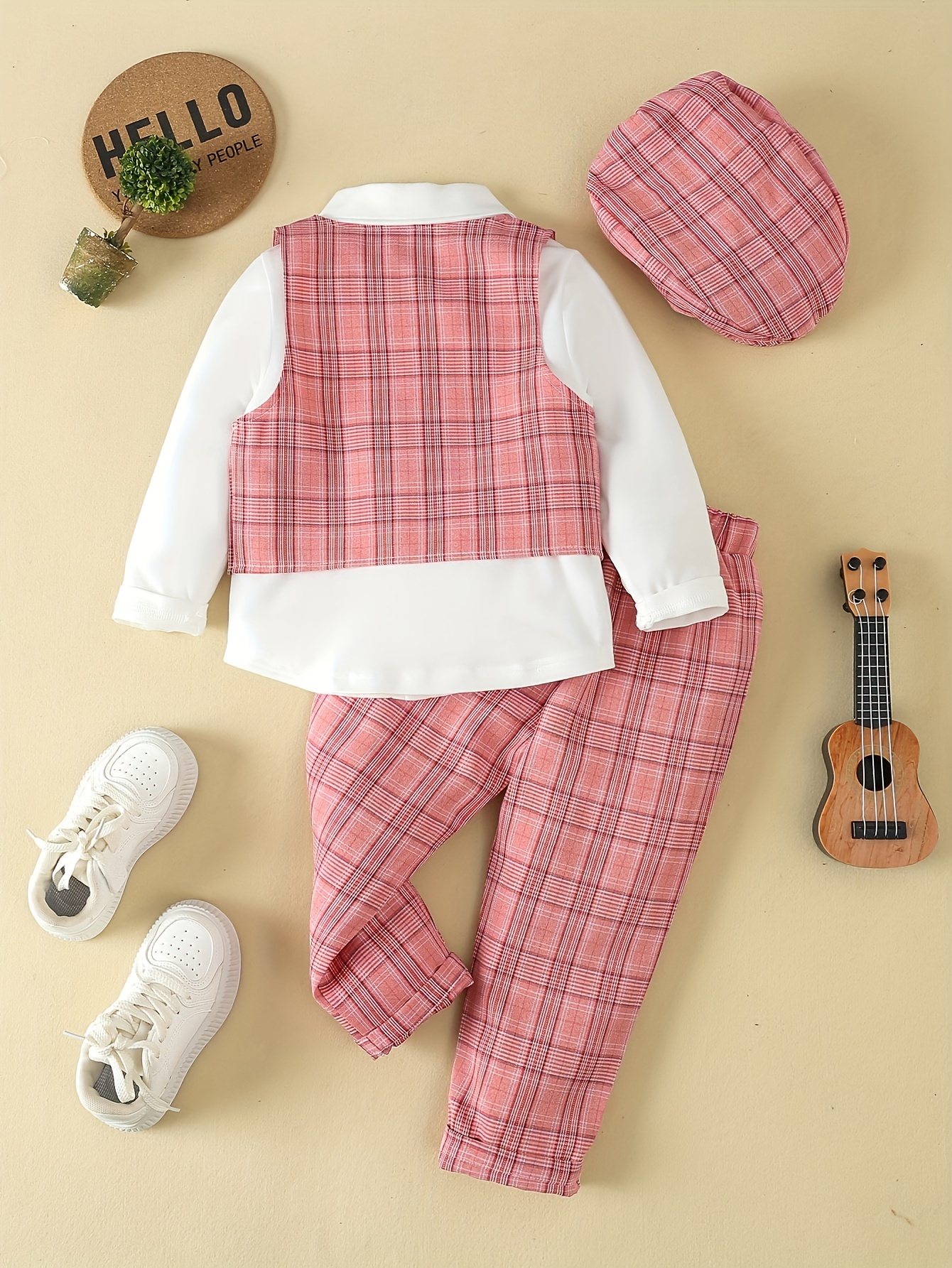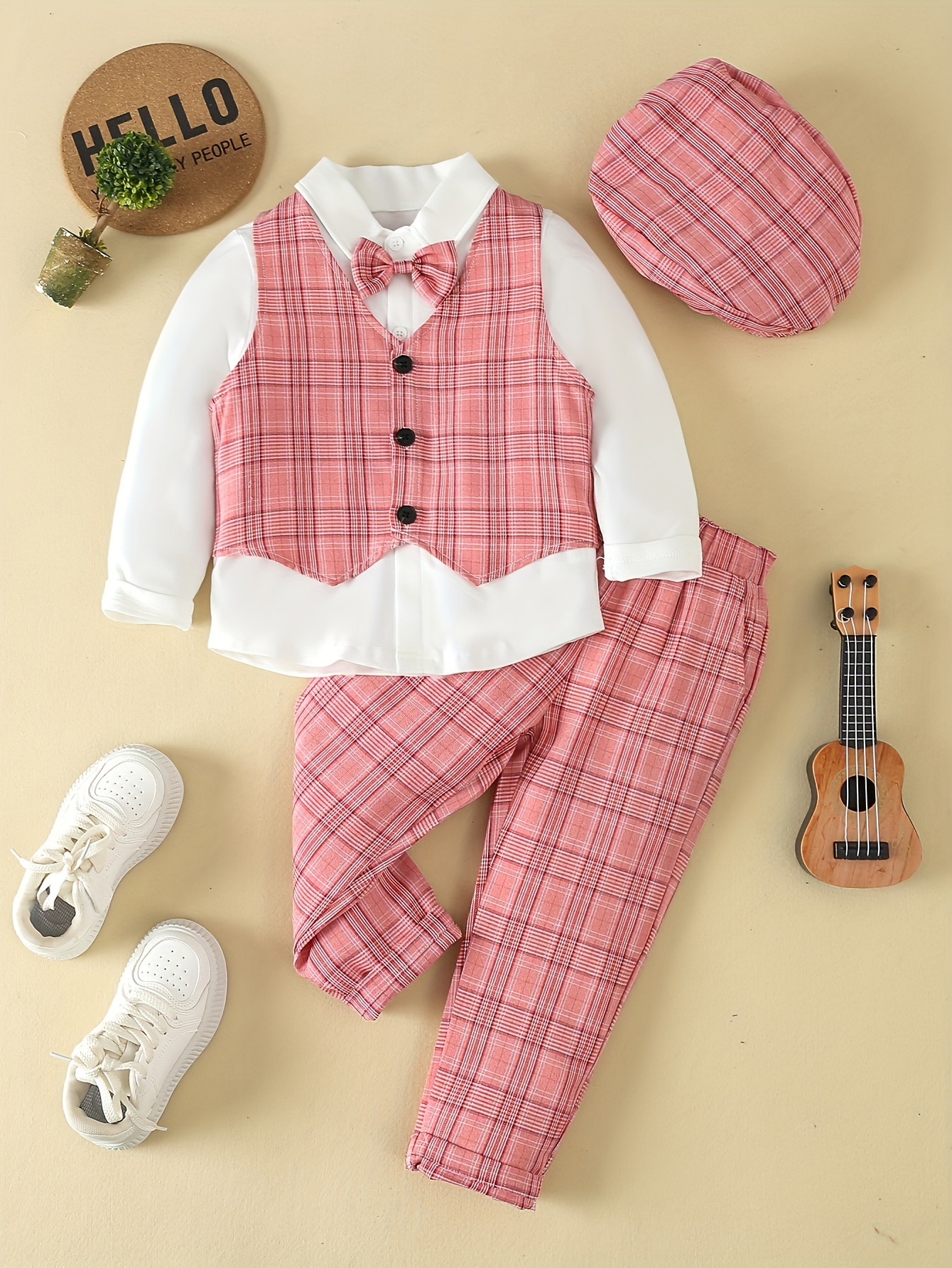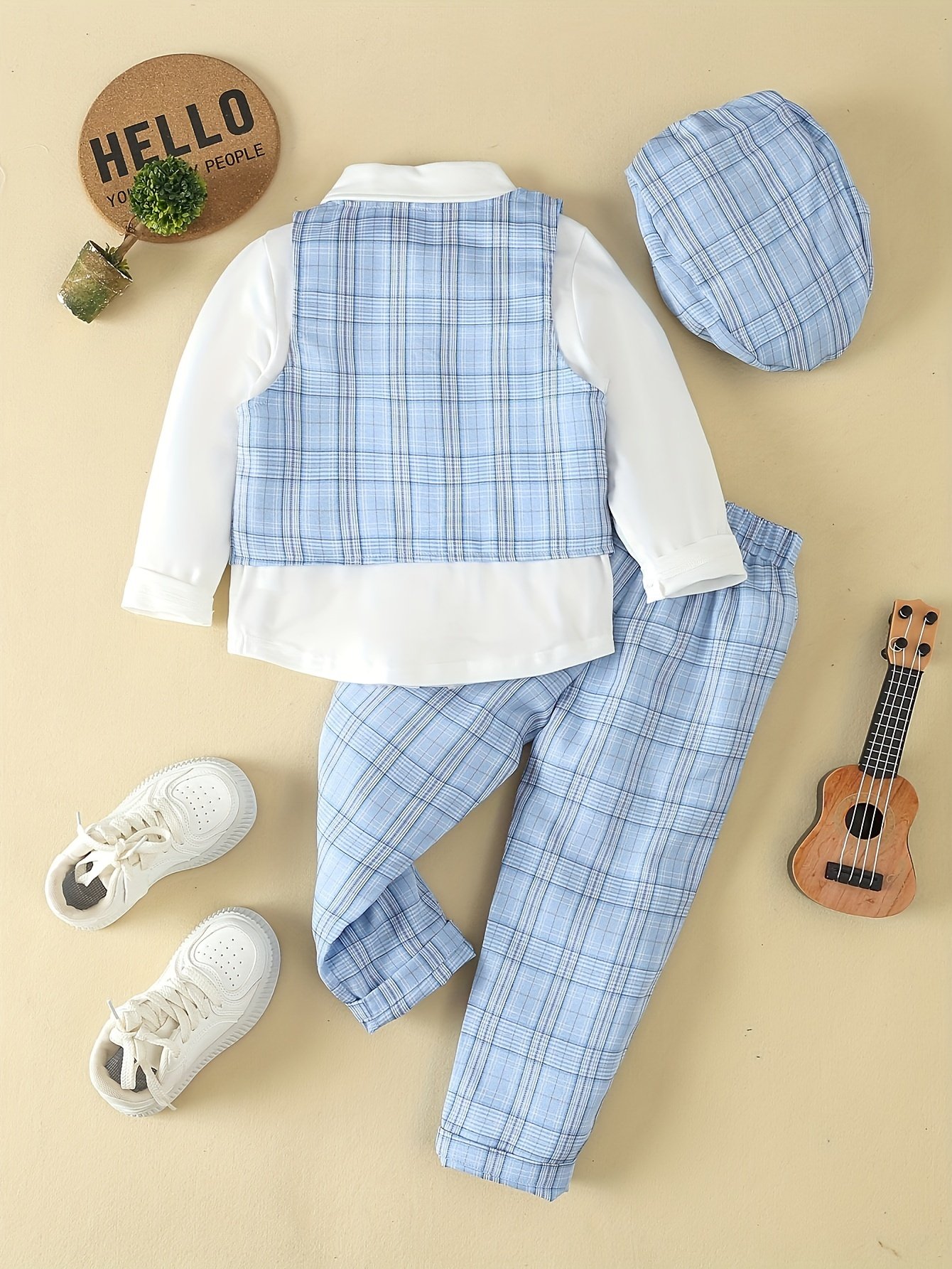 + Livraison de 12 à 17 joursGilet à Carreaux, Pantalon & Chapeau – Parfait pour les Fêtes d’Anniversaire, Performances, Mariages & Baptêmes