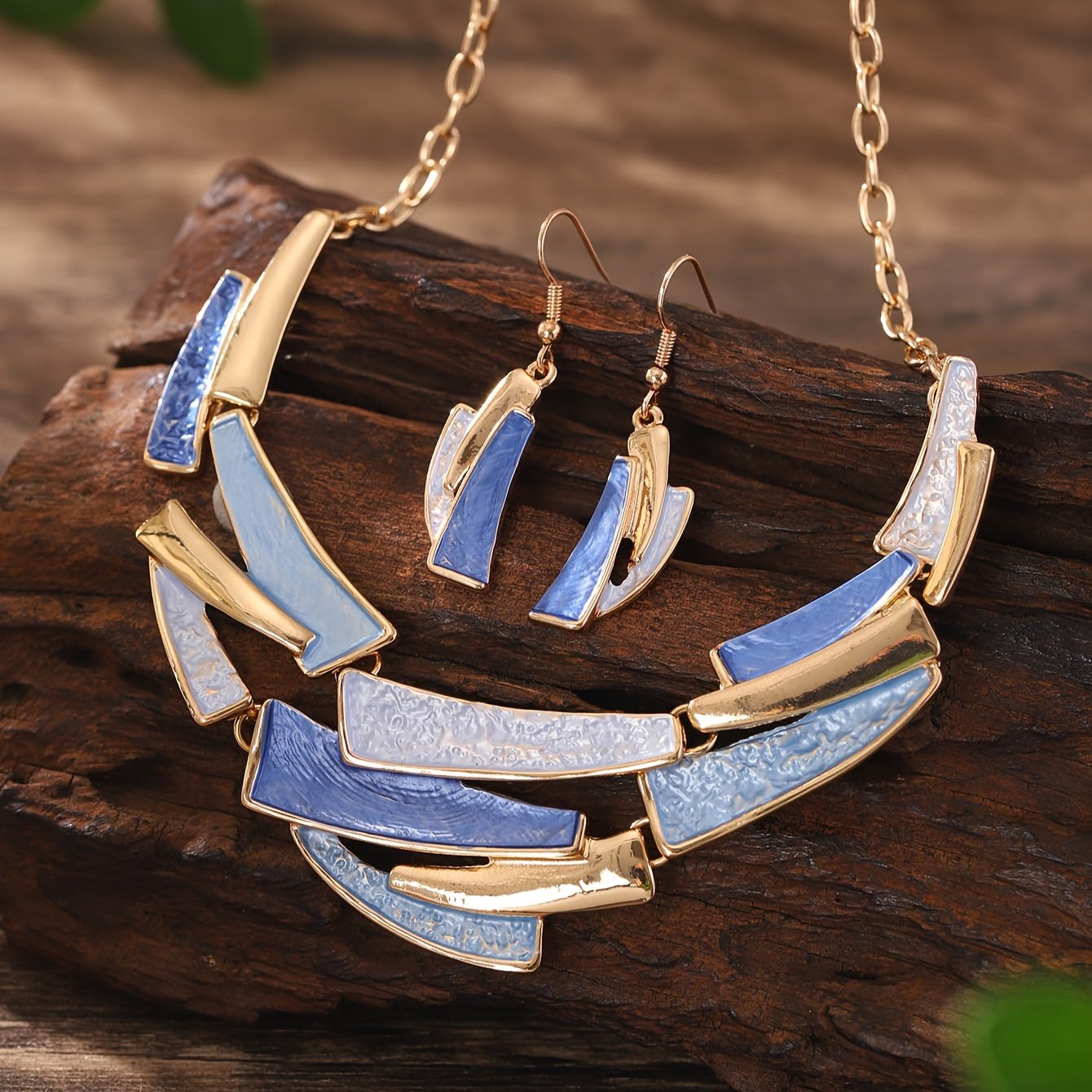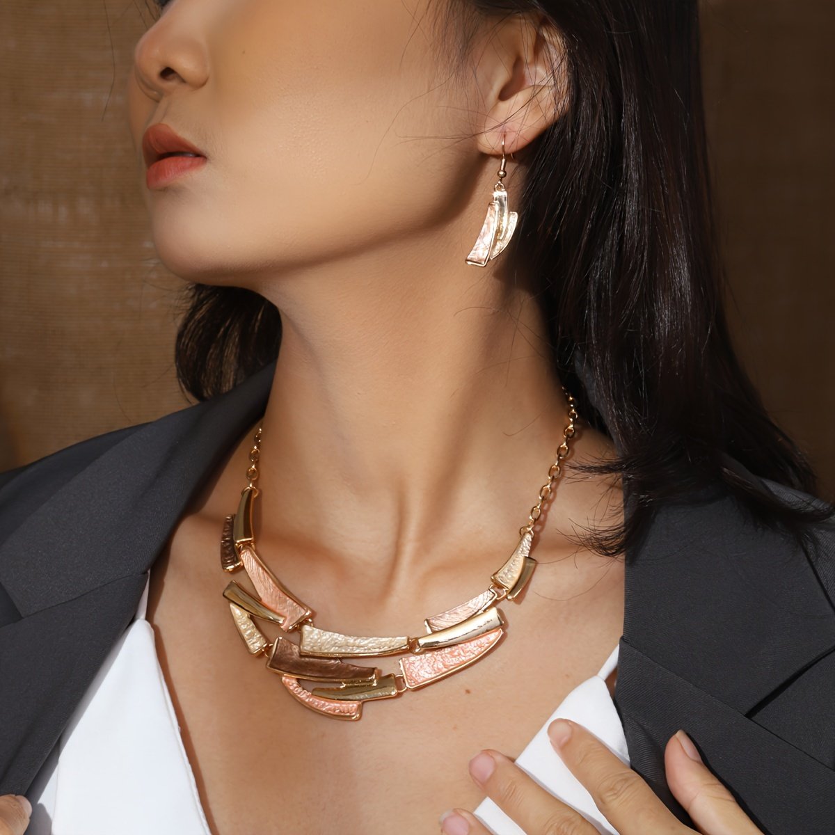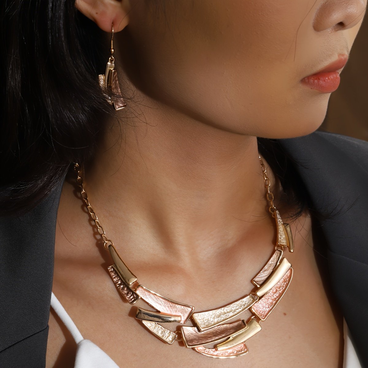 Ensemble – Élégant collier et boucles d’oreilles à maillons géométriques