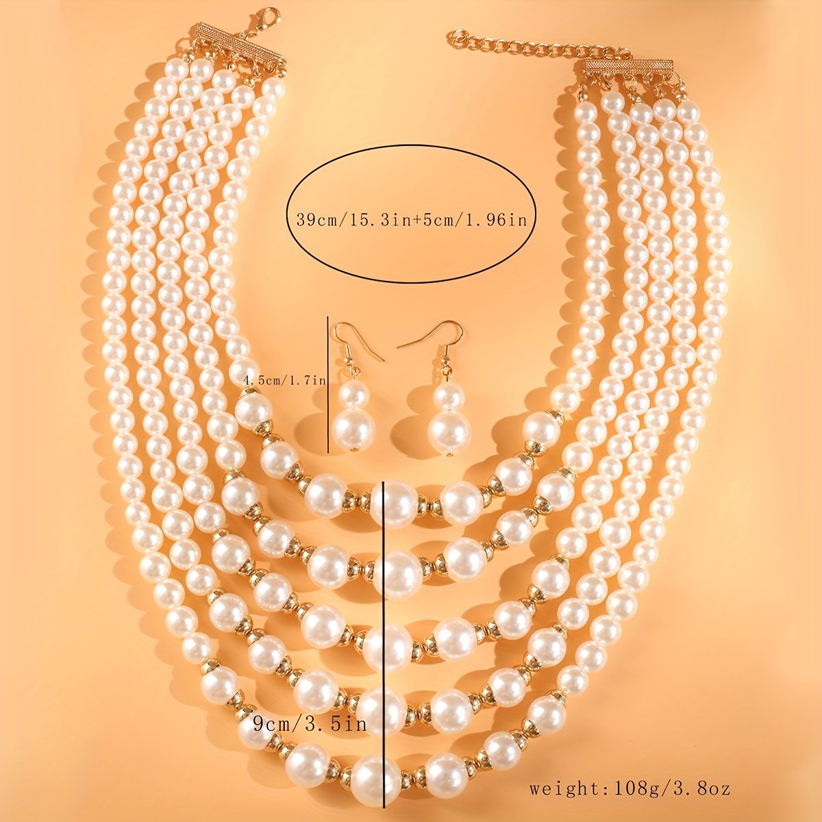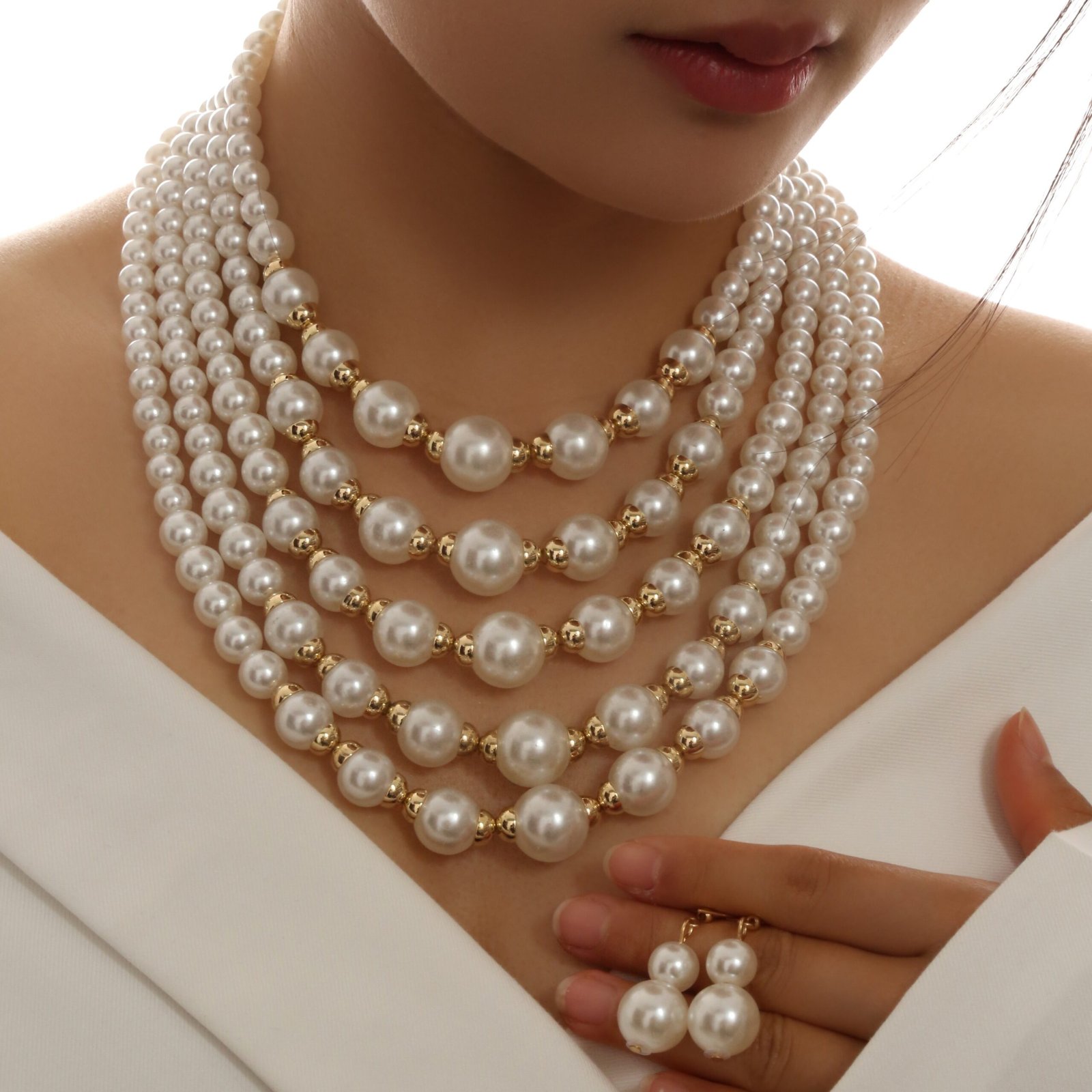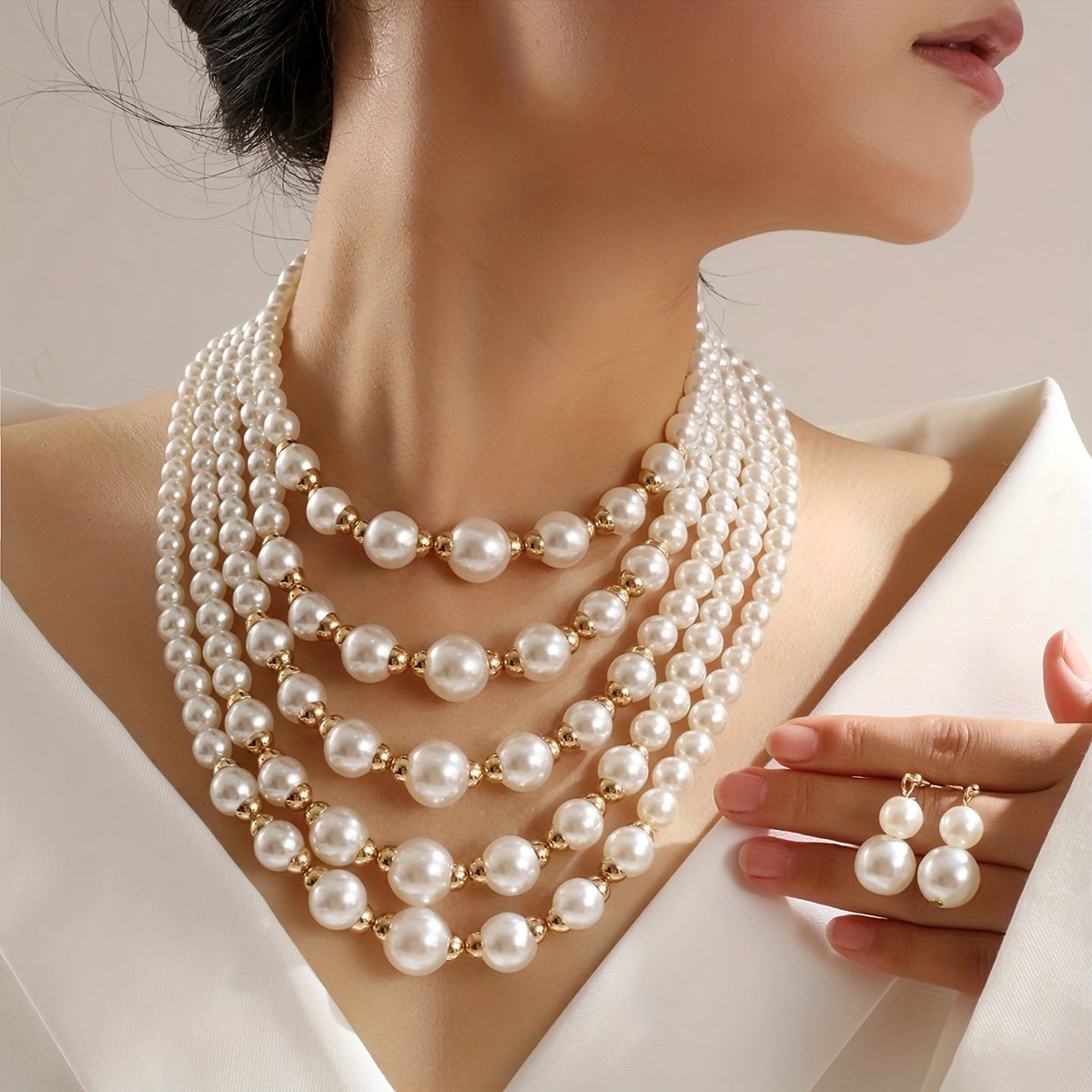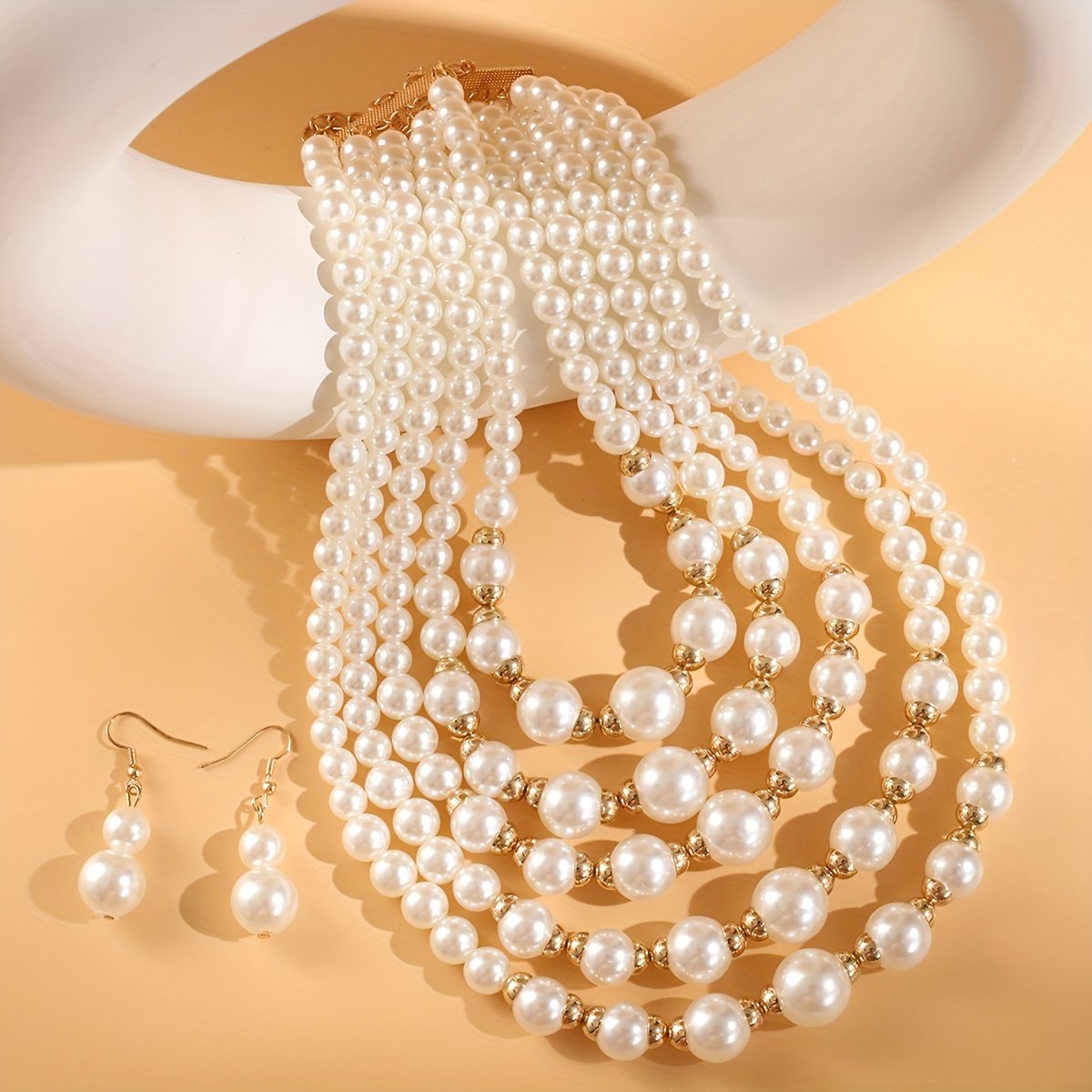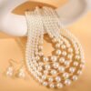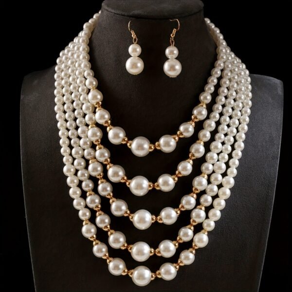 Ensemble Élégant de Collier et Boucles d’Oreilles Multi-Couches en Perles