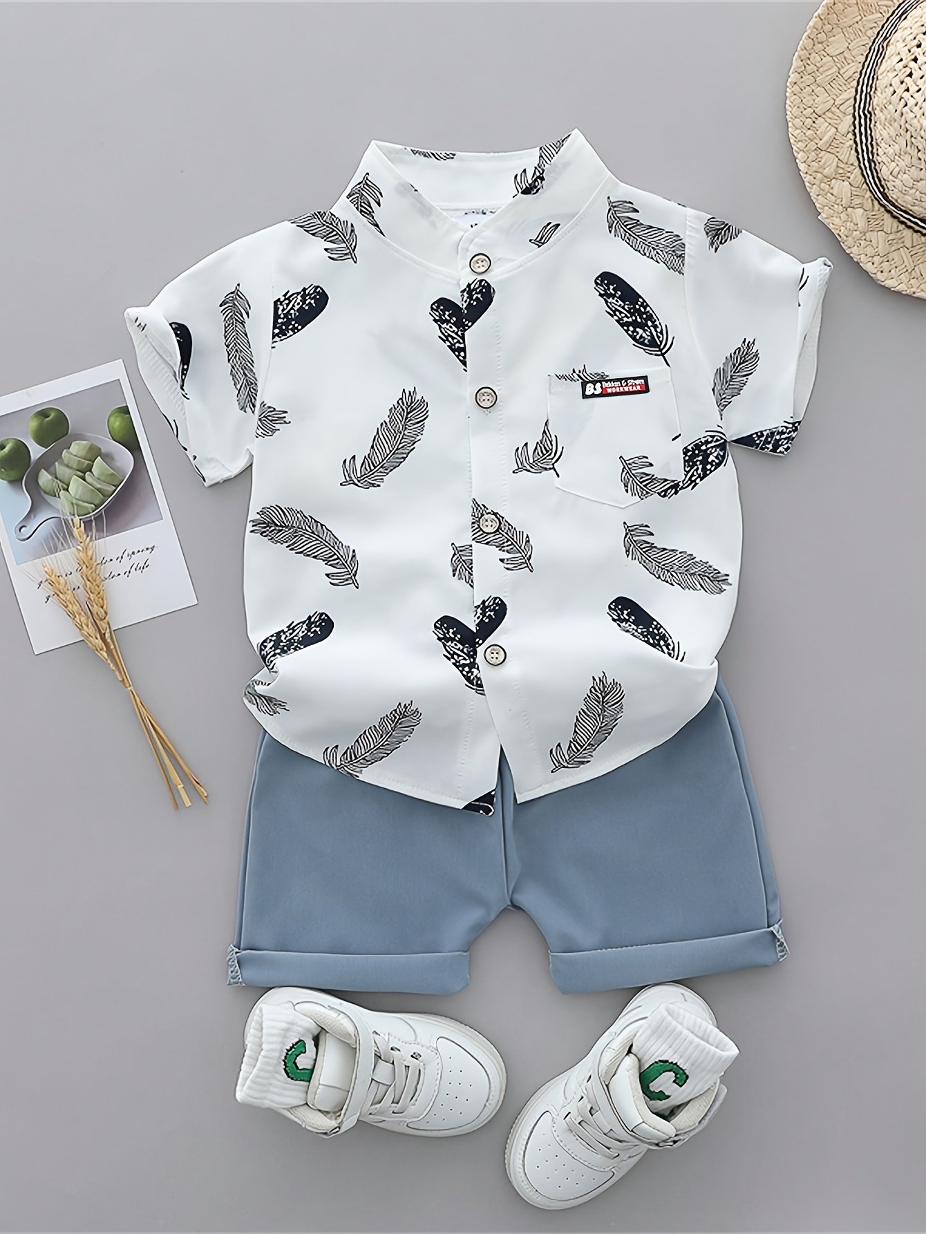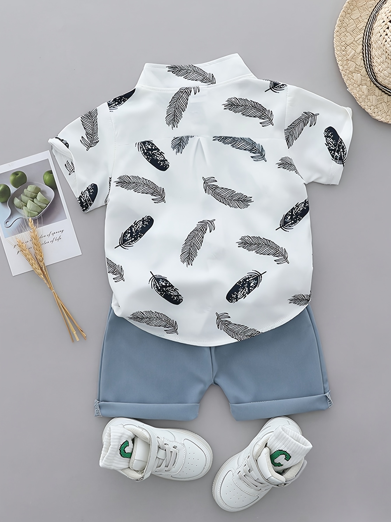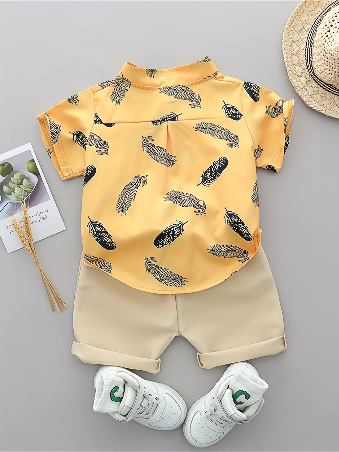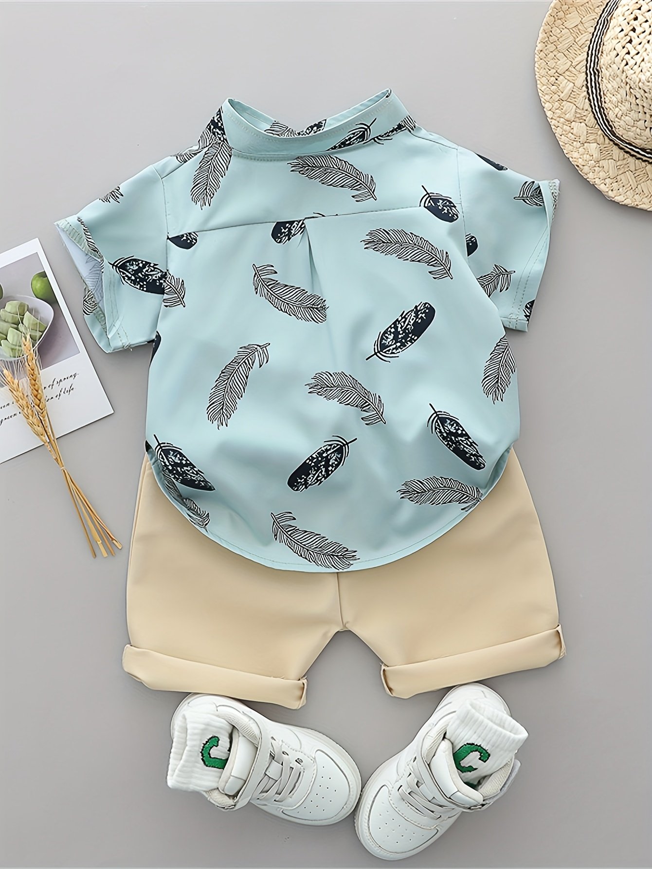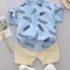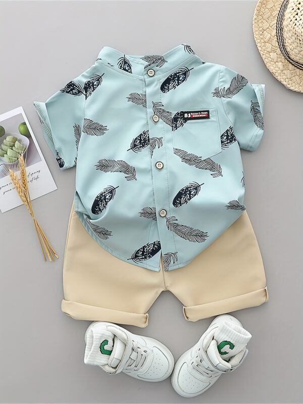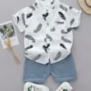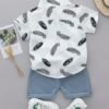 [Ensemble Été Bébé] Ensemble T-Shirt et Short à Plumes Imprimé Cartoon