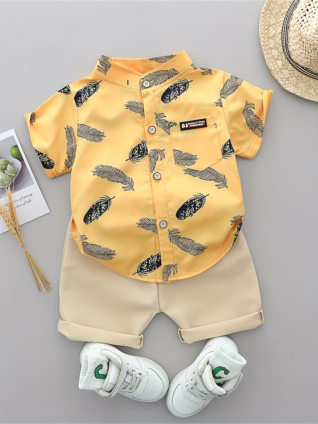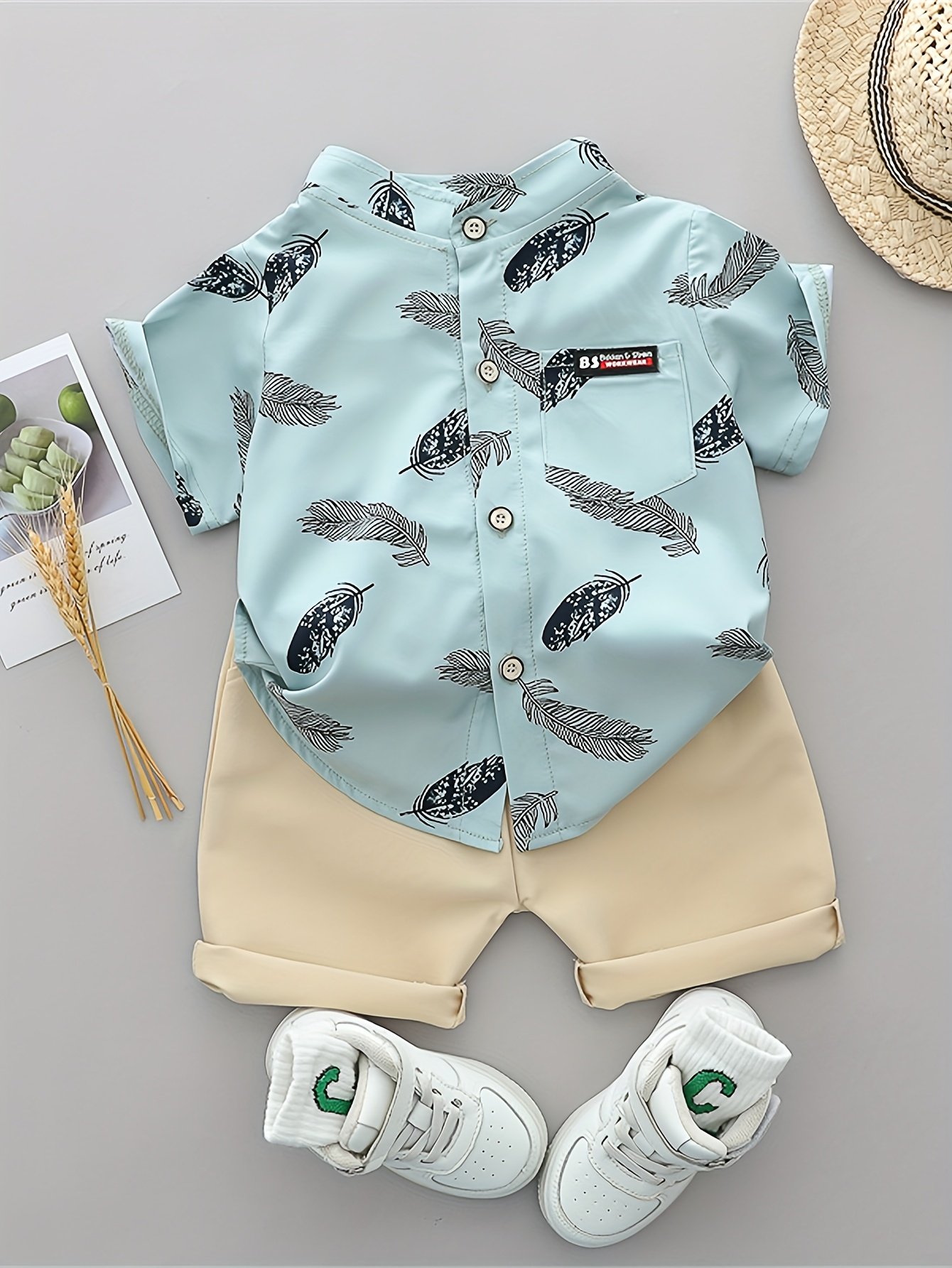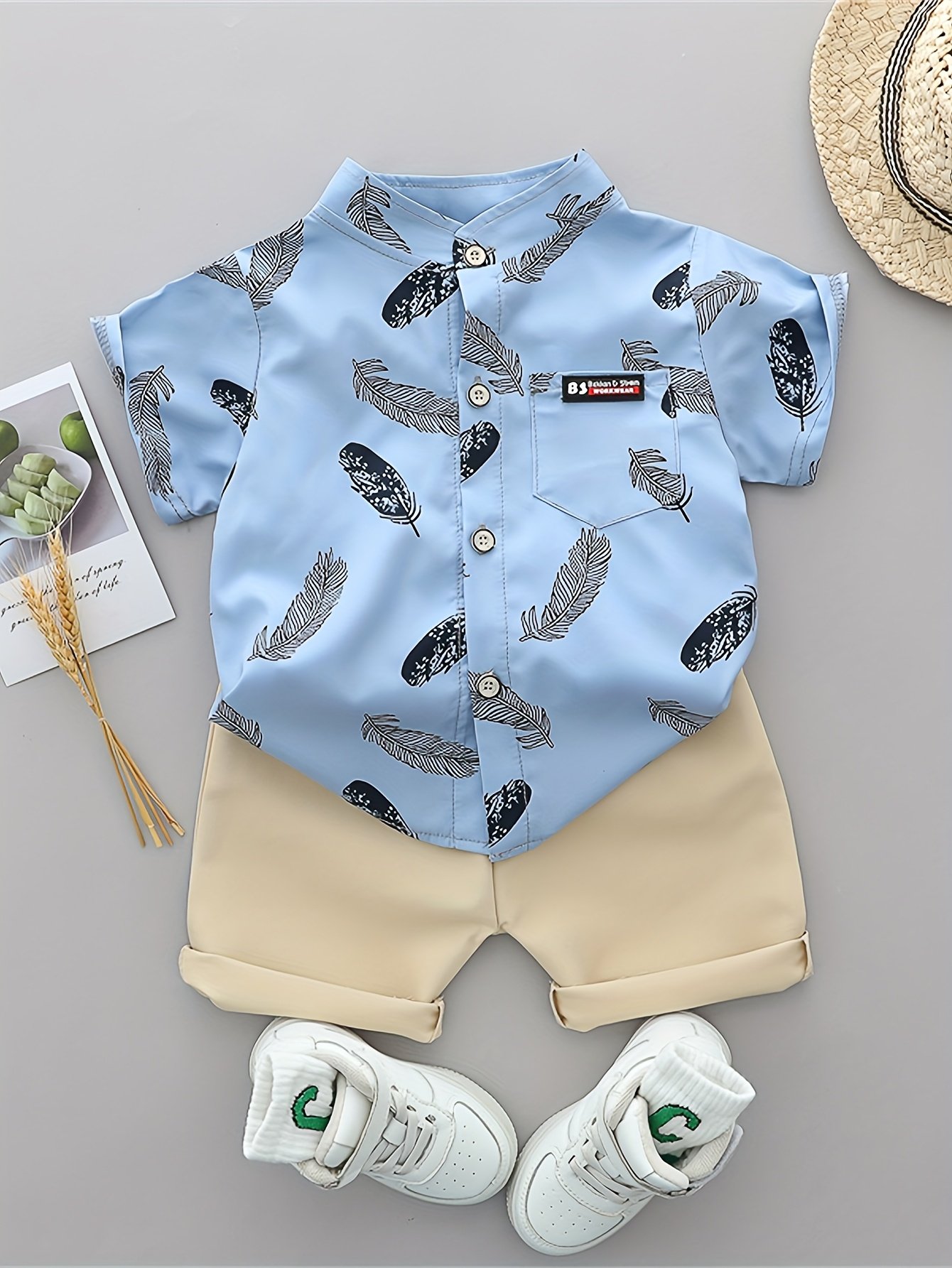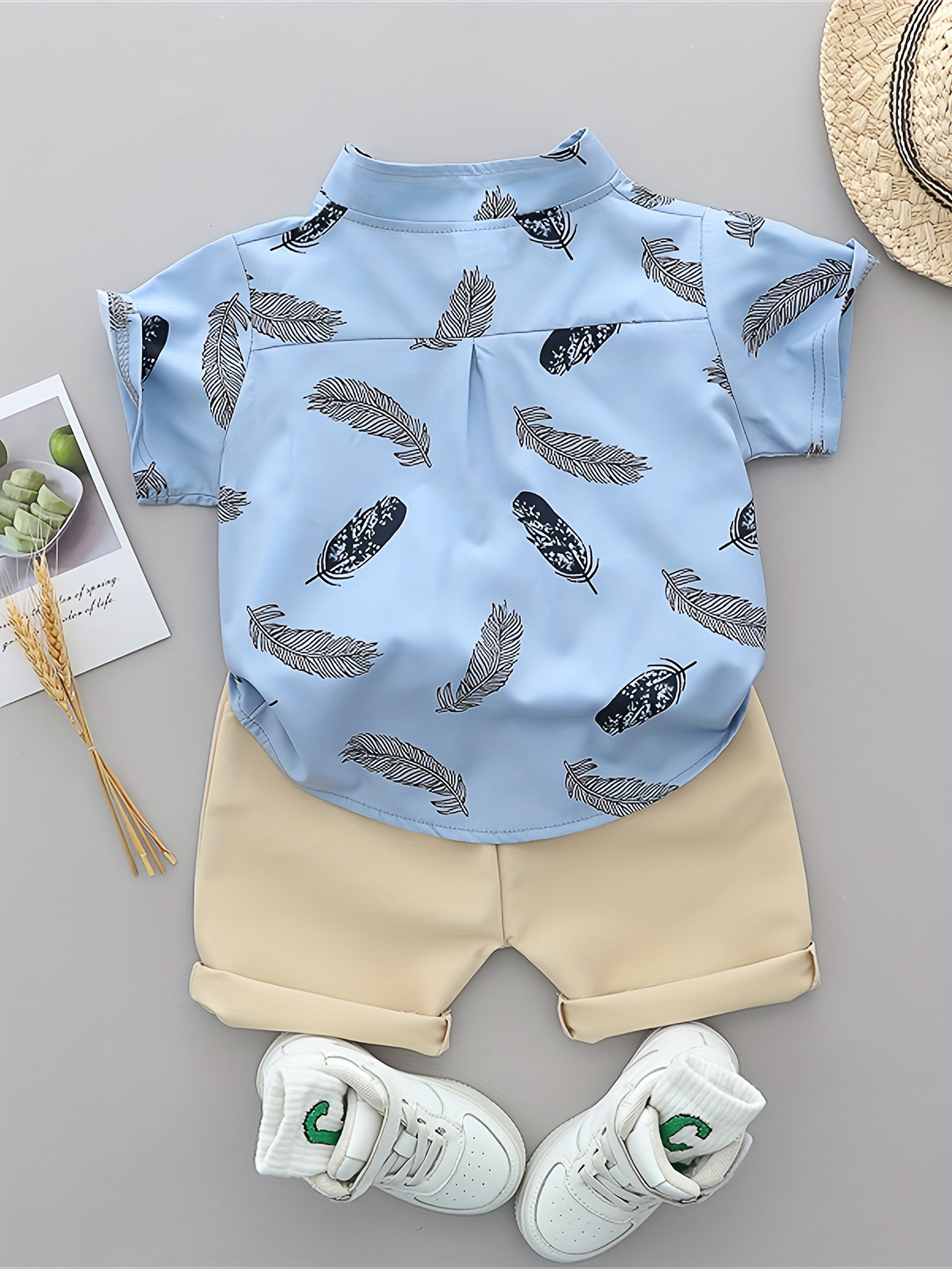 [Ensemble Été Bébé] Ensemble T-Shirt et Short à Plumes Imprimé Cartoon