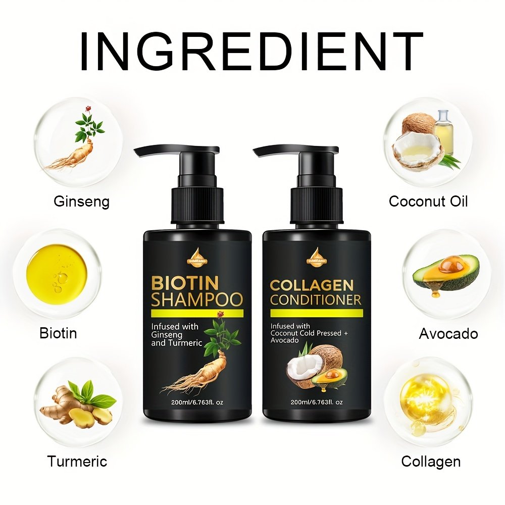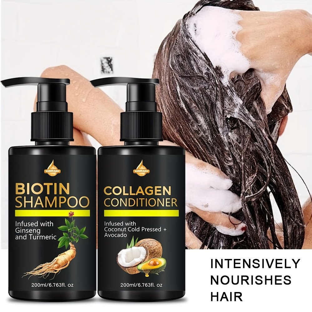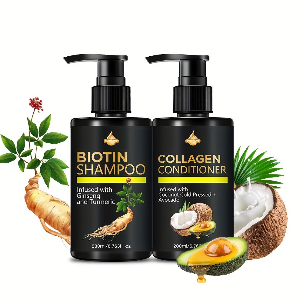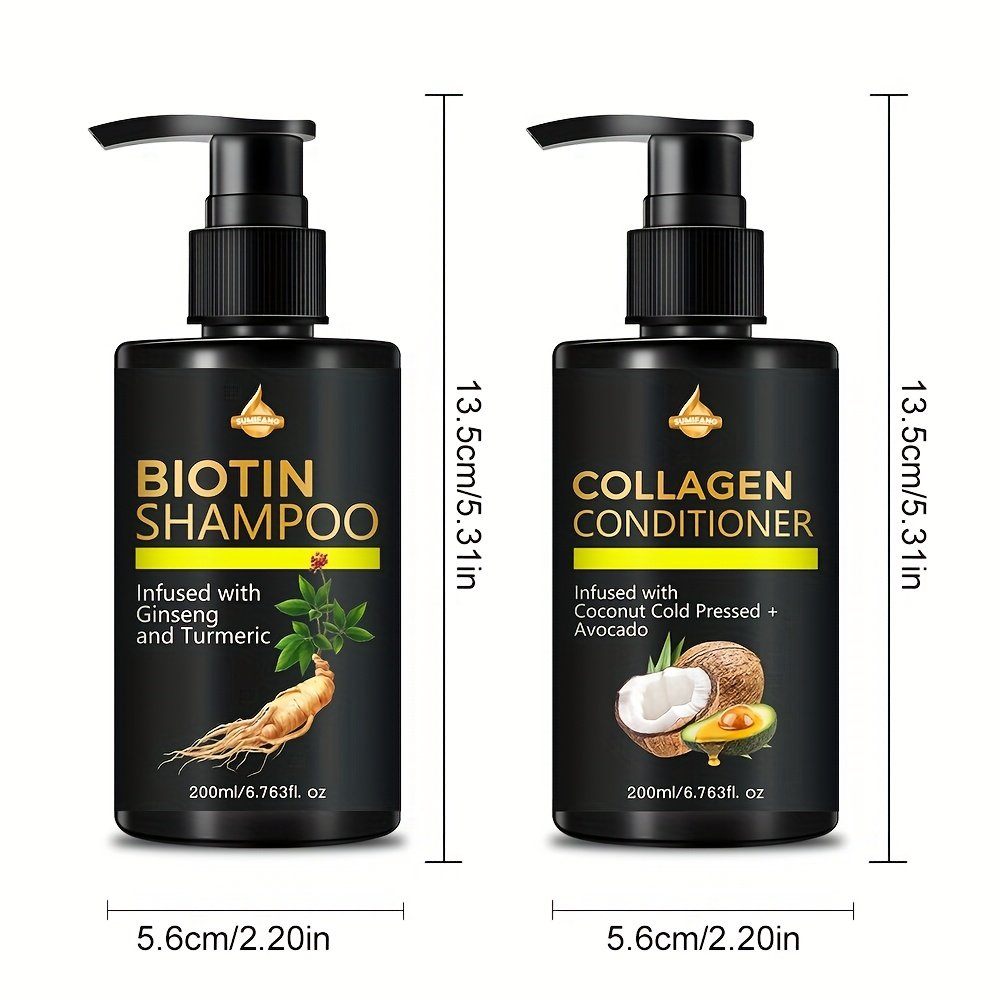 Ensemble Shampooing et Coiffeur à la Biotine SUMIFANG – Sans Sulfates, Biotine & Huile d'Olive Rose en Richesse pour Cheveux Secs et Endommagés – Coiffeur à l'Huile de Coco pour Cheveux Chauves, 200Ml/6.76Fl.Oz., Soin Capillaire Essentiel | Shampooing San