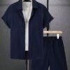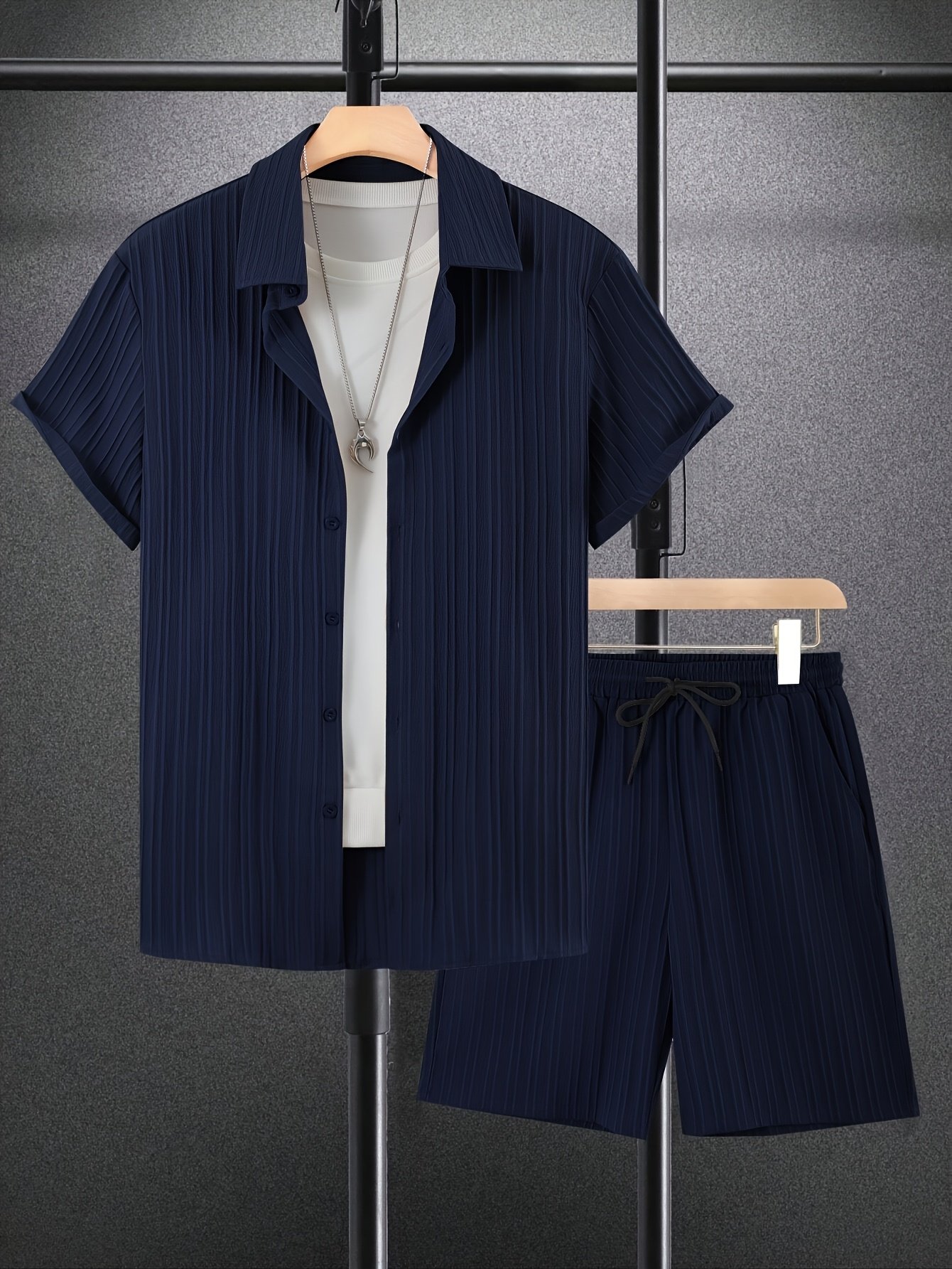 Ensemble short 2 pièces décontracté pour homme avec texture ondulée