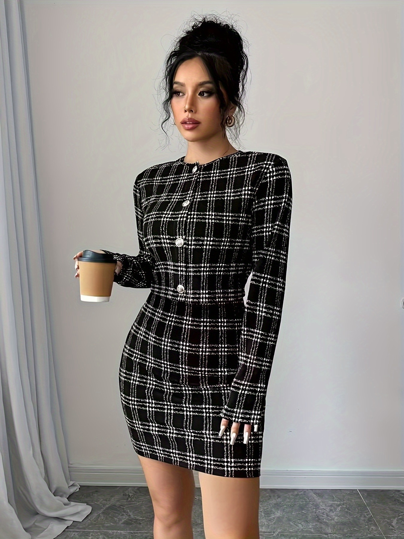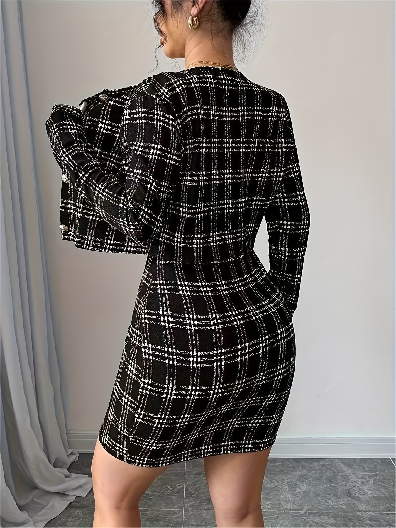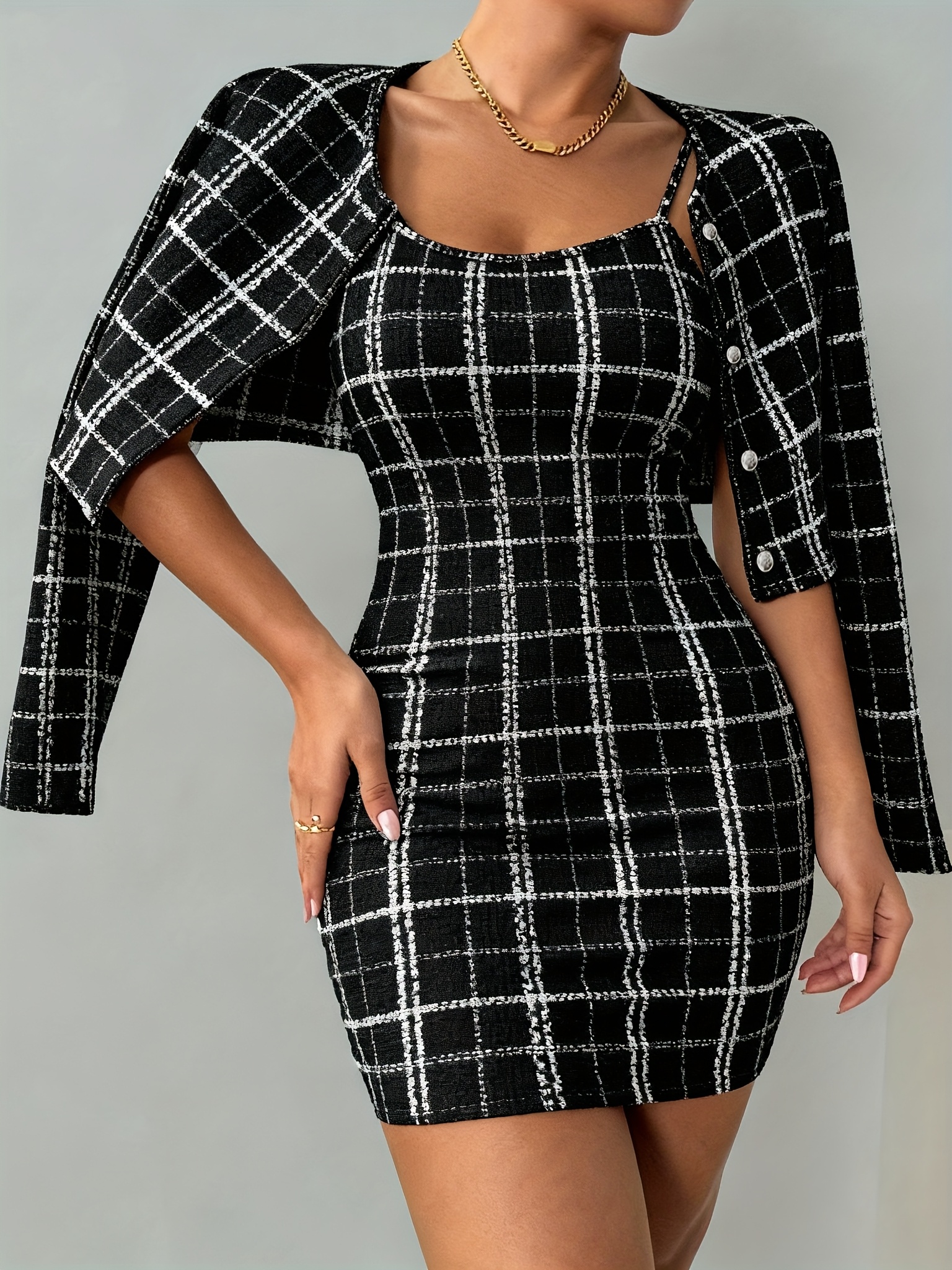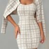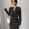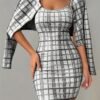 1 avis pour Ensemble Veste à Manches Longues à Carreaux et Robe Camisole Courte