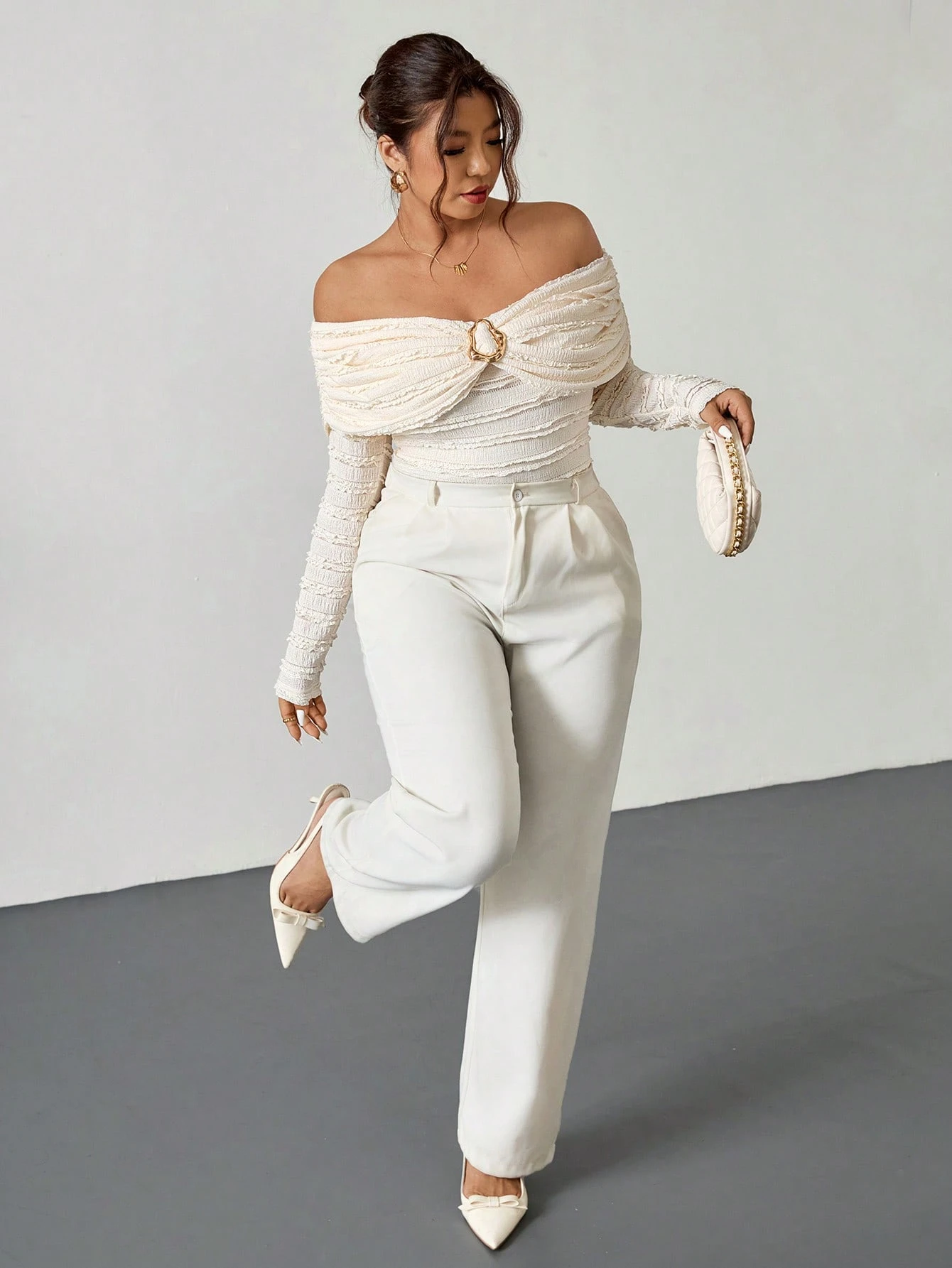 Soyez le premier à laisser votre avis sur “T-shirt élastique à manches longues texture froissée, épaules dénudées”