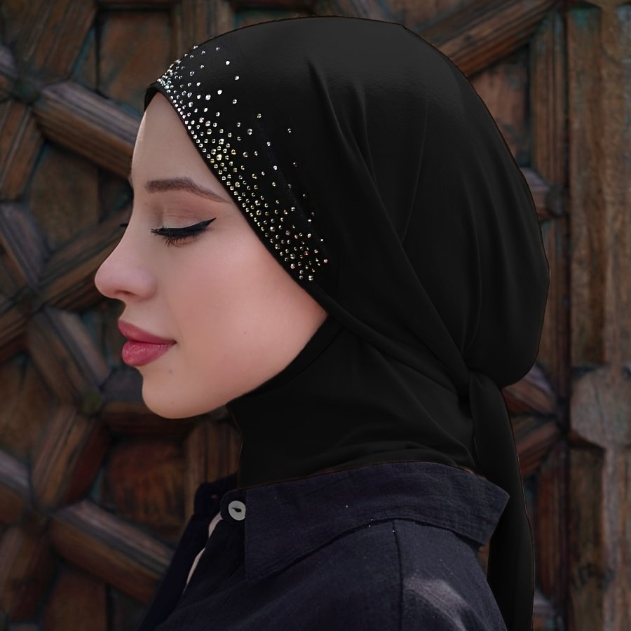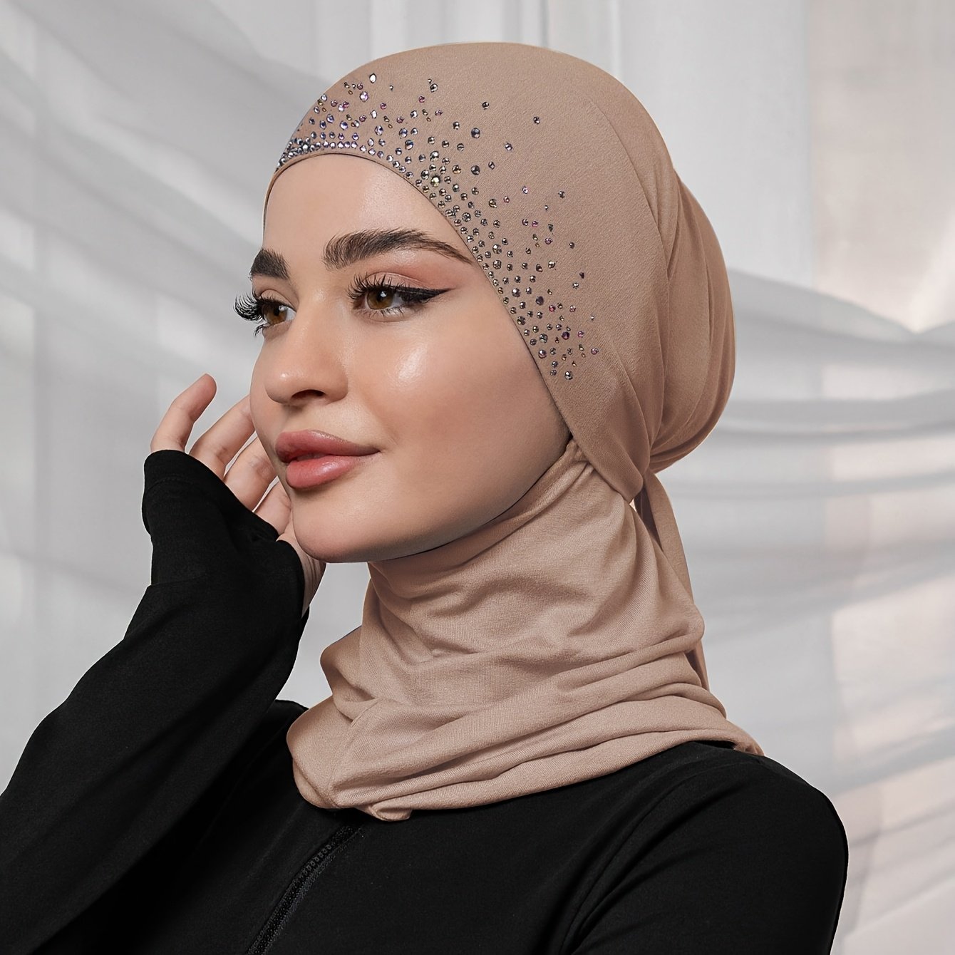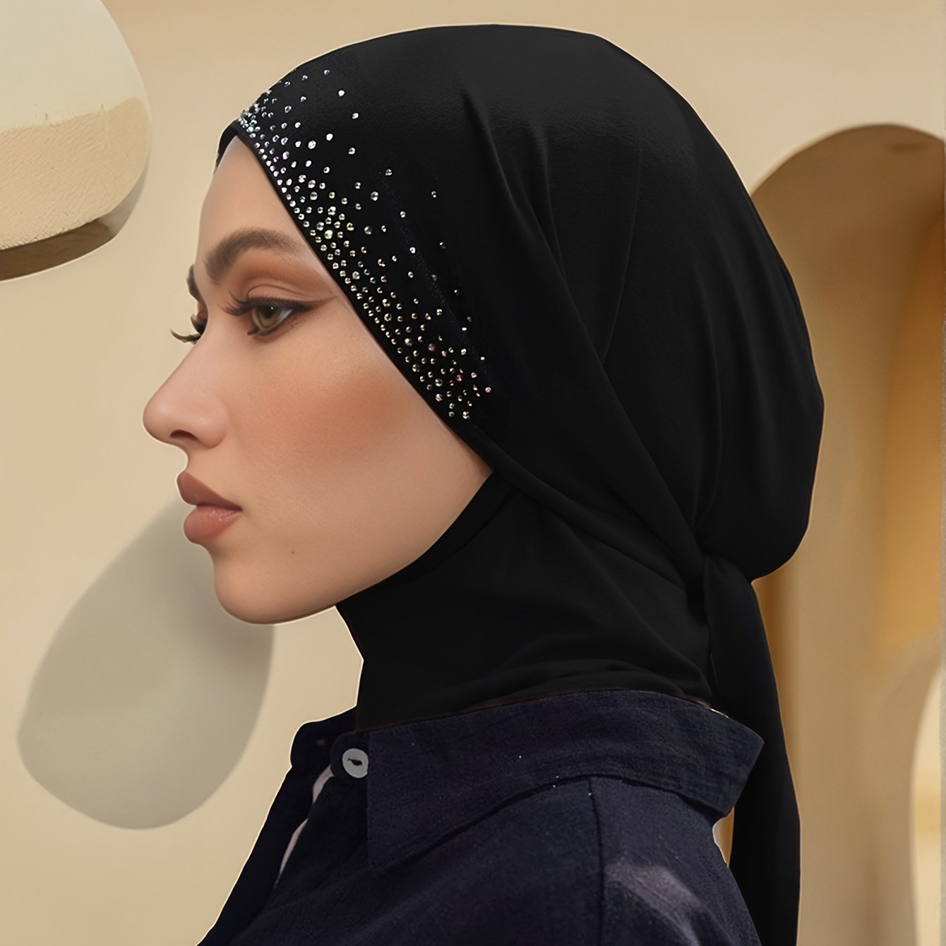 Foulard Instantané pour Femmes, Foulard à Nouer Pratique, Foulard Musulman Uni avec Strass, Couvre-Chef, Idéal pour un Usage Quotidien