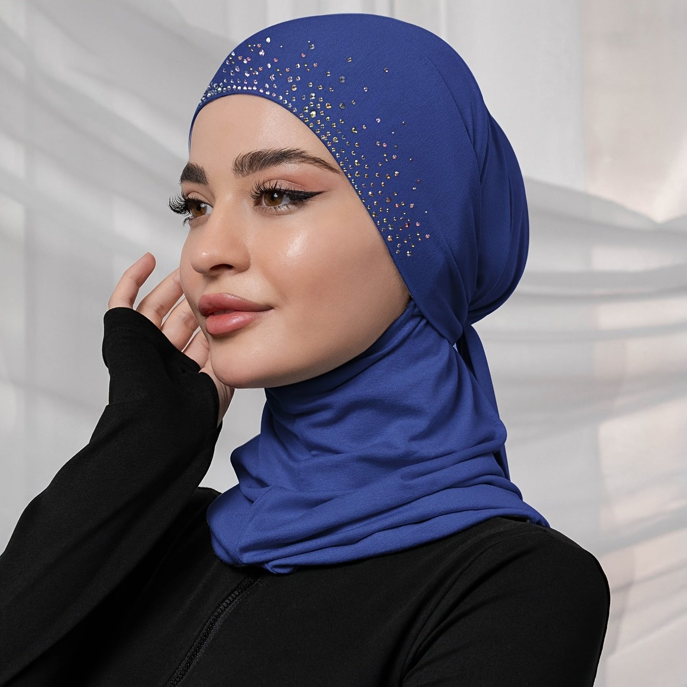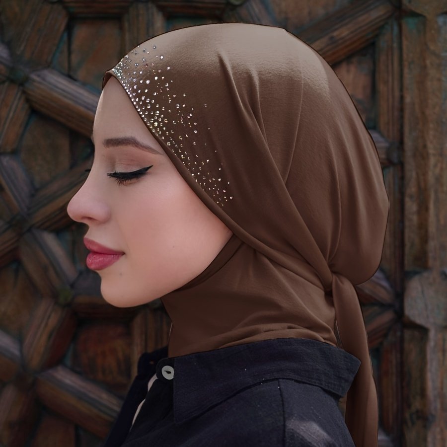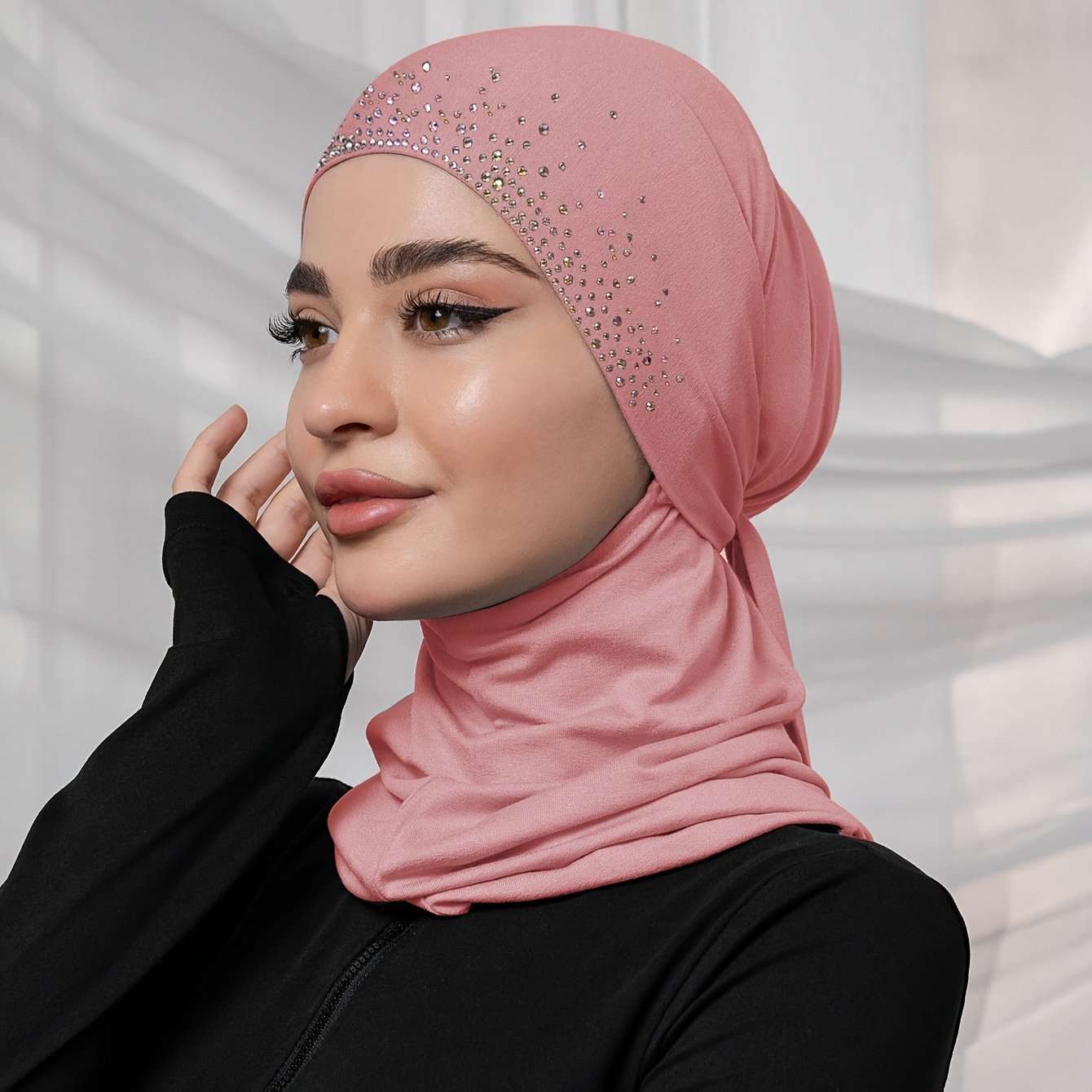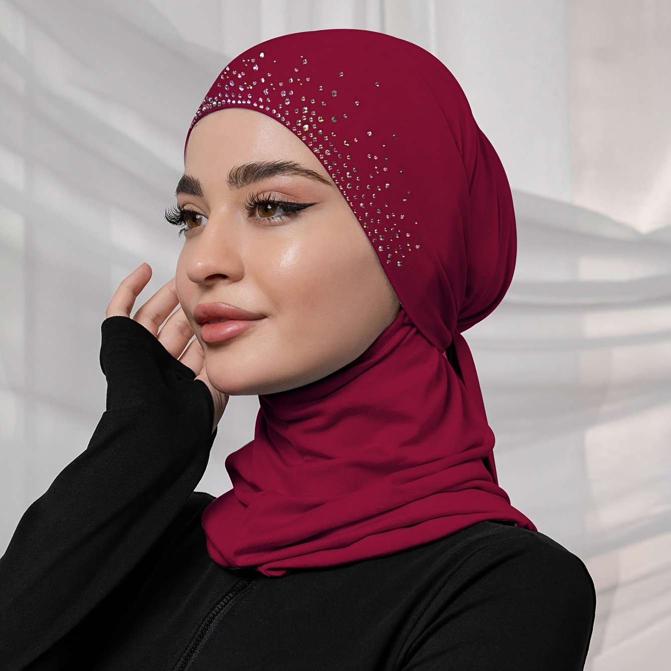 Foulard Instantané pour Femmes, Foulard à Nouer Pratique, Foulard Musulman Uni avec Strass, Couvre-Chef, Idéal pour un Usage Quotidien