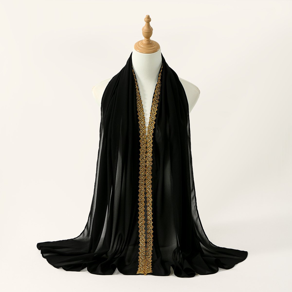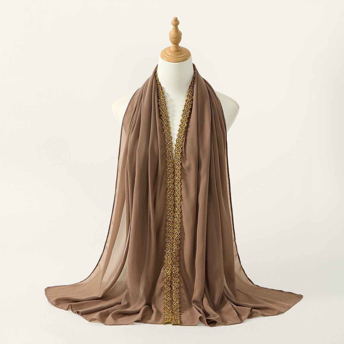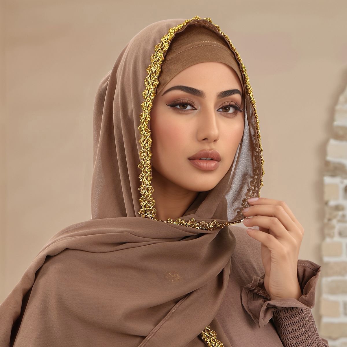 Foulard musulman pour femmes, fleur dorée élégante, couleur unie, confortable