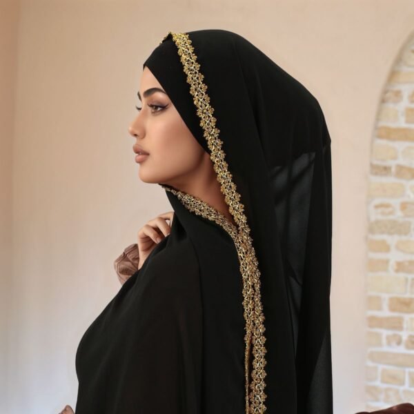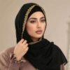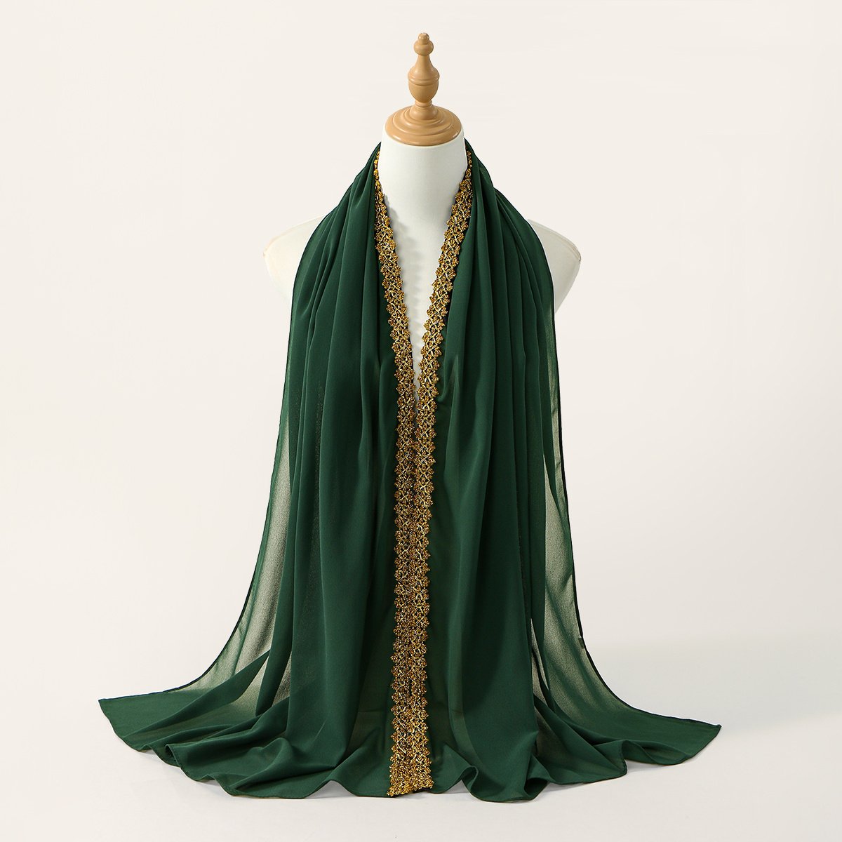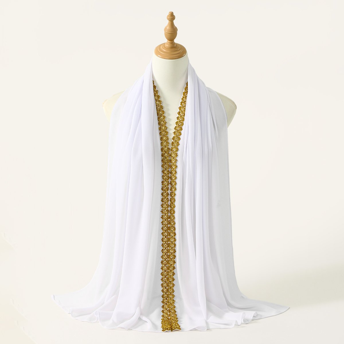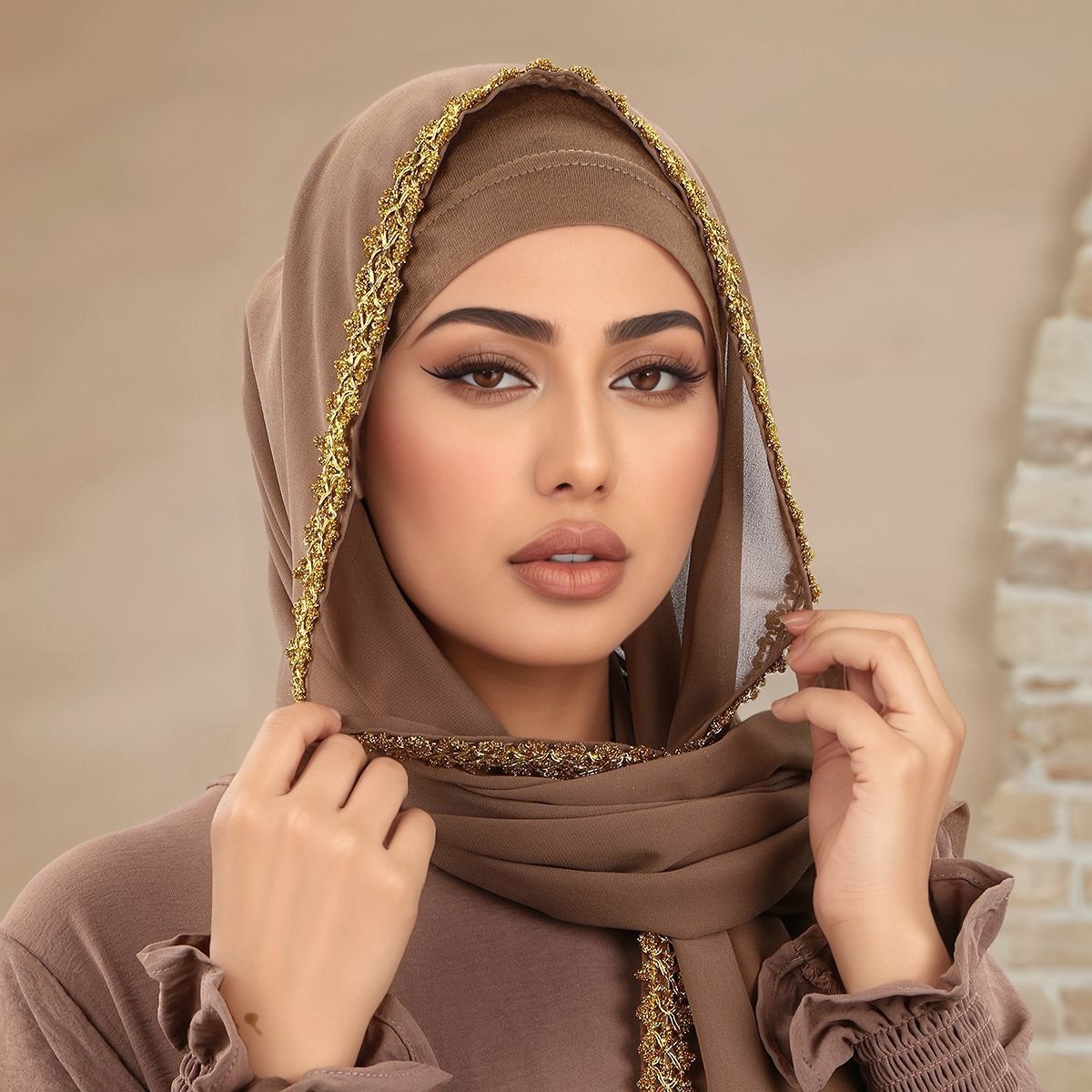 Foulard musulman pour femmes, fleur dorée élégante, couleur unie, confortable
