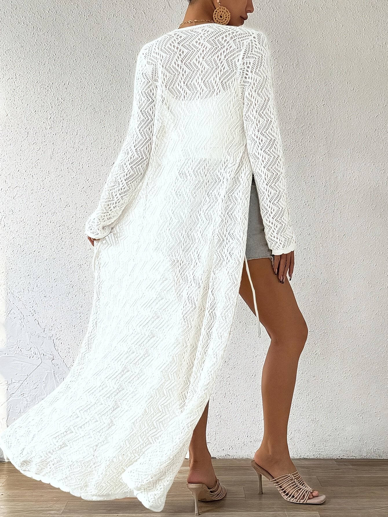 Gilet pour femme, pull élégant à manches longues et dentelle, ouvert sur le devant