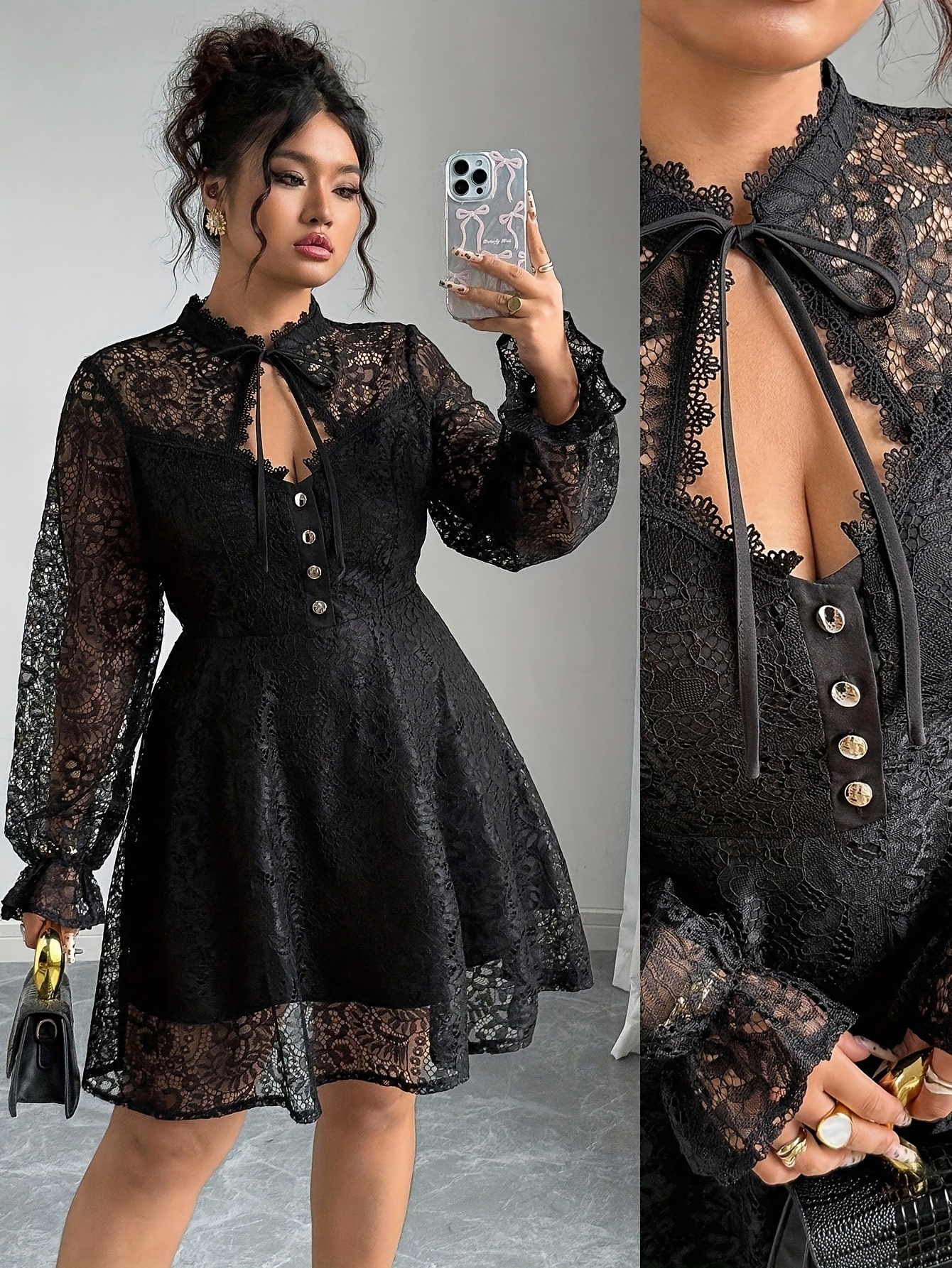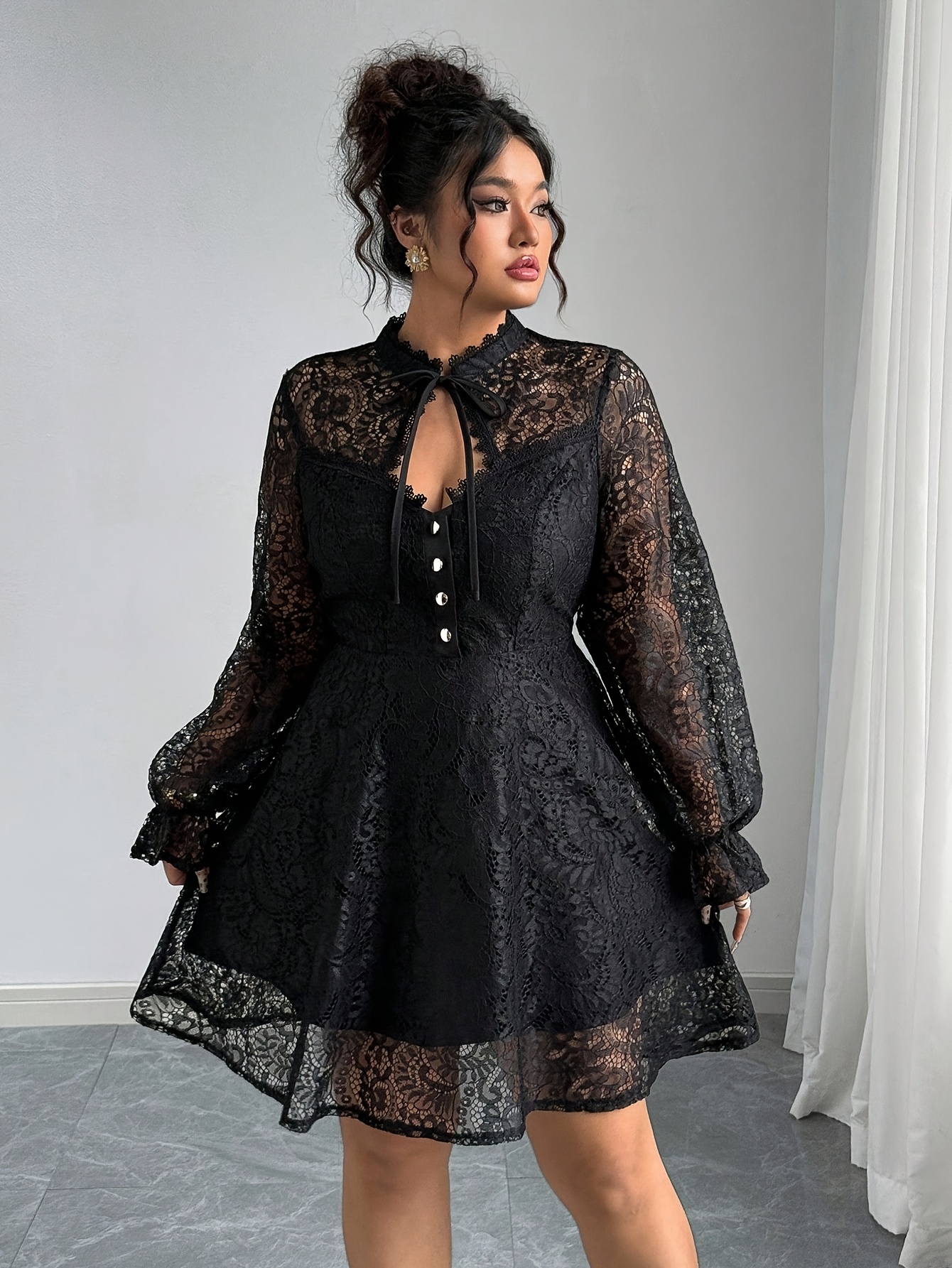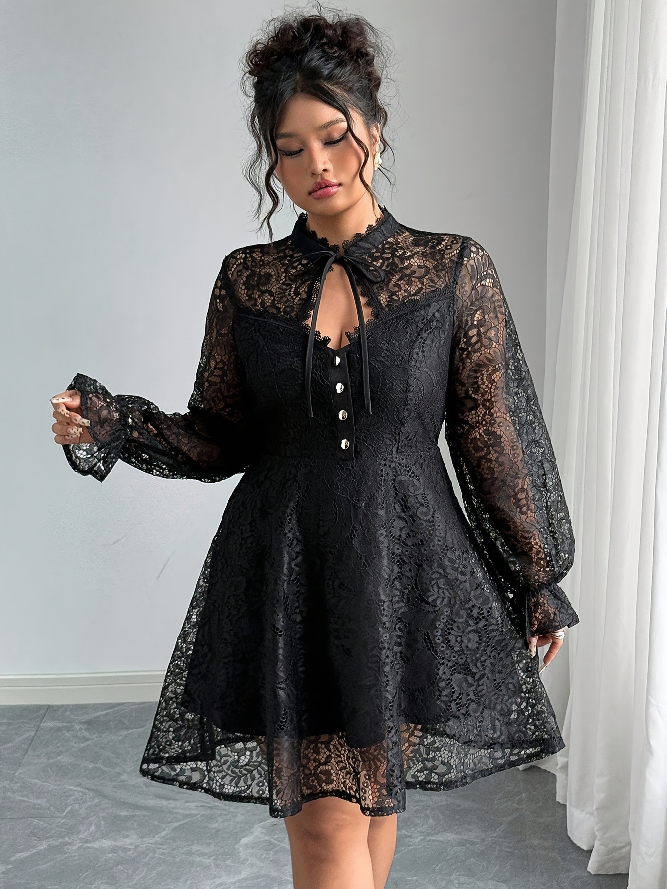 Grande Taille – Élégante Robe Longue en Dentelle Style Français Grande Taille