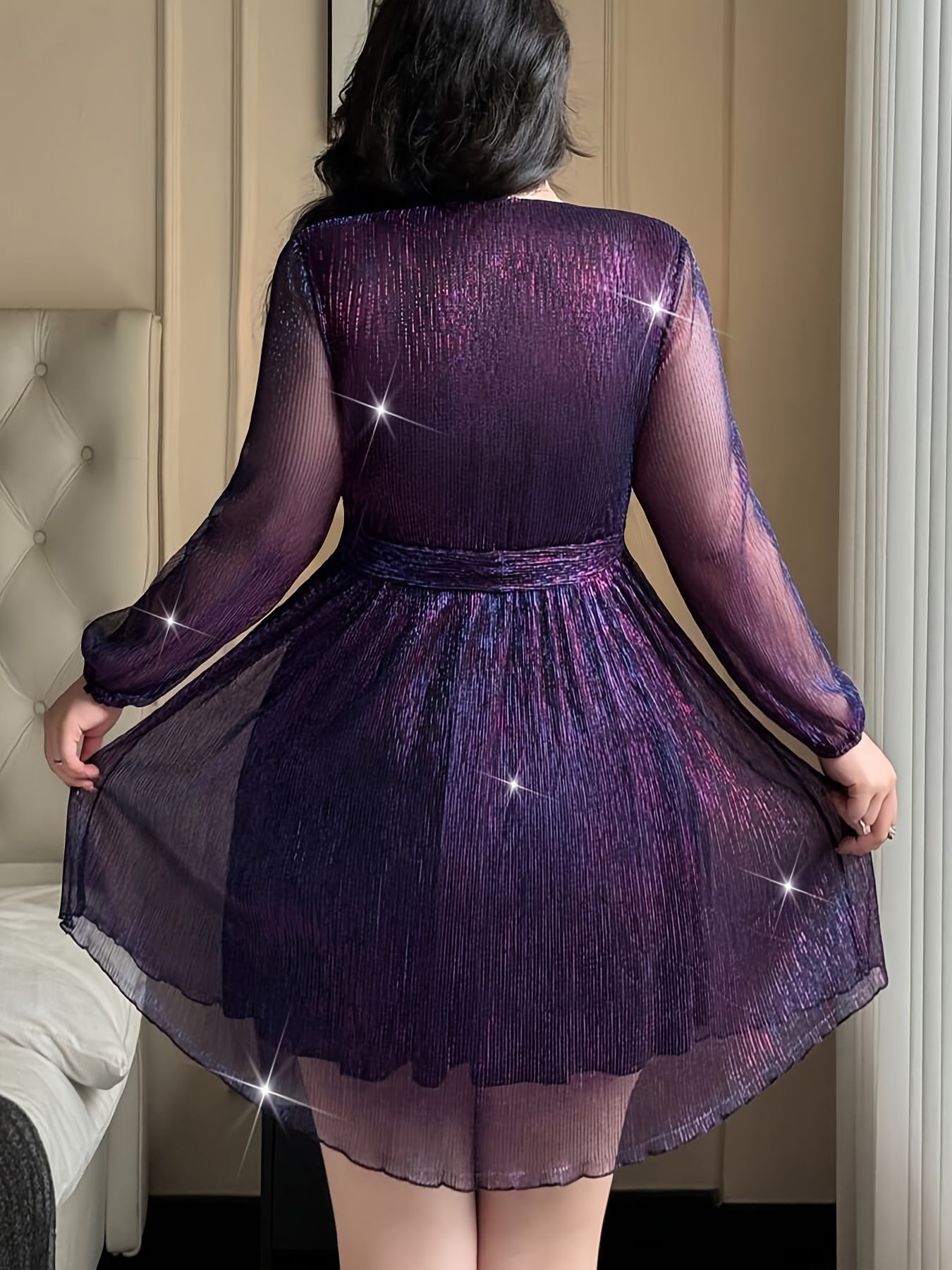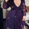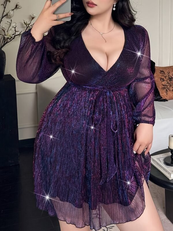 Grande Taille – Robe Tunique Élégante Grande Taille Col en V | Manches Longues