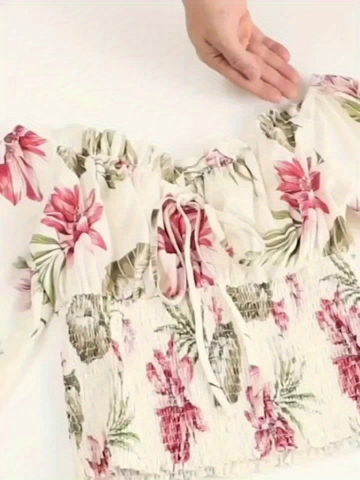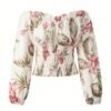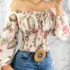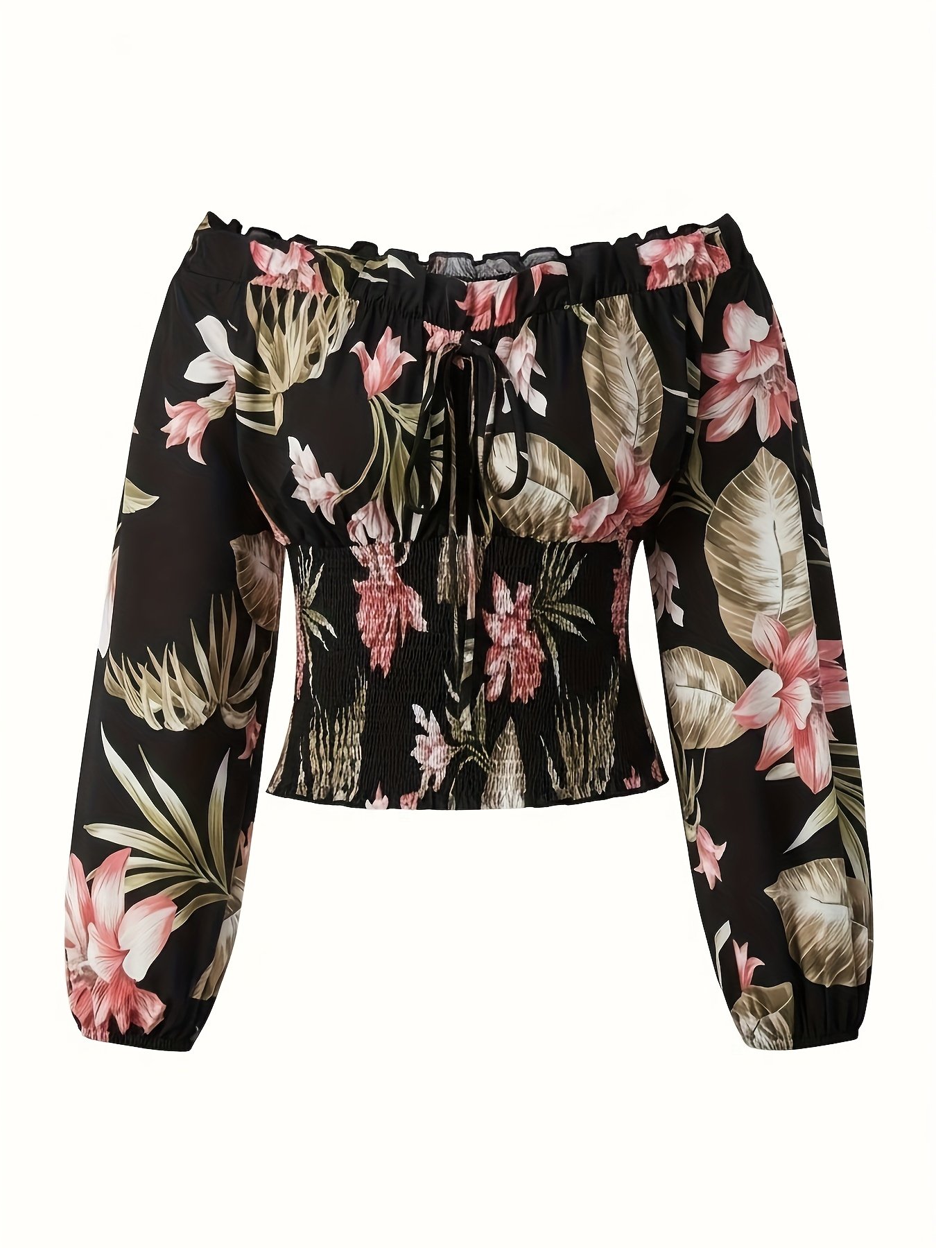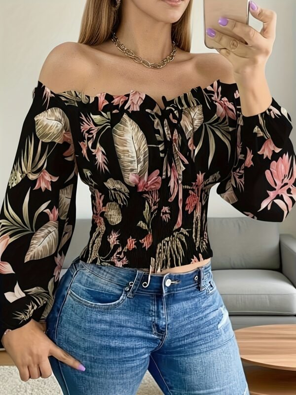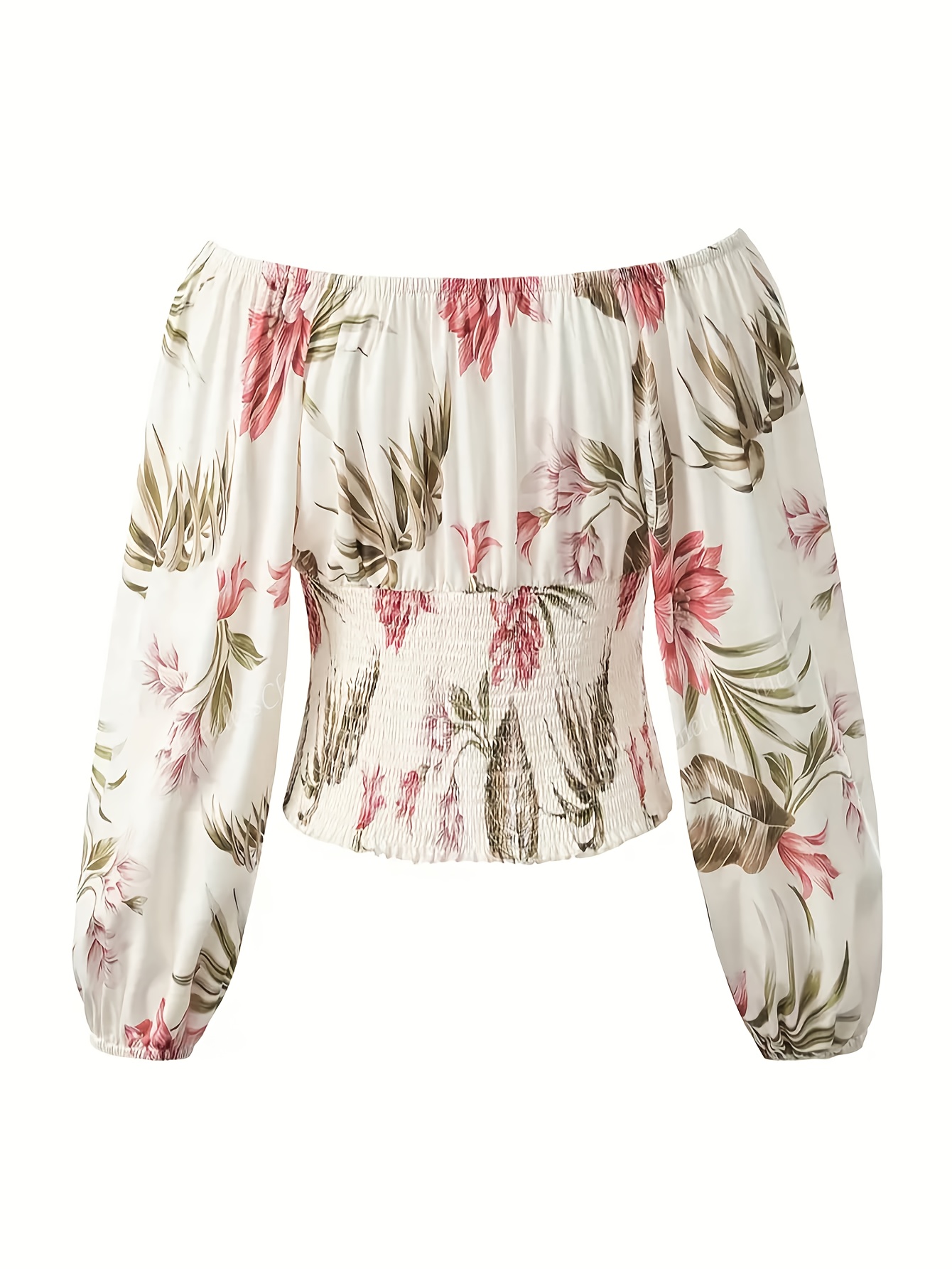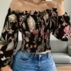 Haut élégant à épaules dénudées pour femmes – Imprimé floral, coupe ajustée