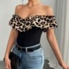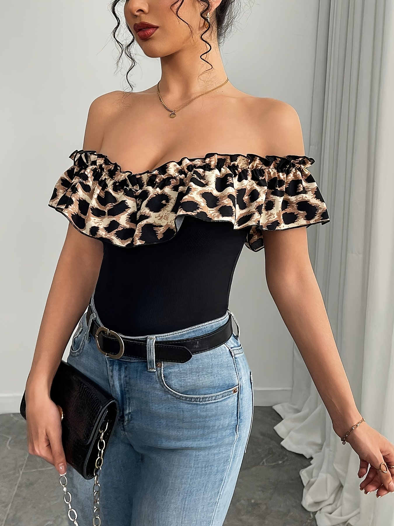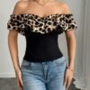 Haut élégant à imprimé léopard pour femme avec détails à volants