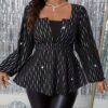 Haut élégant à manches lanternes et col carré pour femme