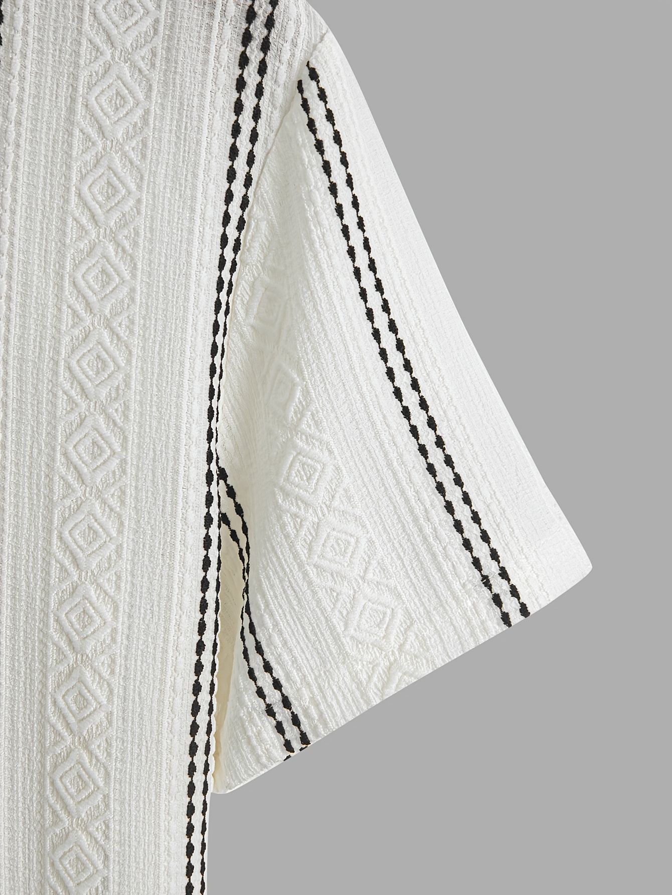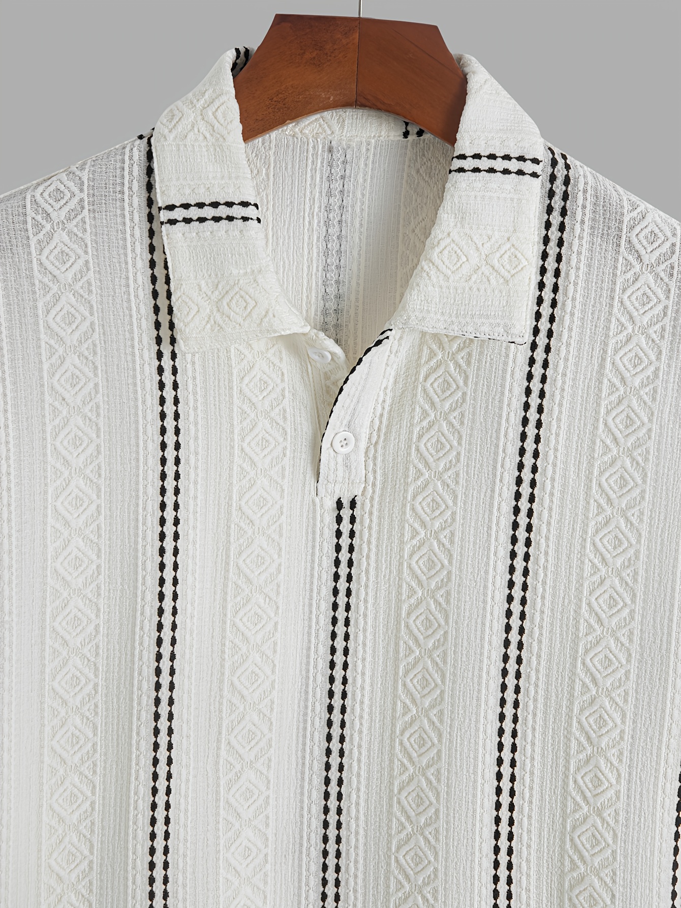 Haut élégant et facile à entretenir, motif rayé, tissu texturé, matériau respirant