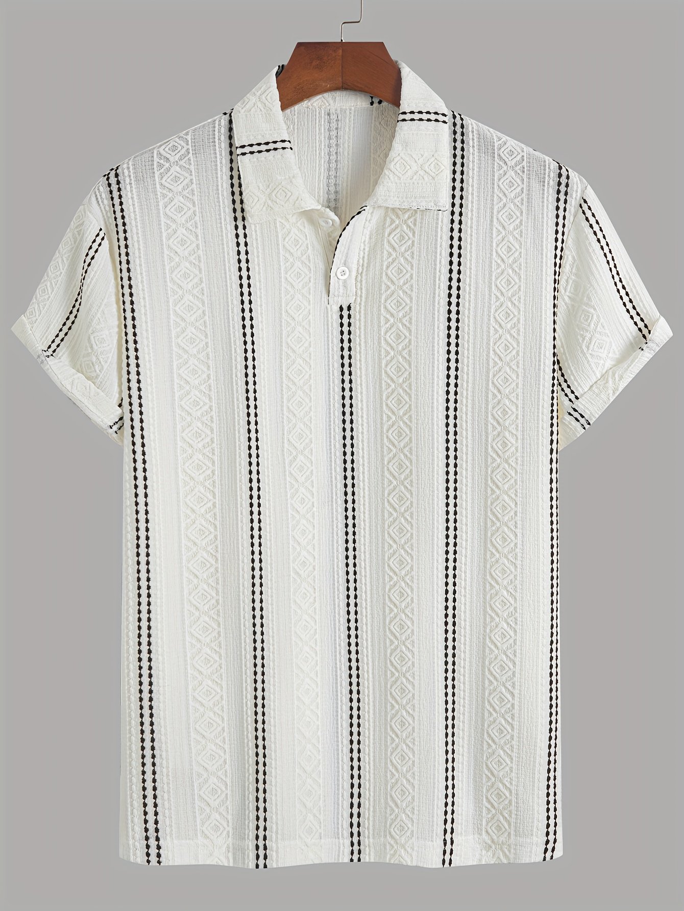 Haut élégant et facile à entretenir, motif rayé, tissu texturé, matériau respirant