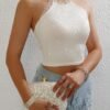 + Livraison de 12 à 17 joursHaut court sans manches à dos ouvert avec des embellissements scintillants,