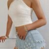 Haut court sans manches à dos ouvert avec des embellissements scintillants,