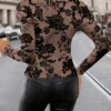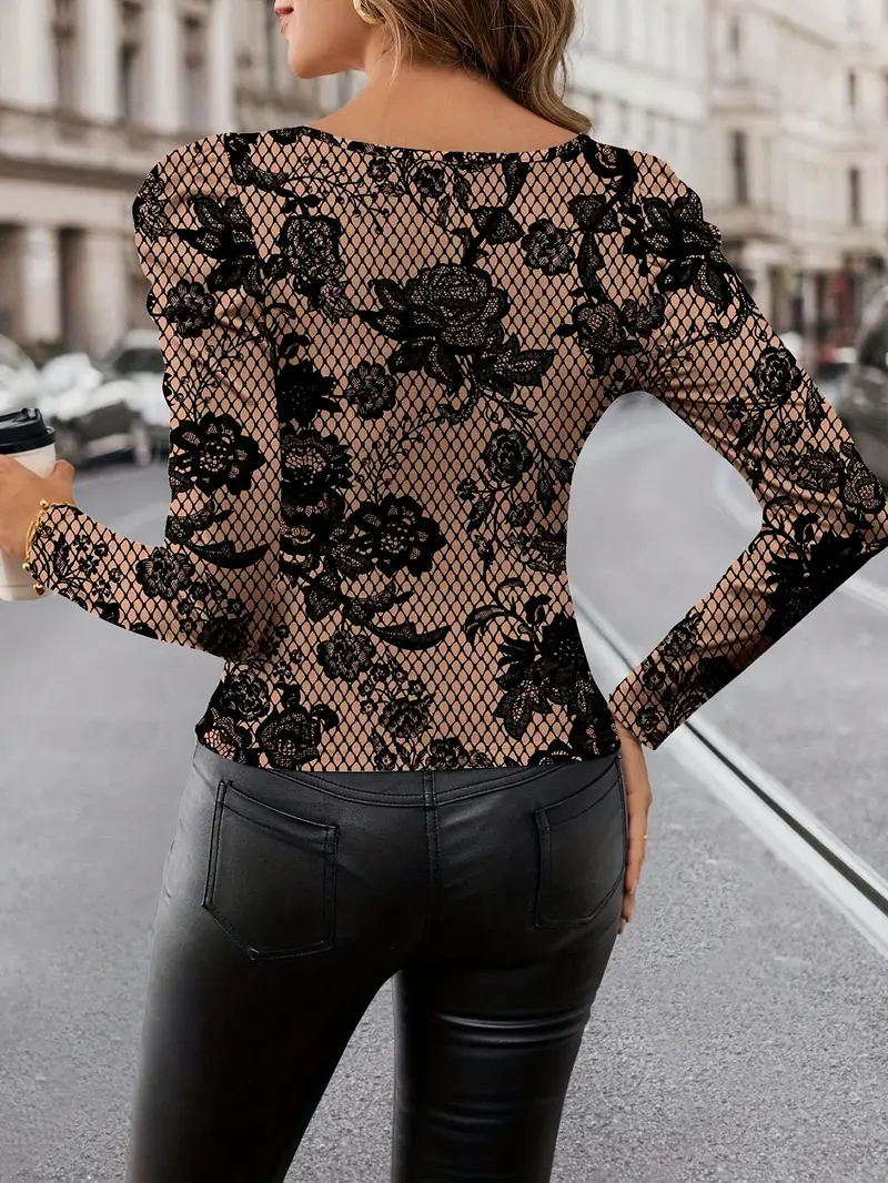 Blouse de fête élégante pour femme – Hauts formels à manches longues avec imprimé floral, tissu non transparent pour les événements du soir, le bureau, le quotidien – Vêtements pour femme printemps/automne, tenue de bureau, mode moderne, matériau durable, haut élégant, amoureux de la mode