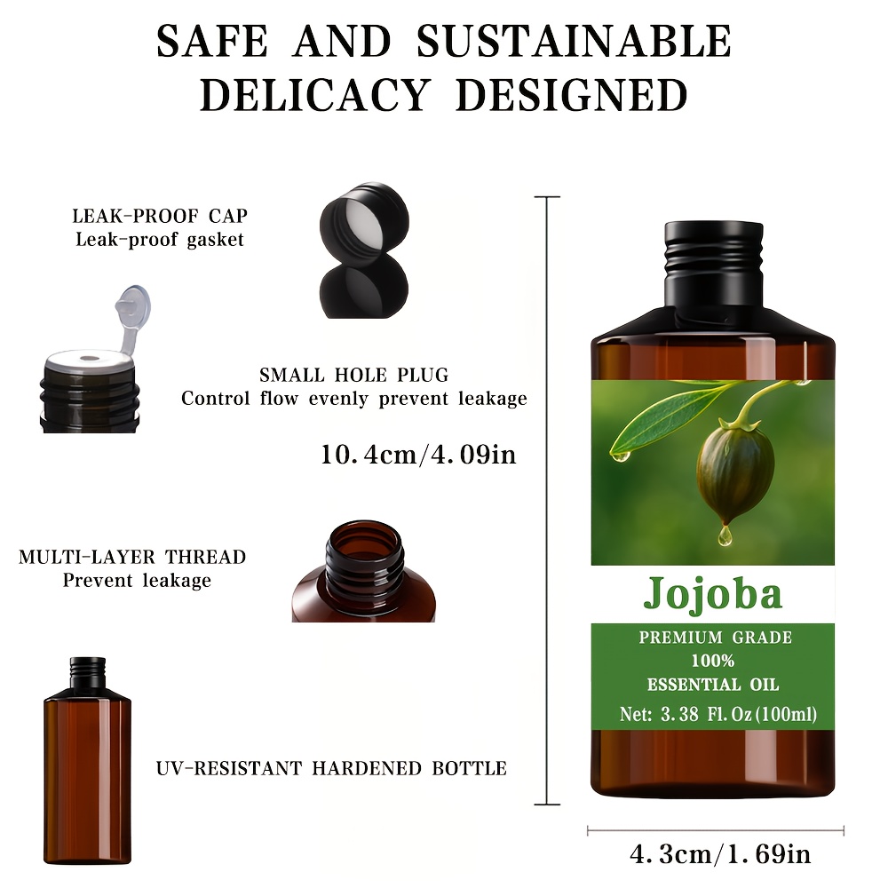 1 avis pour Huile essentielle de jojoba 100% pure – 3.38 fl. oz. – Hydratante, préssé à froid adaptée à tous les types de peau, polyvalente pour les cheveux, les ongles, les soins de la peau et les massages – Idéale pour les diffuseurs et les humidificateurs, huile de parfum | Parfum naturel | Huile hydratante