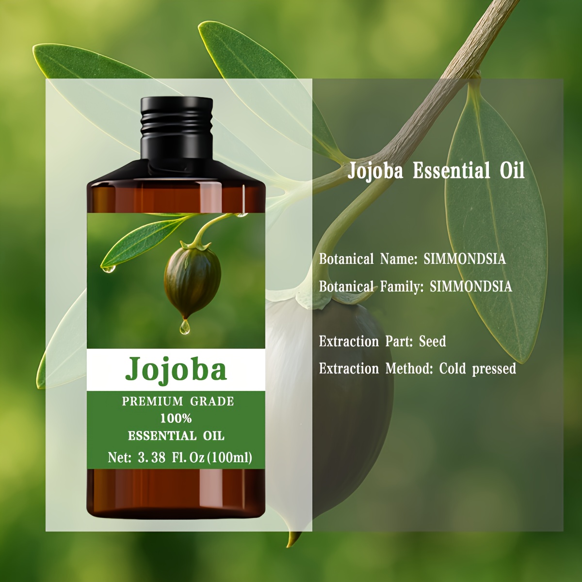 Huile essentielle de jojoba 100% pure – 3.38 fl. oz. – Hydratante, préssé à froid adaptée à tous les types de peau, polyvalente pour les cheveux, les ongles, les soins de la peau et les massages – Idéale pour les diffuseurs et les humidificateurs, huile de parfum | Parfum naturel | Huile hydratante