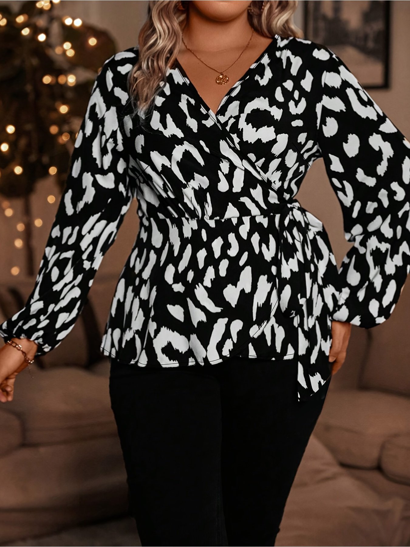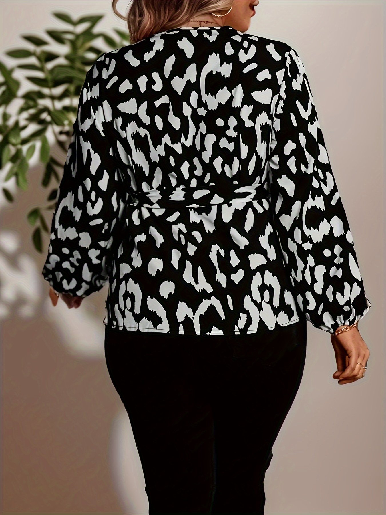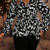 [Imprimé Léopard Élégant] Chemise Élégante à Manches Longues Taille Grande avec Imprimé Léopard pour Femme, Idéale pour les Saisons de Printemps et d’Automne, Disponible en Tailles Grandes