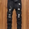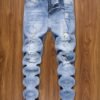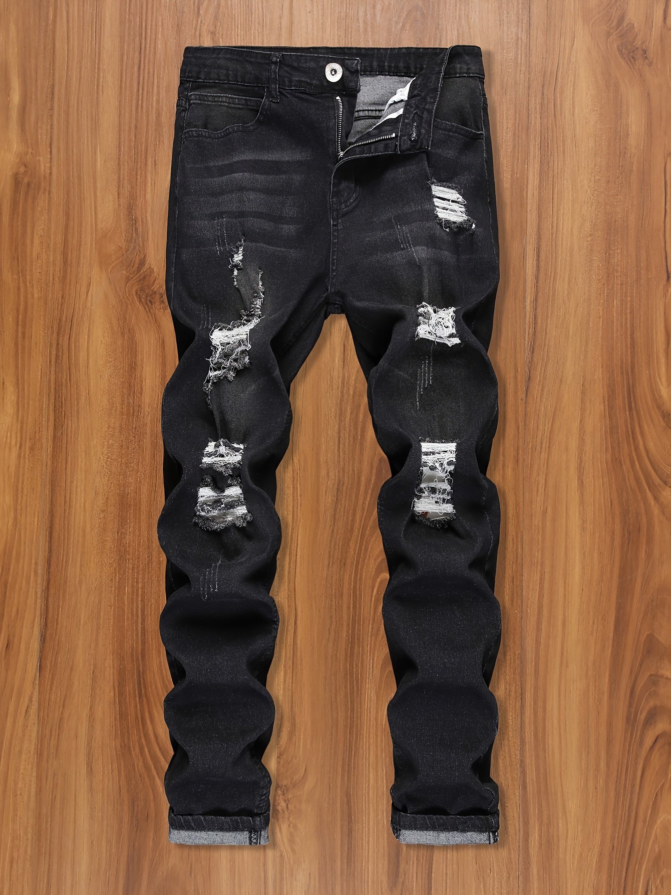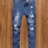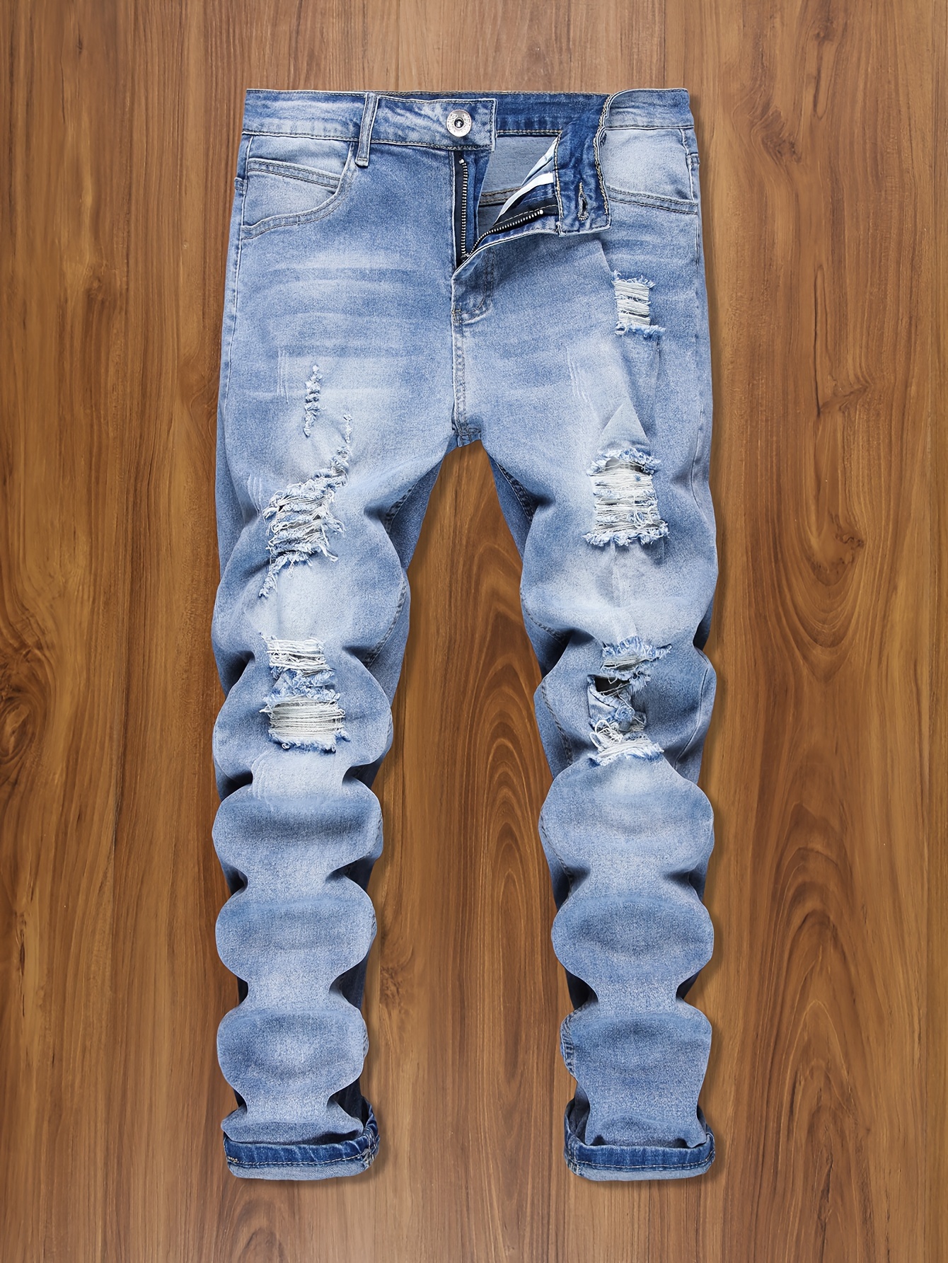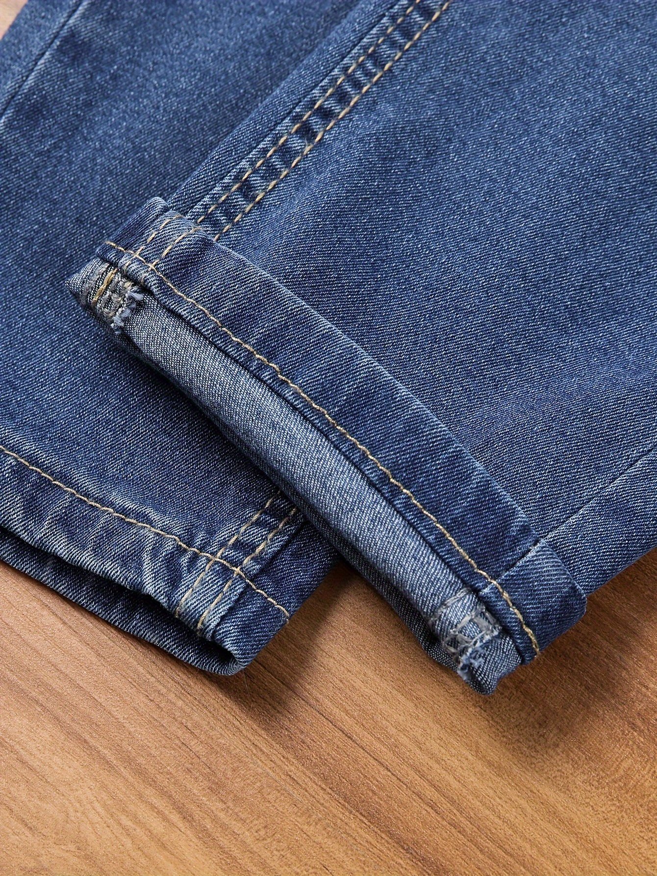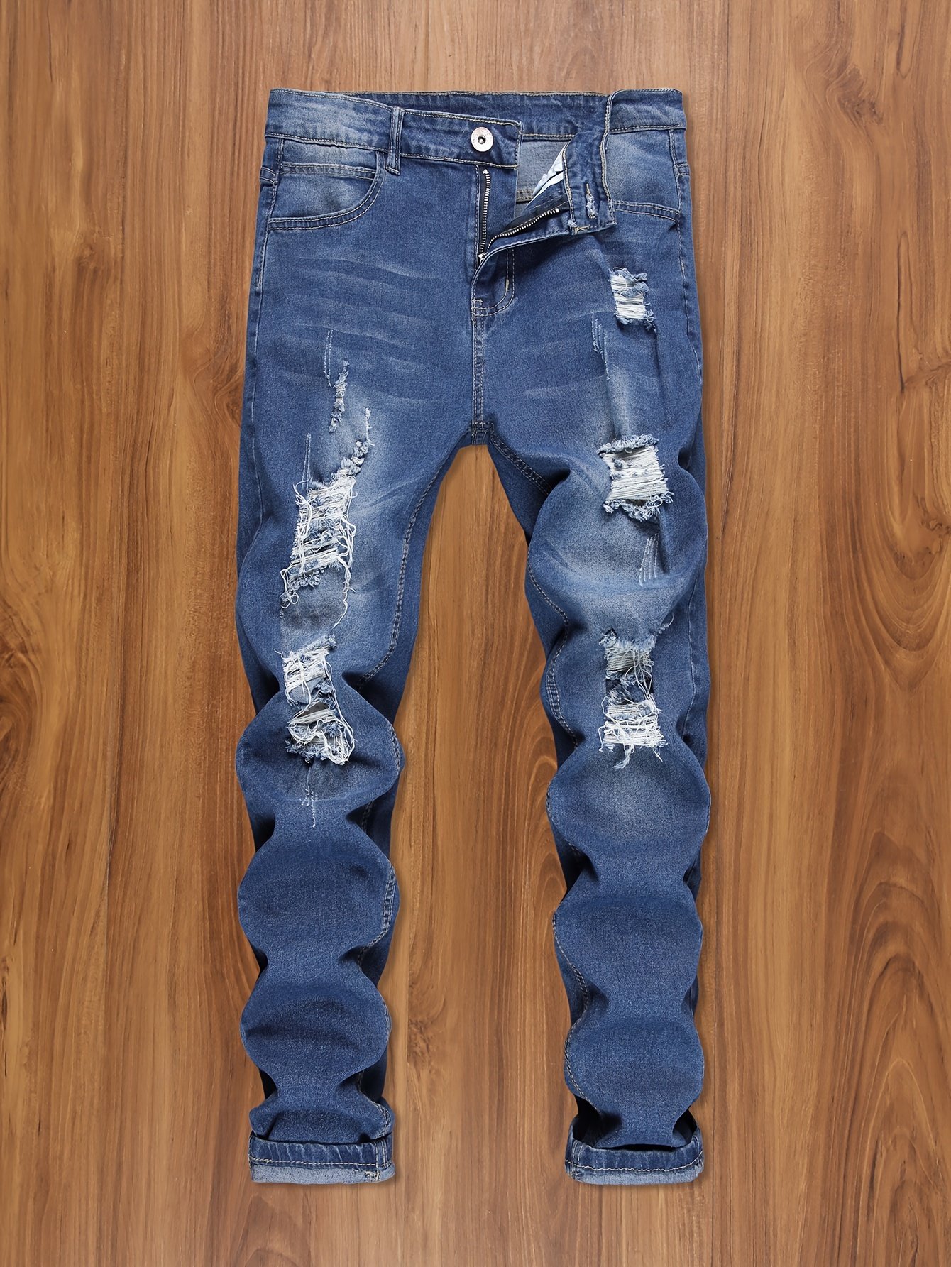 + Livraison de 12 à 17 jours, denim bleu foncé, coupe confortable pour un look décontracté, porté en toutes saisons, jean de streetwear | Denim déchiré | Tissu extensible moyen