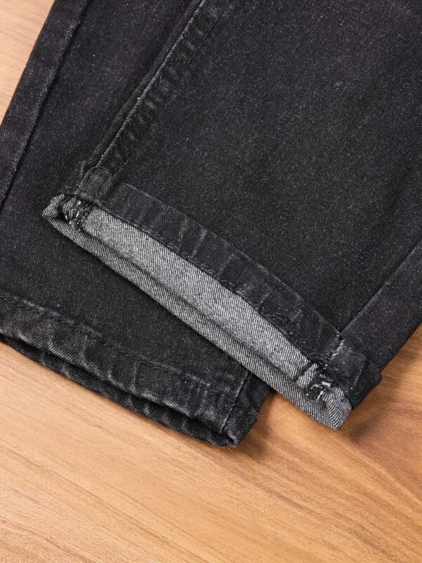 , denim bleu foncé, coupe confortable pour un look décontracté, porté en toutes saisons, jean de streetwear | Denim déchiré | Tissu extensible moyen
