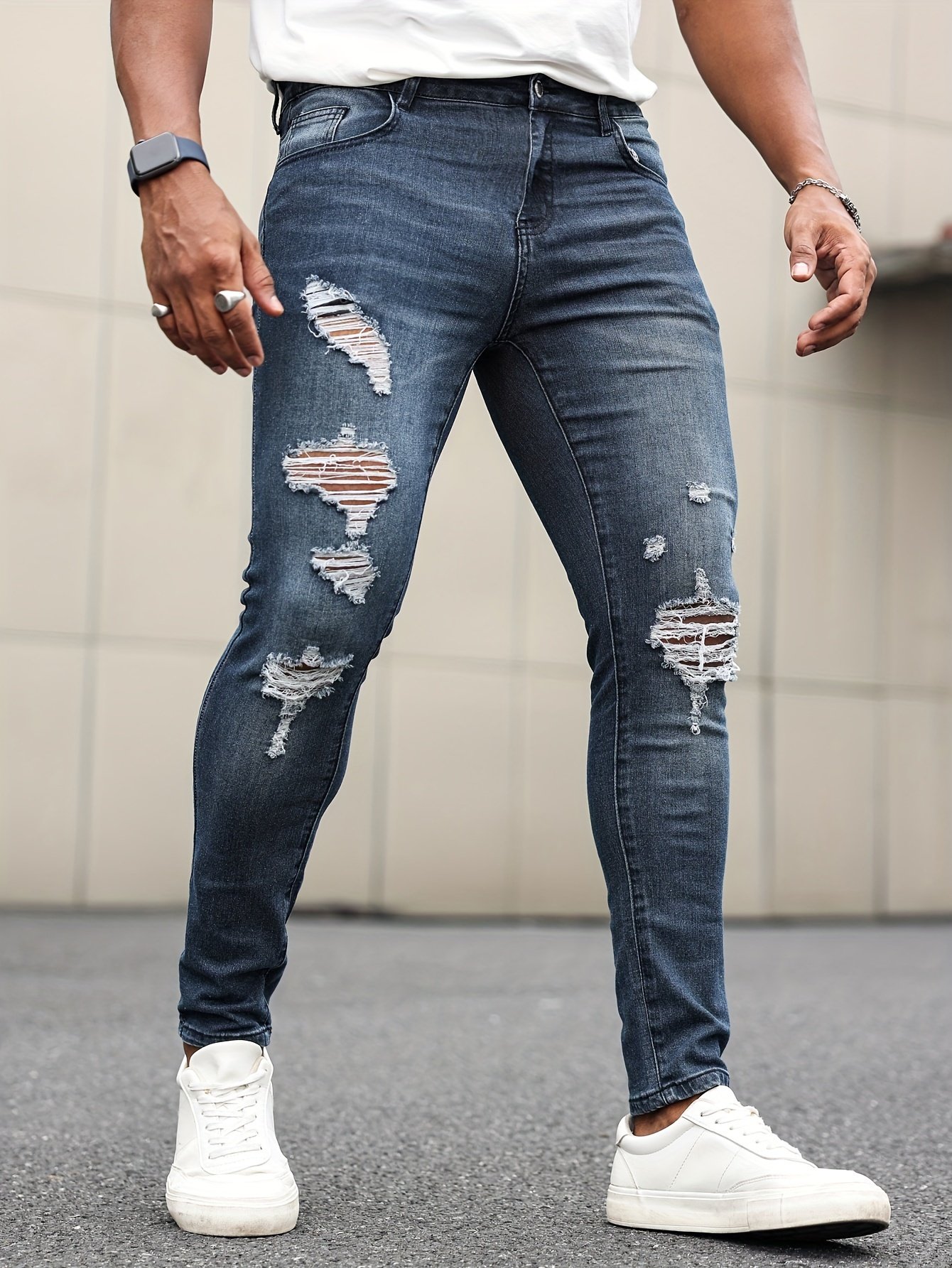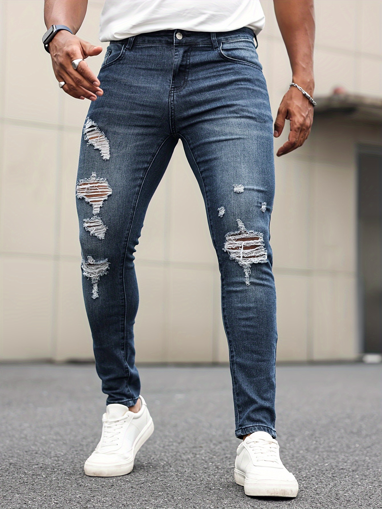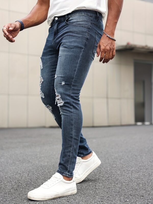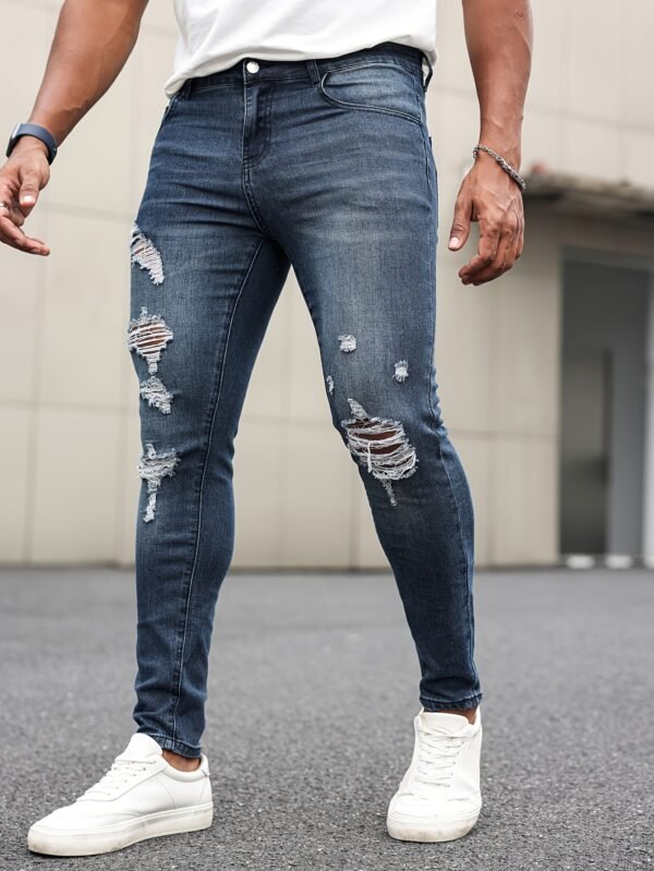 Jeans Déchirés Slim-Fit Denim Extensible, Lavable en Machine