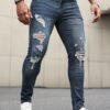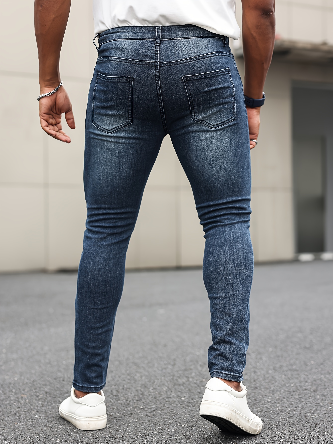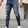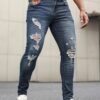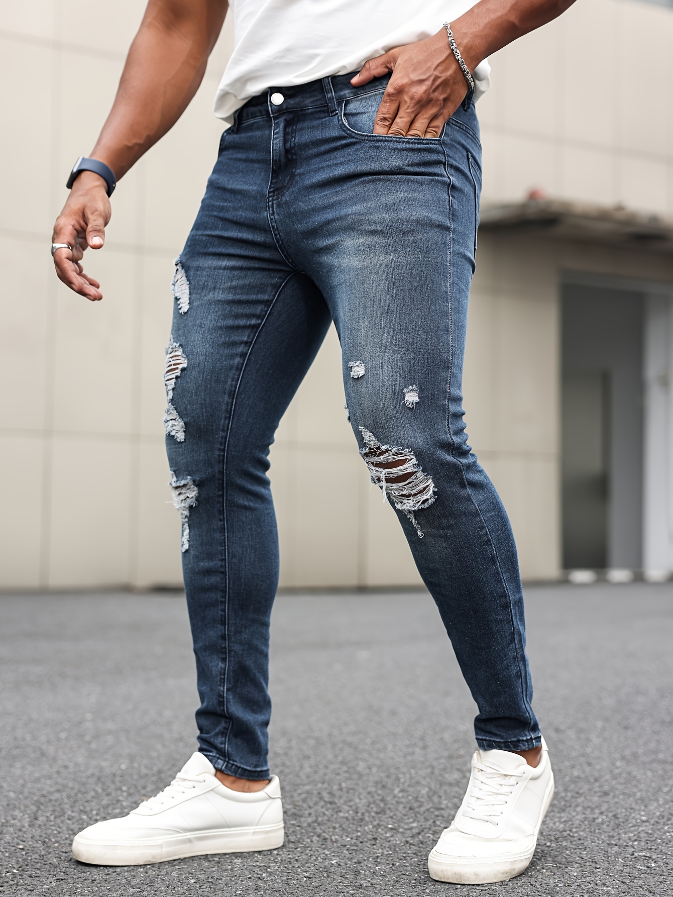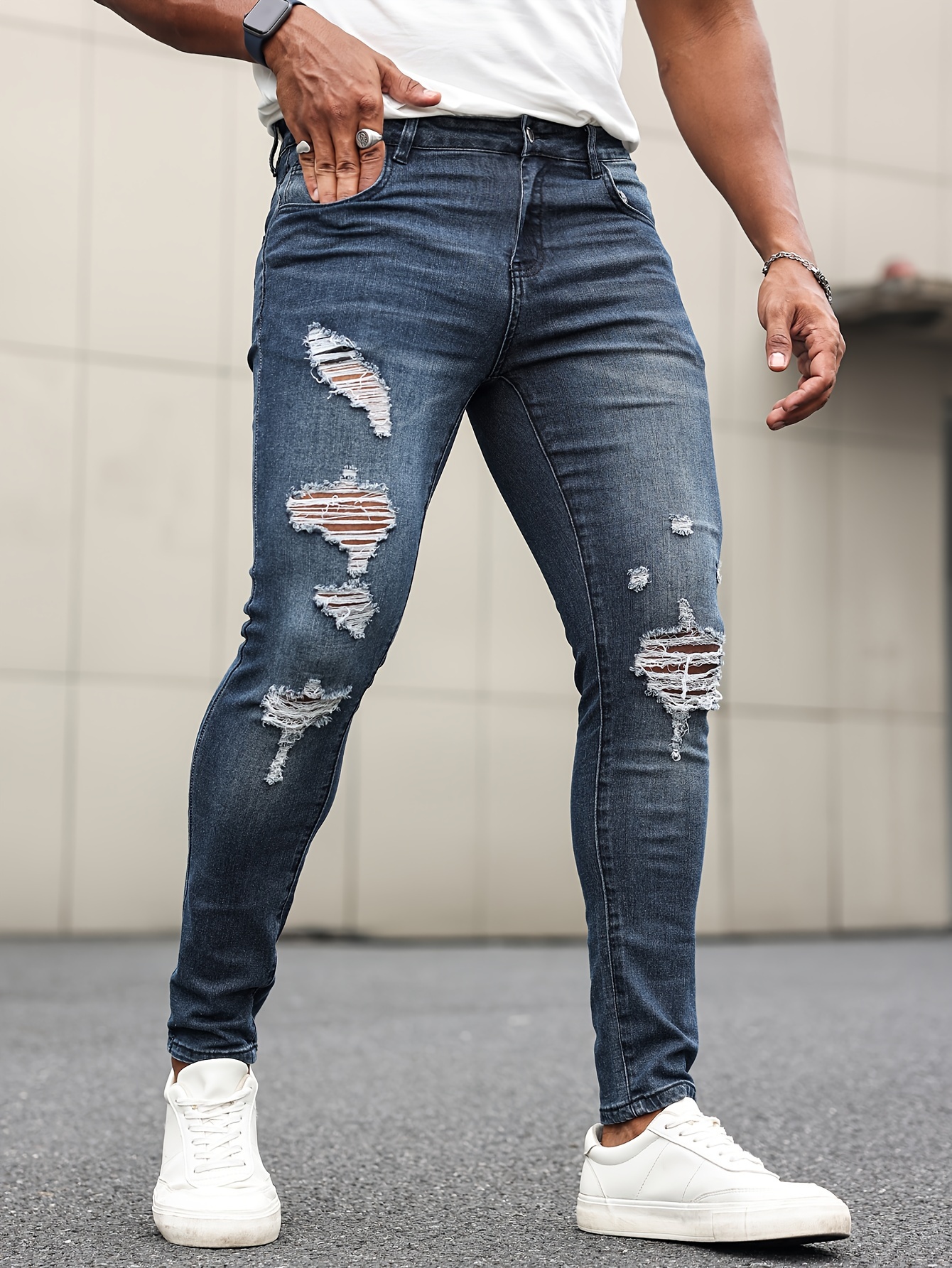 Jeans Déchirés Slim-Fit Denim Extensible, Lavable en Machine