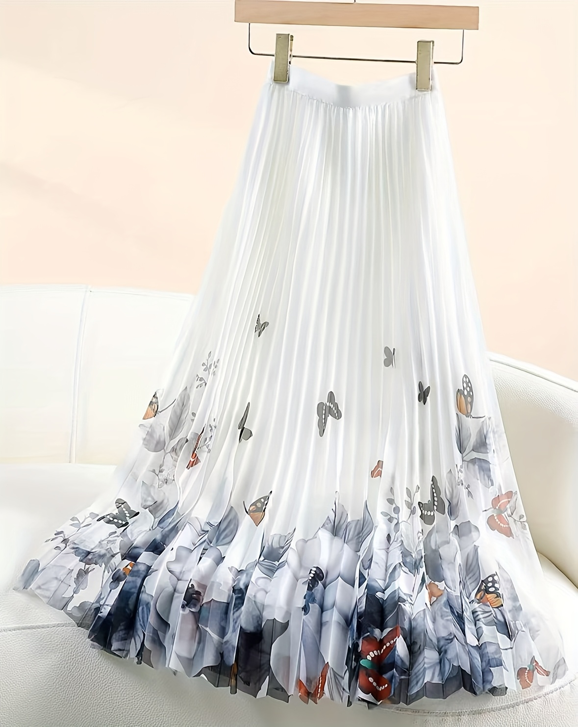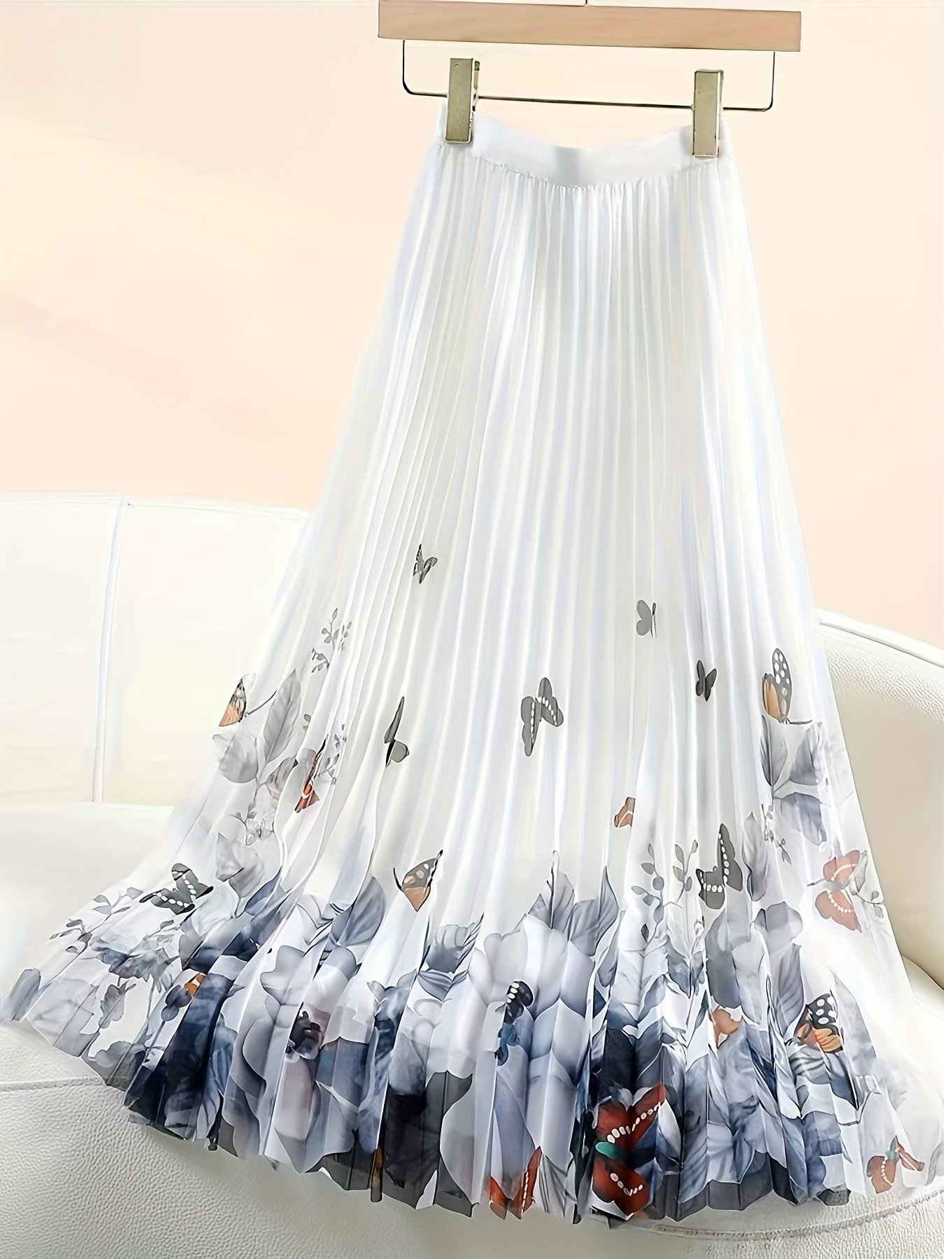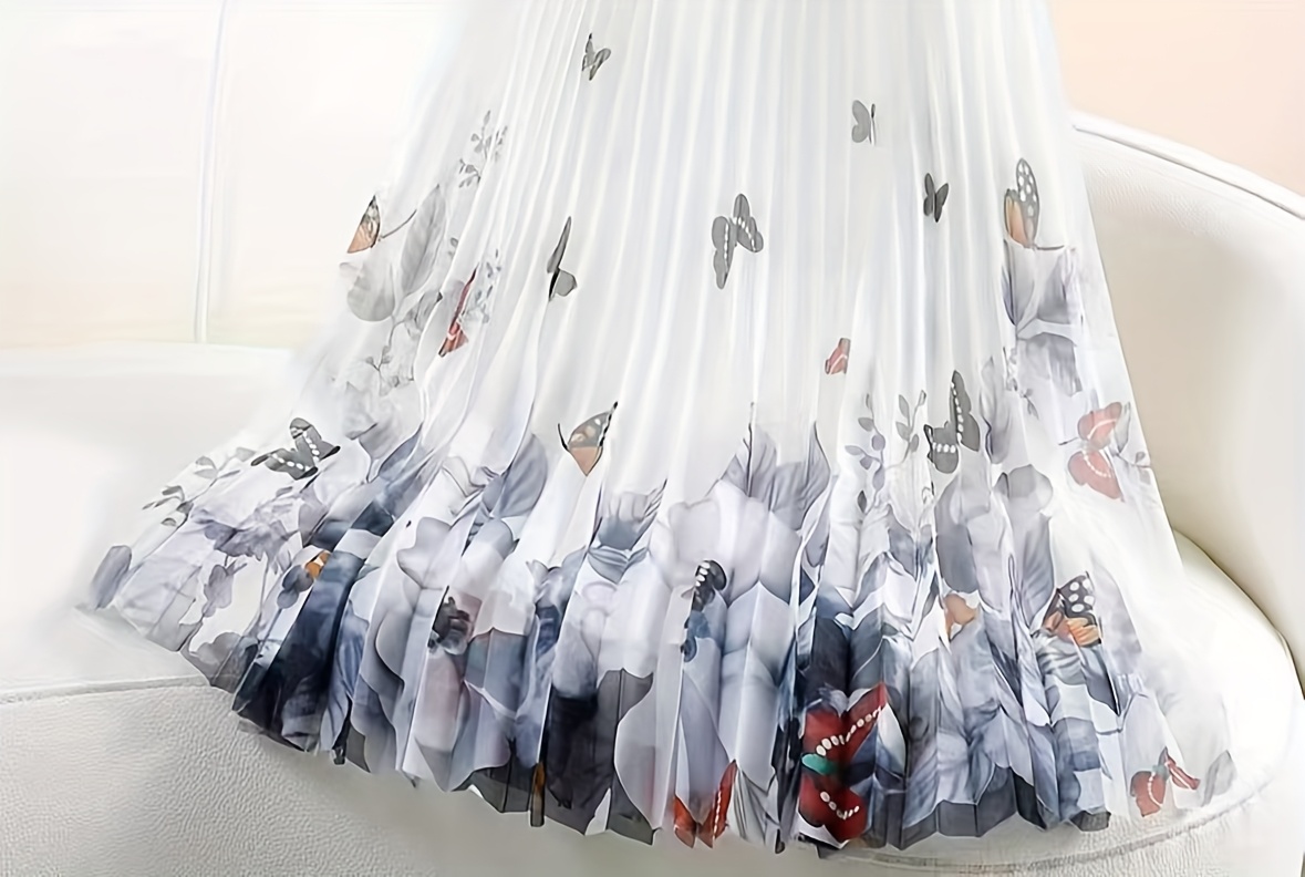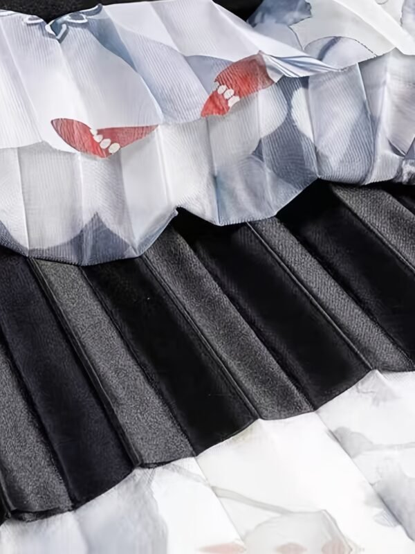 Jupe en maille plissée florale | Élégante jupe longue trapèze avec détails drapés